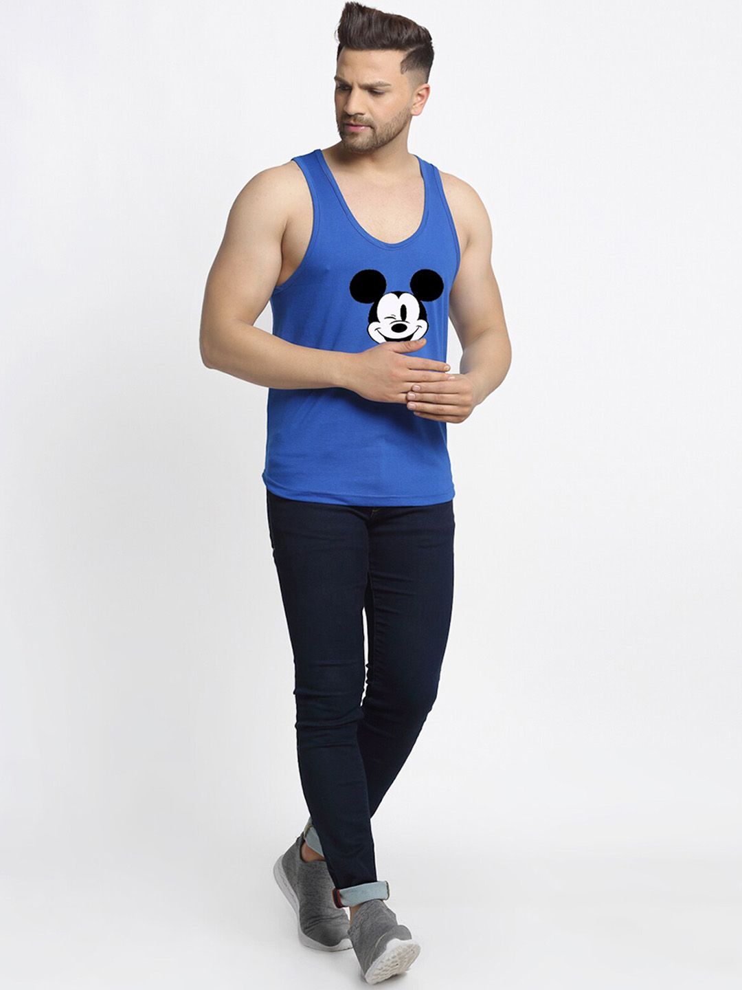 Pack of two printed regular-fit vestsBlue, black and white mickey printed regular-fit vests has a U-neck and sleevelessWhite and black printed regular-fit vests has a U-neck and sleevelessFeatures: 175-180 GSM Cotton used