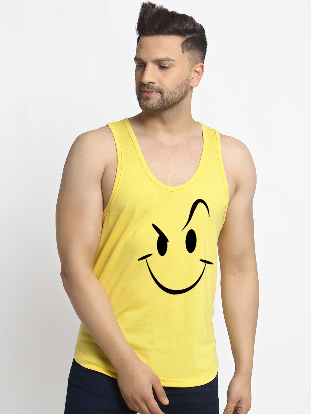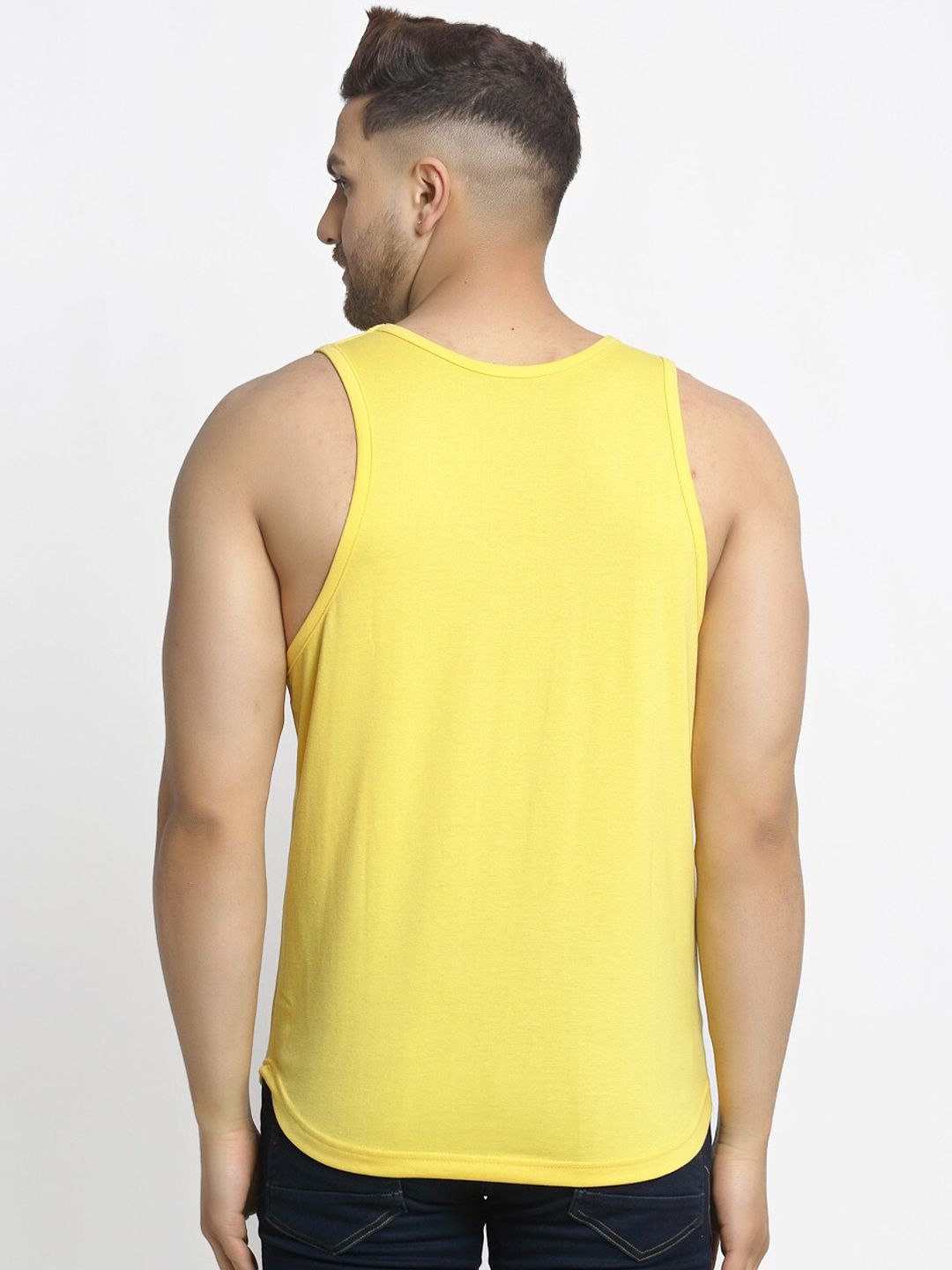 Pack of two printed regular-fit vestsBlue, white and black mickey printed regular-fit vests has a U-neck and sleevelessYellow and black printed regular-fit vests has a U-neck and sleevelessFeatures: 175-180 GSM Cotton used