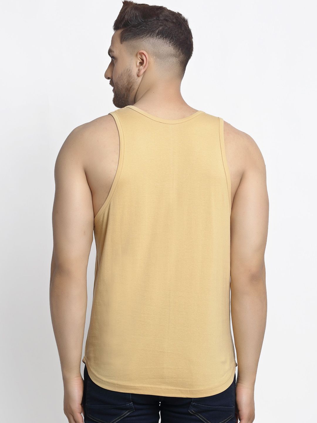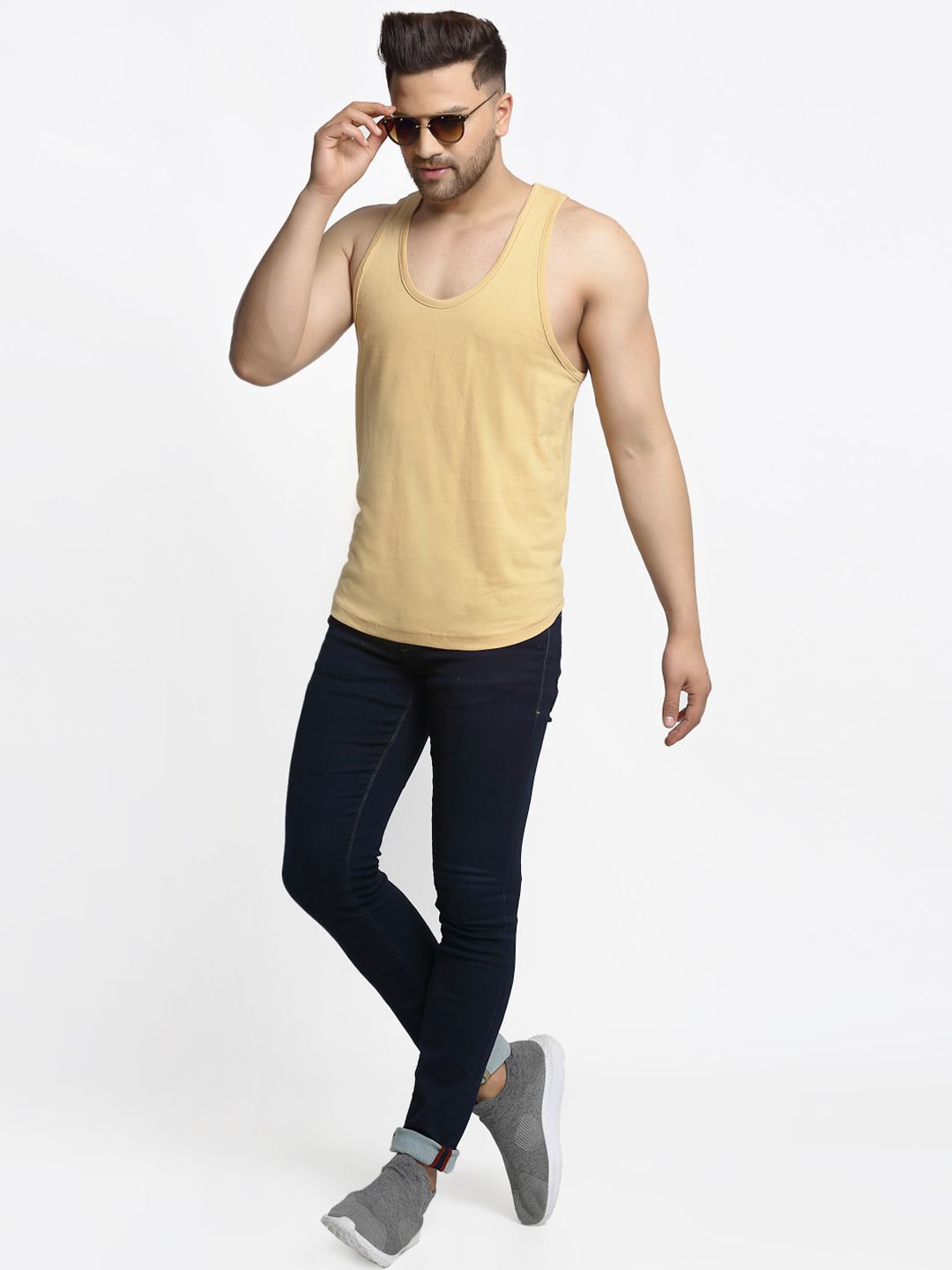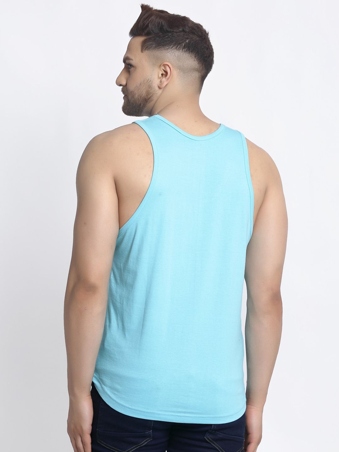 Pack of two solid regular-fit drop cut gym vest in beige and turquoise blue, each has a scoop-neck and sleevelessFeatures: 175-180 GSM Cotton used
