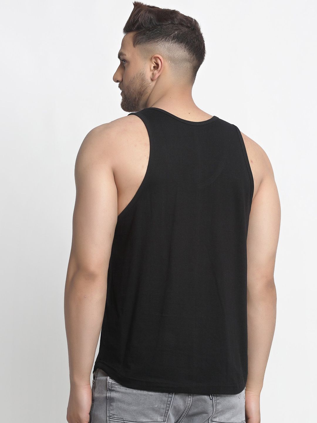 Pack of 2 Printed Innerwear VestsBlack printed innerwear gym vests, has a round neck and sleevelessBlue printed innerwear gym vests, has a round neck and sleeveless