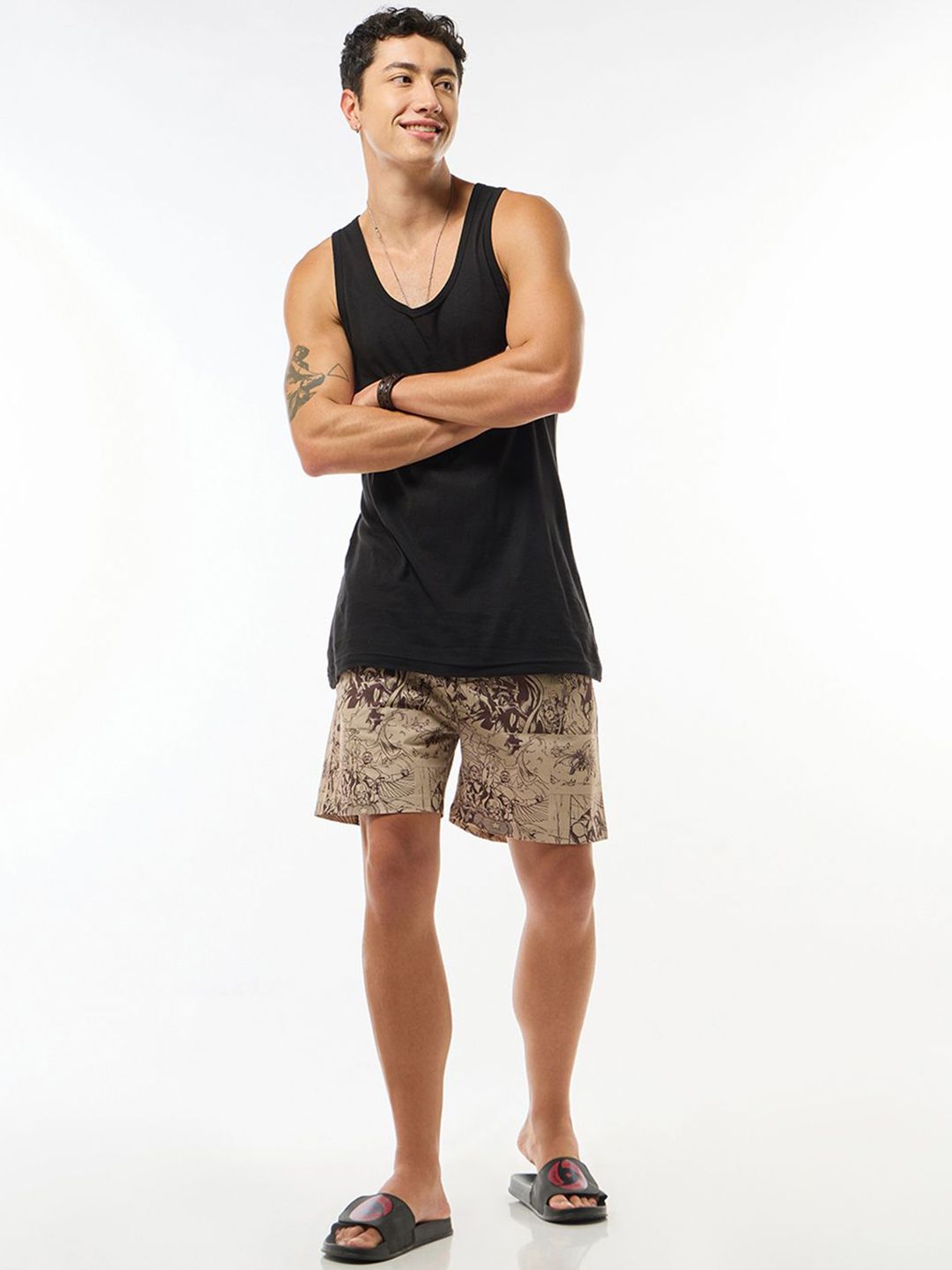 VAN: 635747Beige & Brown printed boxers, has an inner elasticated waistband, slip on closureFeatures:Anti-roll