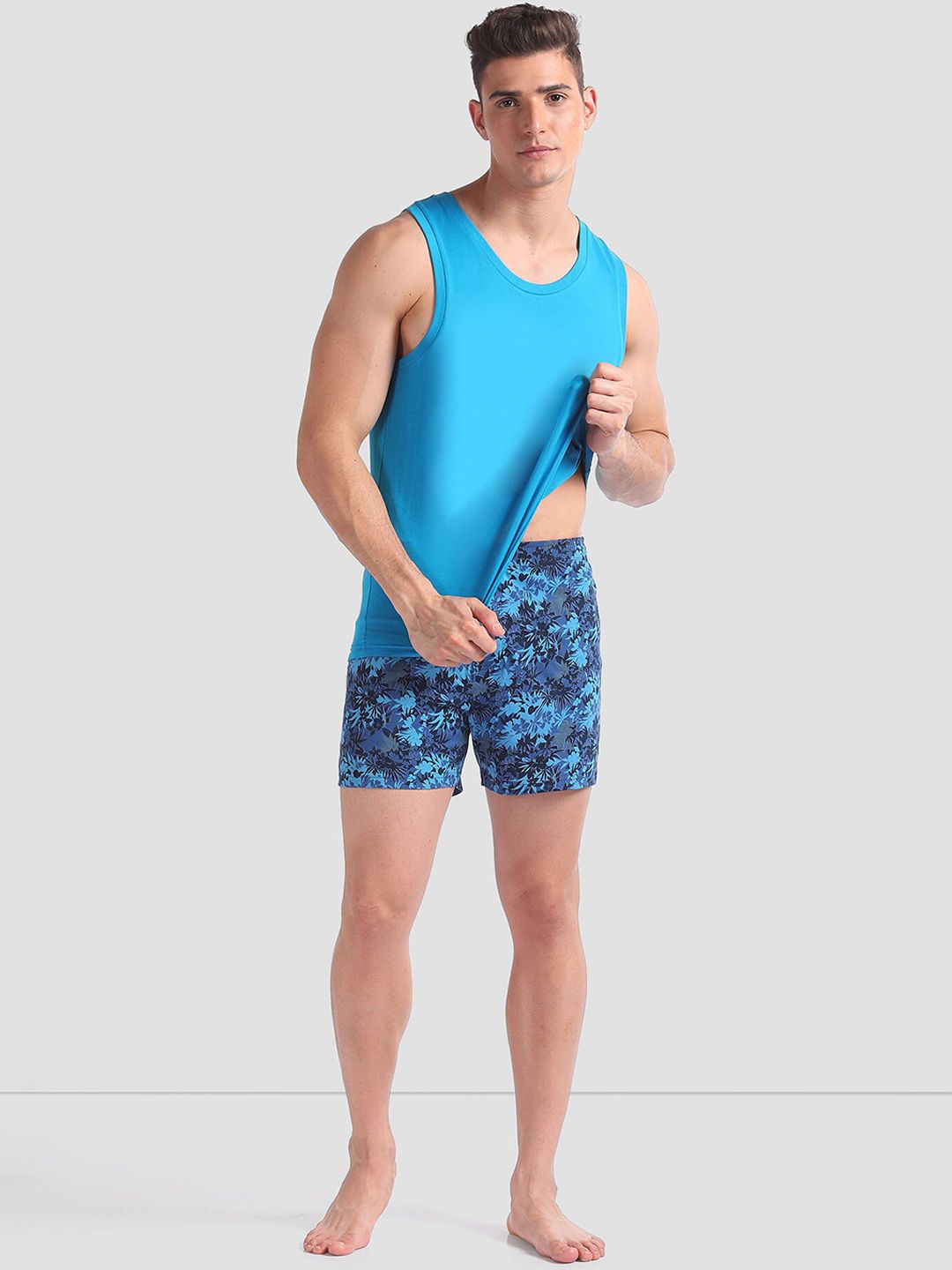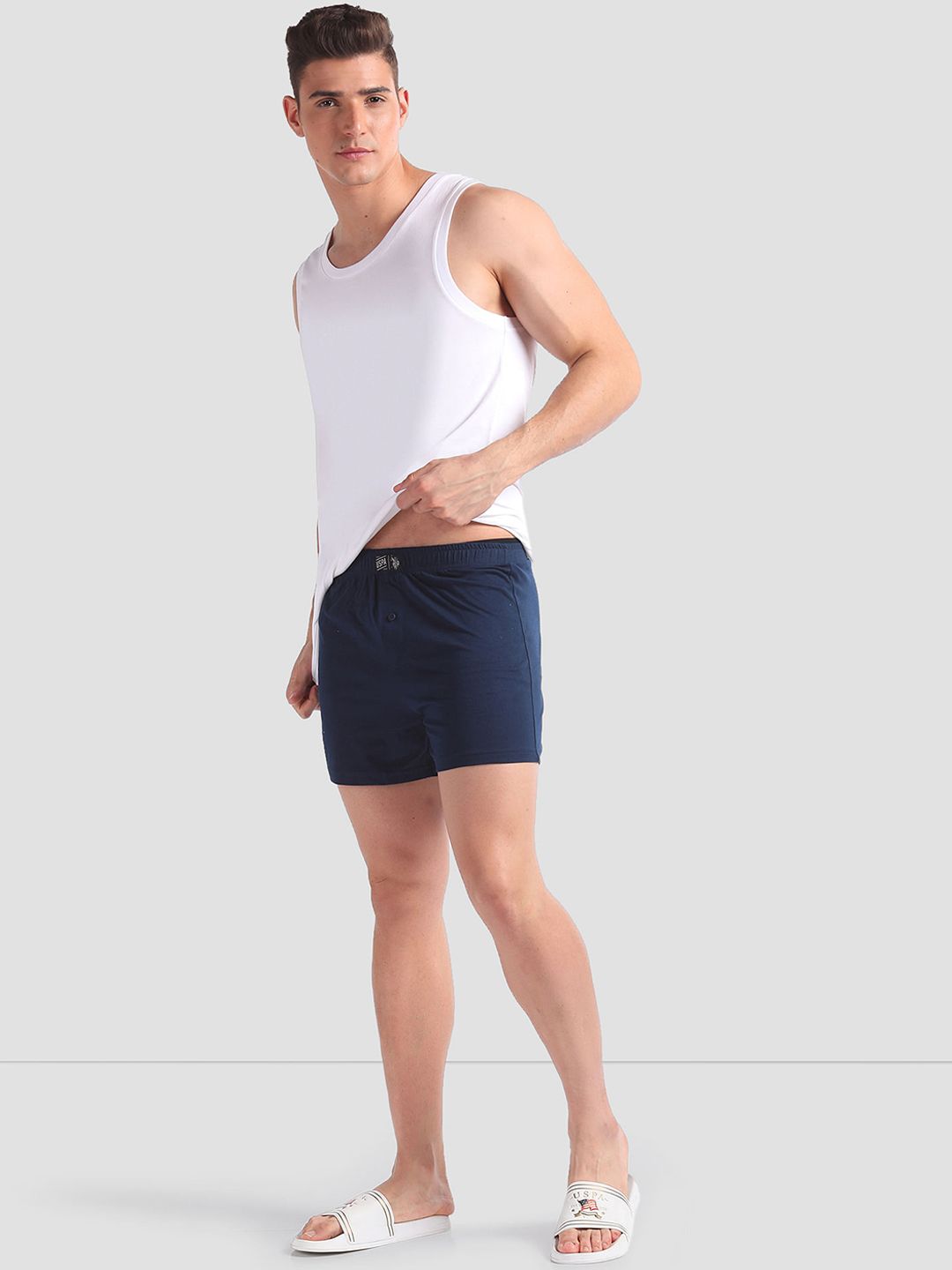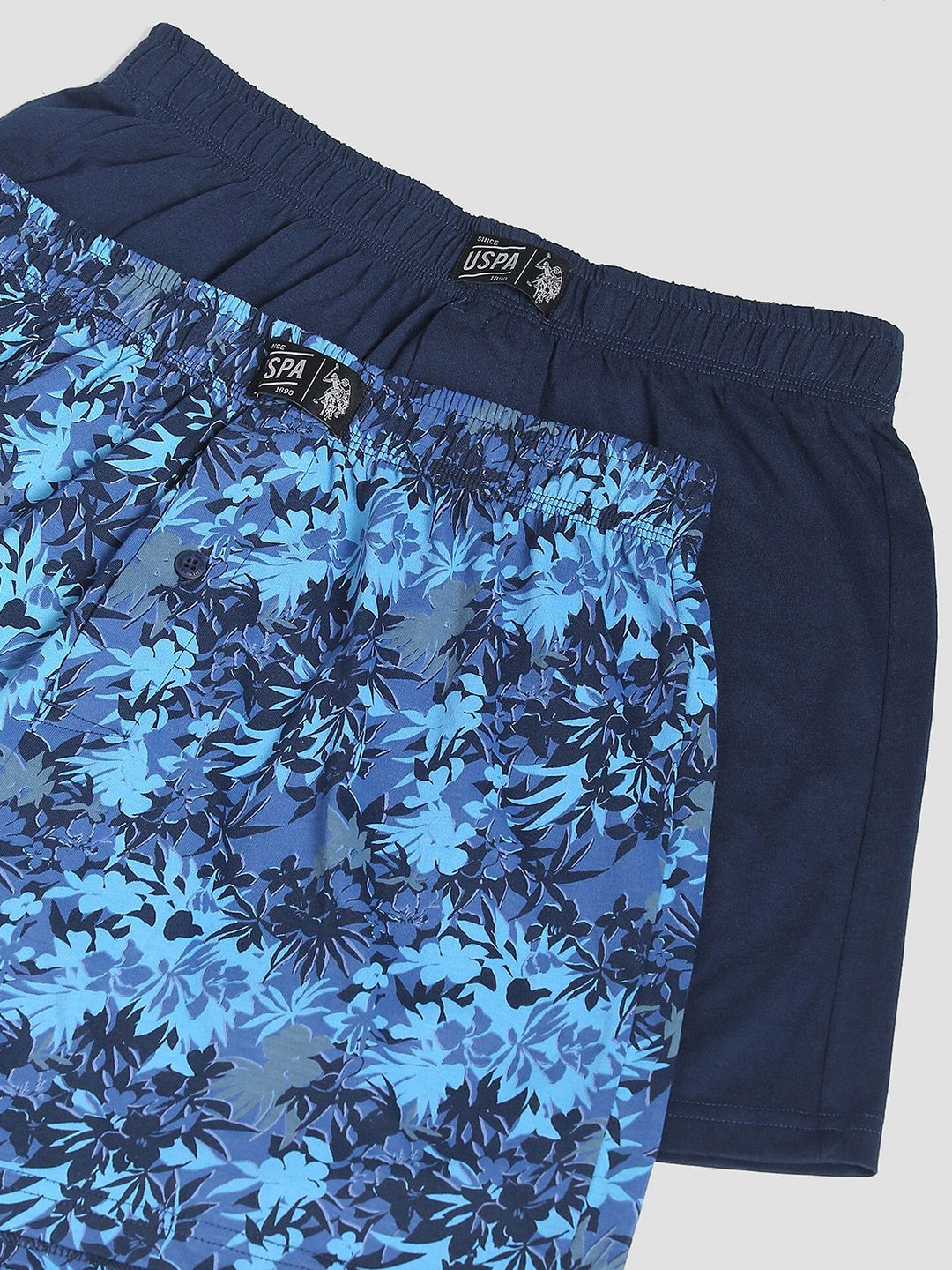 VAN: OEX01-195-P2Pack of 2 boxersBlue printed boxers, has an outer elasticated waistband, concealed button flyNavy blue solid boxers, has an outer elasticated waistband, concealed button flyFeature:AbsorbentBreathable