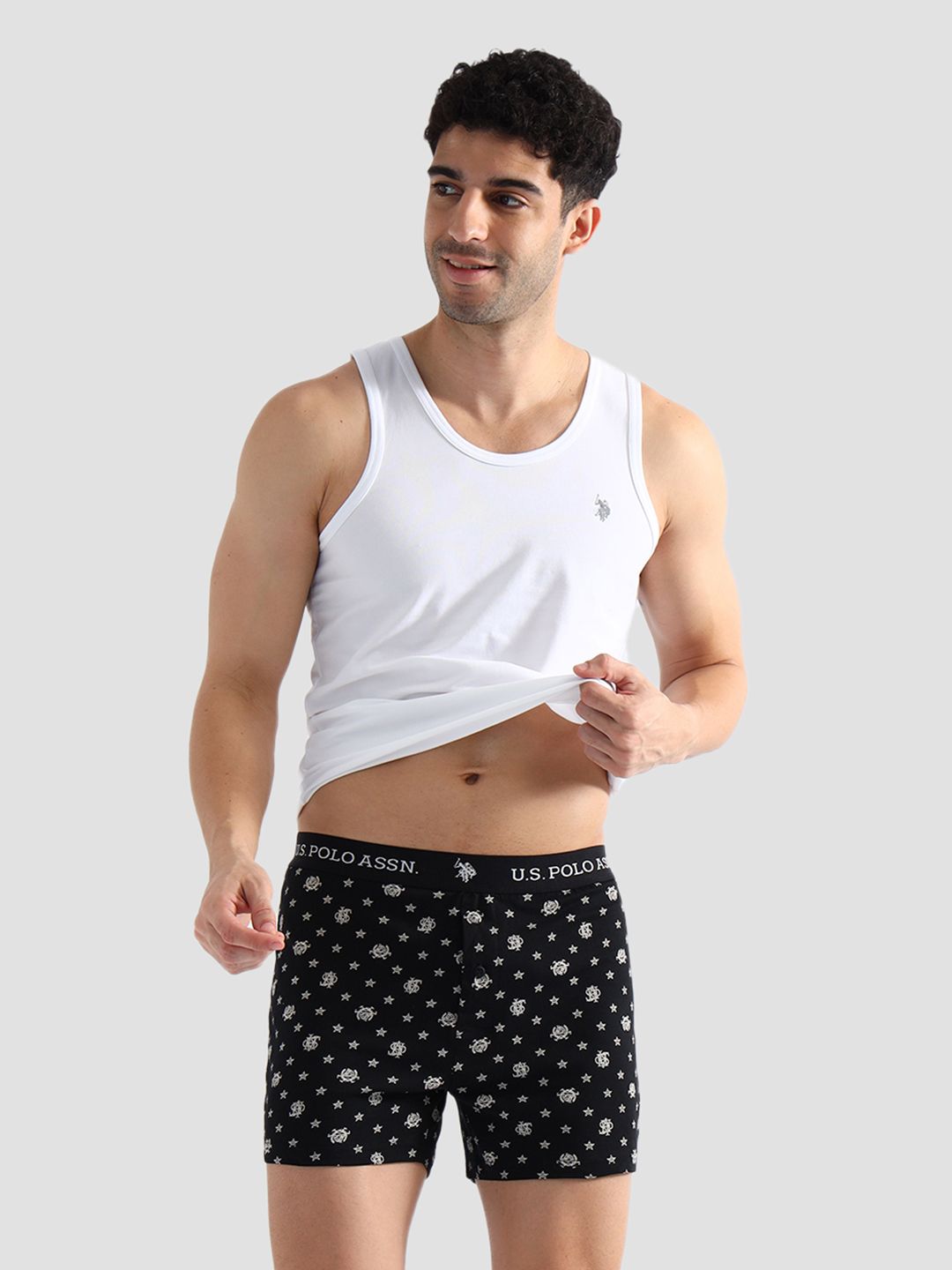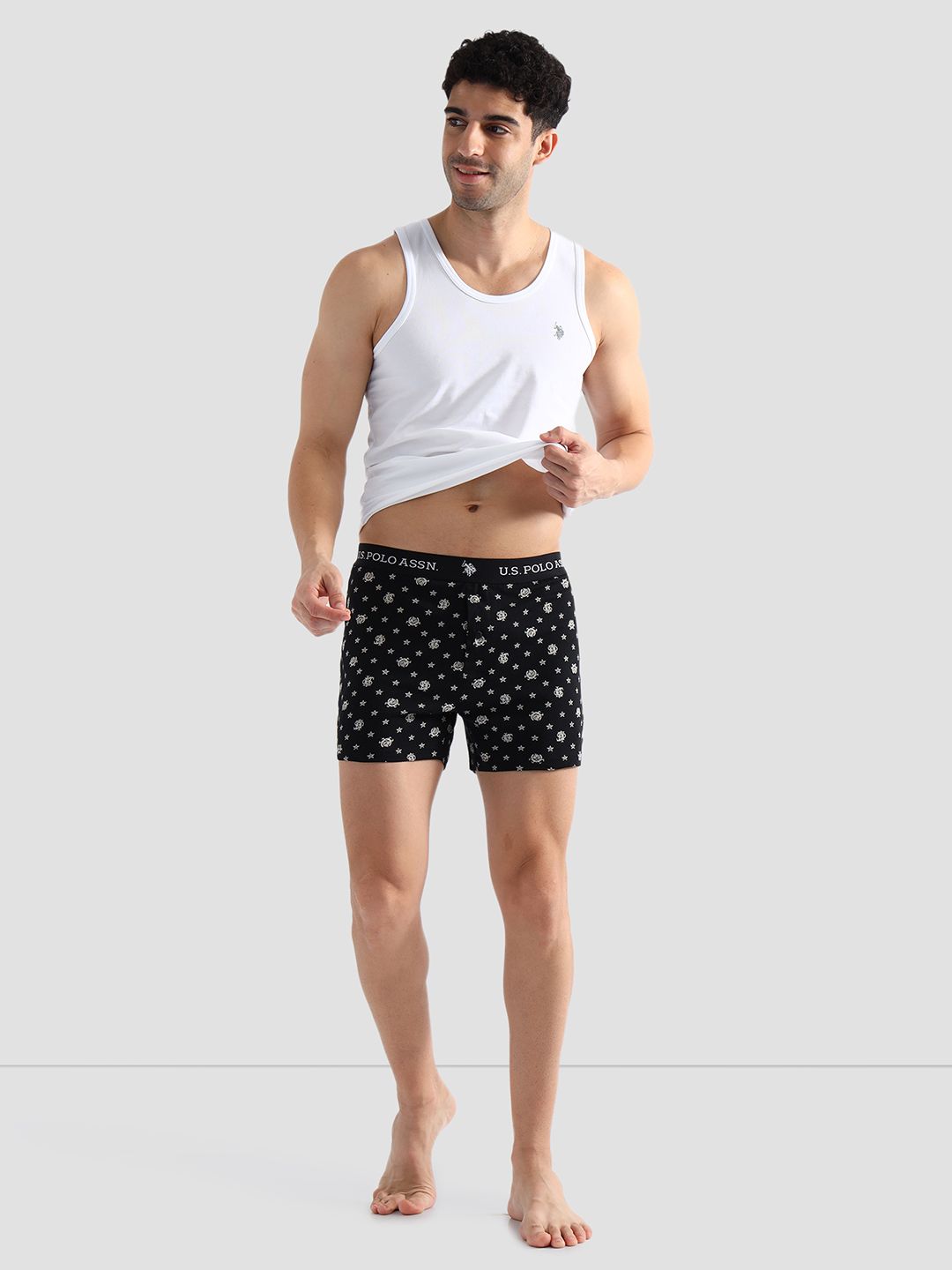 Uplift your bottom wear capsule with these shorts made from pure cotton fabric, and designed with an elasticised waistband and handy pockets. Pack of 2: Mid-rise waist sits comfortably at your waist Brand printed elasticised waistband Signature embroidered logo at side Thigh length Versatile printed pattern