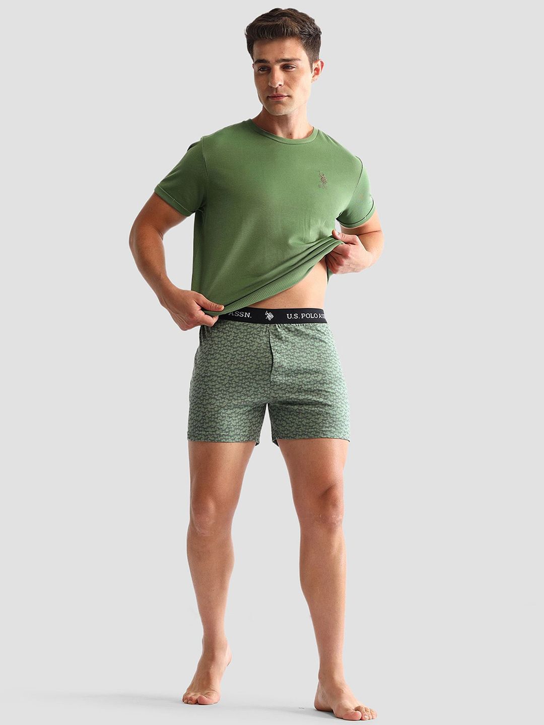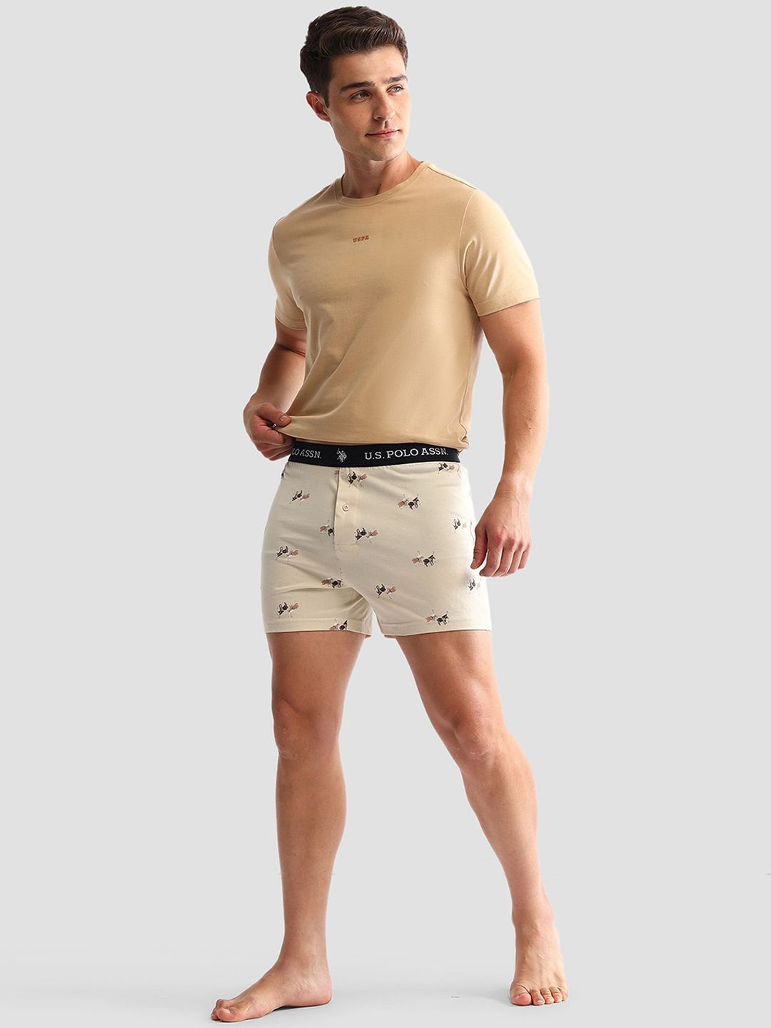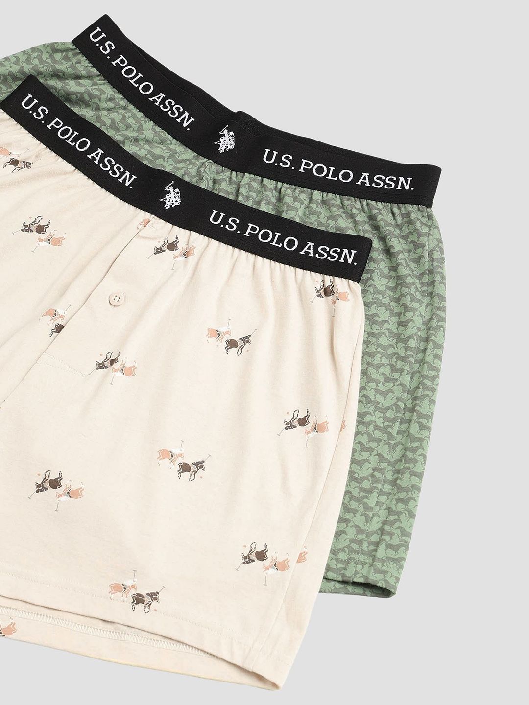 VAN Number: OEX09-CD0-P2Pack of 2 printed boxersGreen printed boxers, has an elasticated waistband with concealed button flyBeige, brown and peach-colored boxers, has an elasticated waistband with concealed button fly