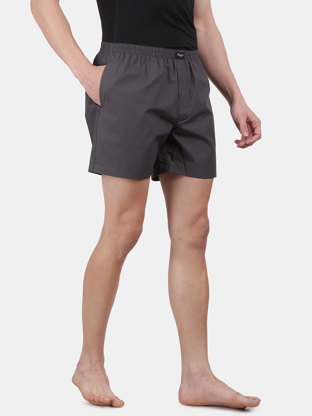VAN: CLLB02-02-Black-GreyGrey solid boxers, has an elasticated waistband, concealed button fly, 1 pocketBlack solid boxers, has an elasticated waistband, concealed button fly, 1 pocket