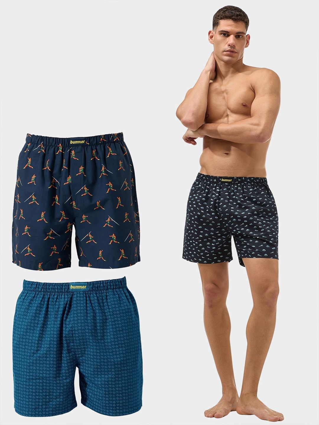 VAN Number: BOGLEJABVRO03Pack of 3 boxersNavy blue printed boxers, has an elasticated waistband with concealed flyTeal-Blue printed boxers, has an elasticated waistband with concealed fly
