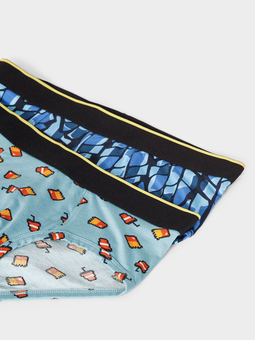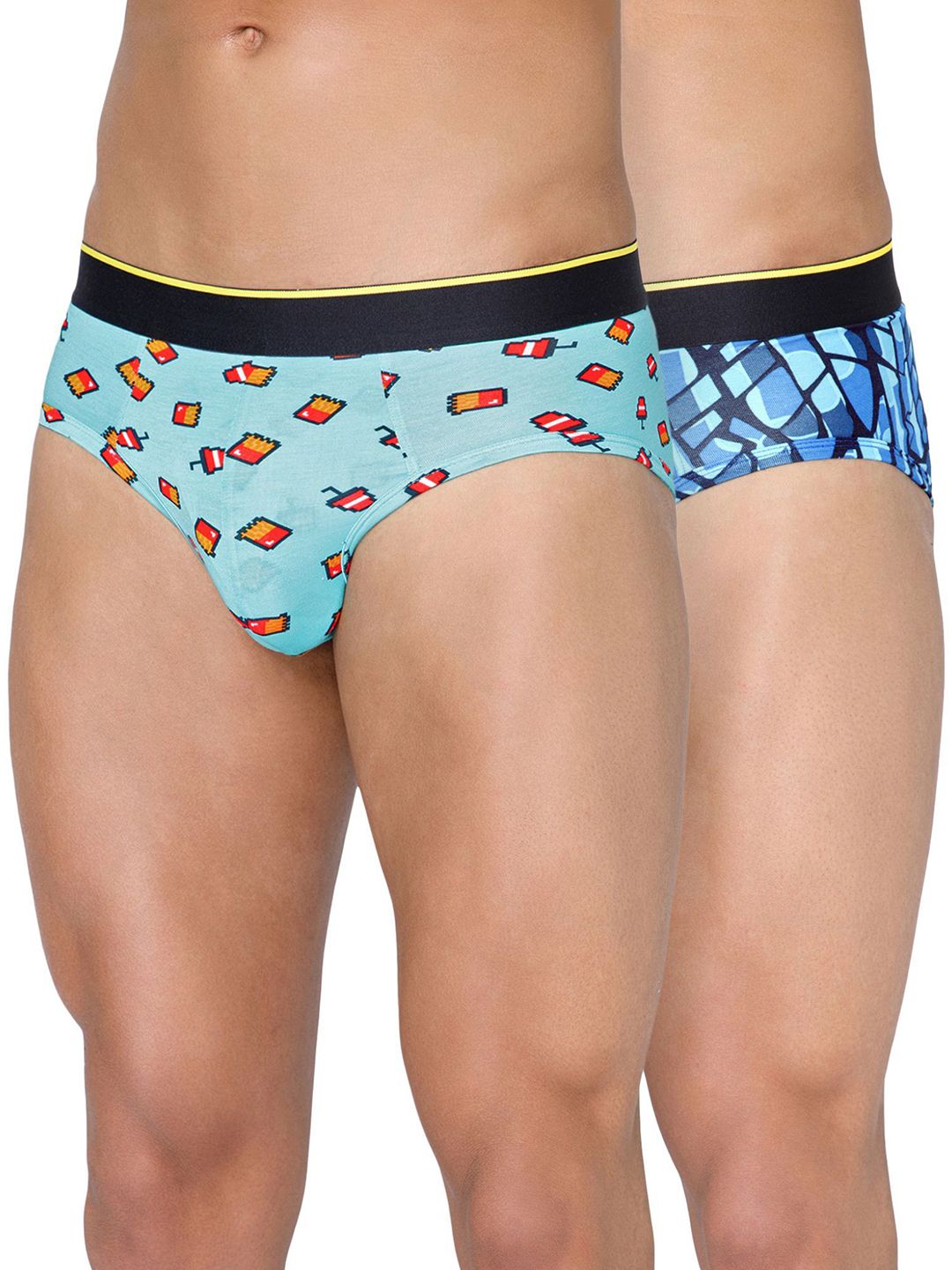 VAN Number: BRMCICE02SPack of 2 Printed basic brief for menBlue printed mid-rise basic briefs for men, has an outer elasticated waistband and a double layered contoured pouchLight Blue printed mid-rise basic briefs for men, has an outer elasticated waistband and a double layered contoured pouch