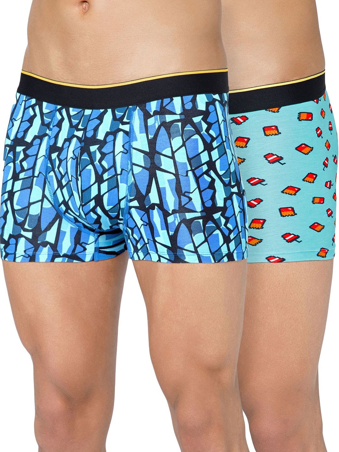 VANumber: TRMCICE02SPack of 2 trunksBlue printed trunk, has an outer elasticated waistband, and a double-layered contoured front pouchGreen printed trunk, has an outer elasticated waistband, and a double-layered contoured front pouch