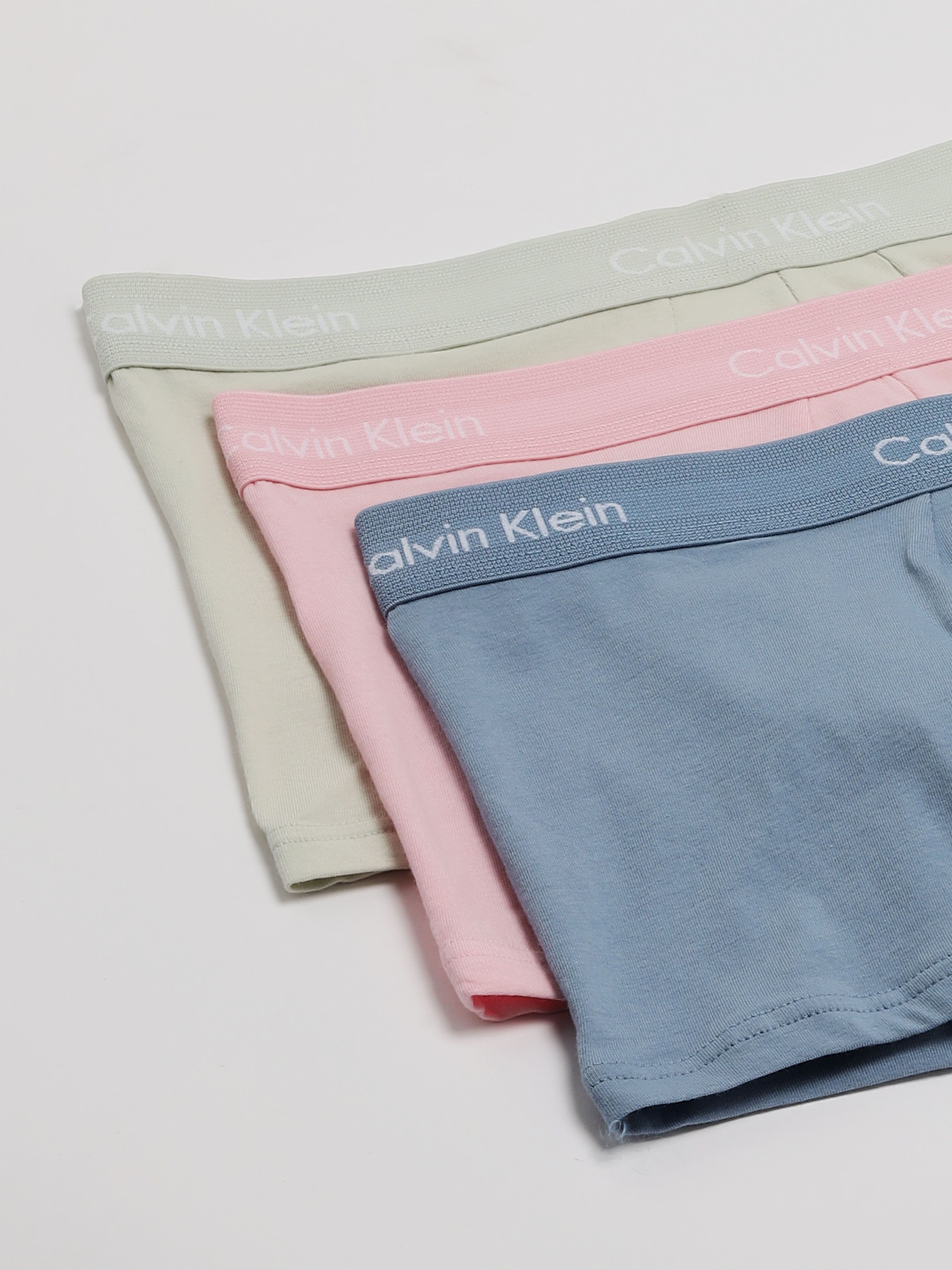 VANumber: U2664911Pack of 3 solid trunksBlue solid trunk, has an outer elasticated waistband, and a double-layered contoured front pouchPink solid trunk, has an outer elasticated waistband, and a double-layered contoured front pouchWhite solid trunk, has an outer elasticated waistband, and a double-layered contoured front pouch