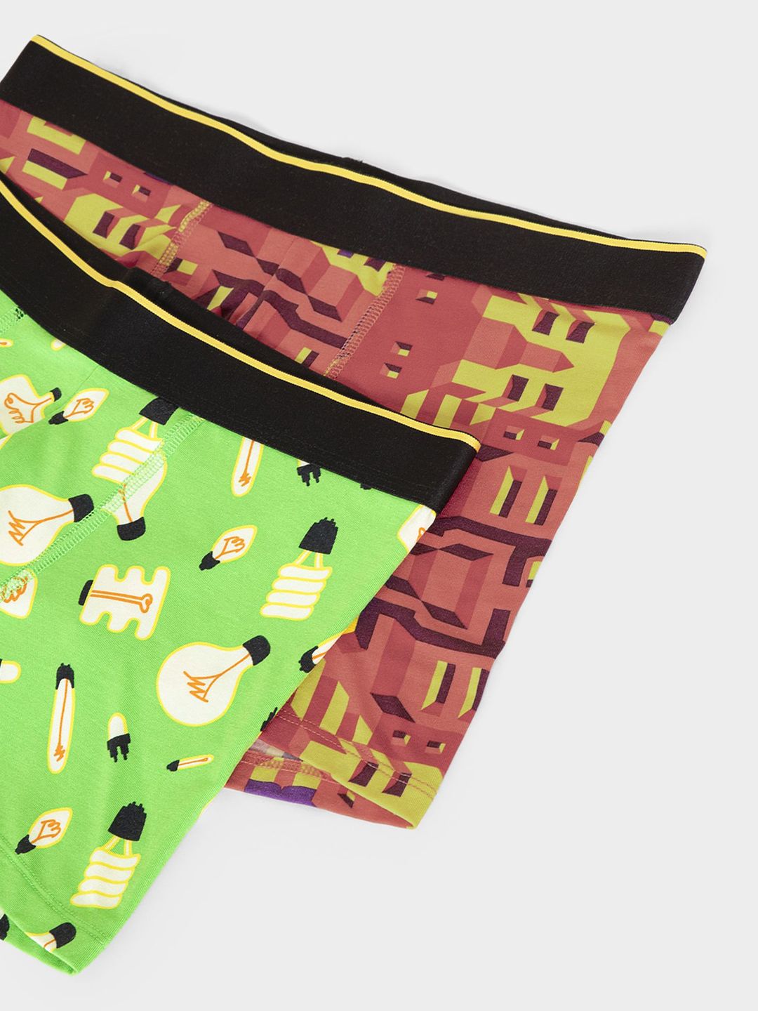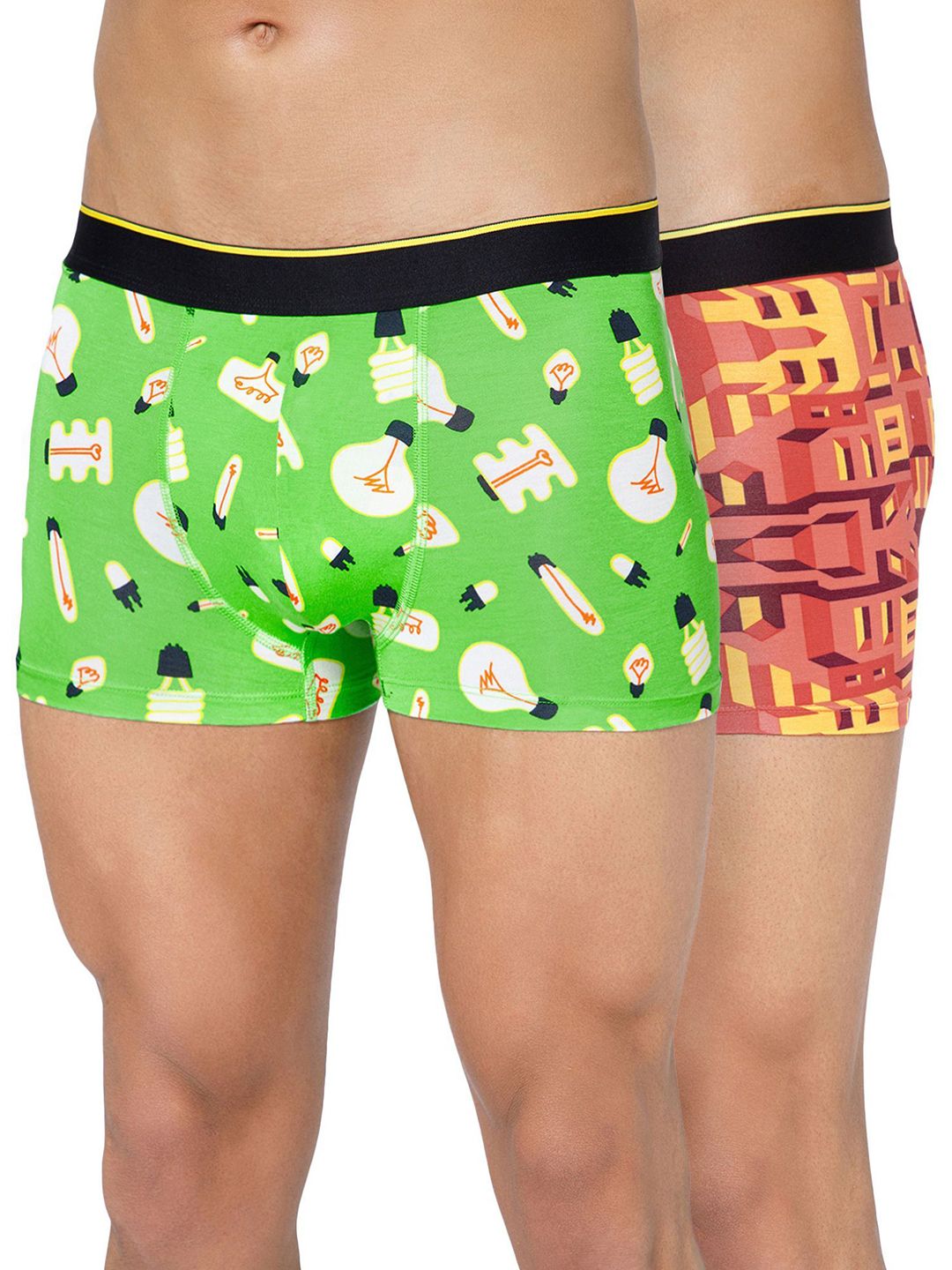VANumber: TRBRCA02SPack of 2 printed trunksGreen printed trunk, has an outer elasticated waistband, and a double-layered contoured front pouchRed printed trunk, has an outer elasticated waistband, and a double-layered contoured front pouch