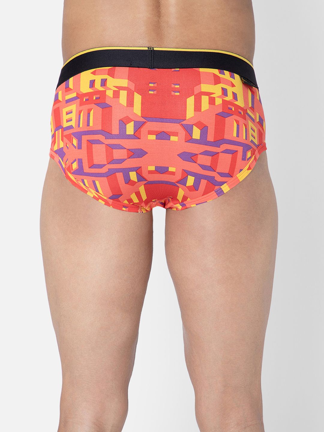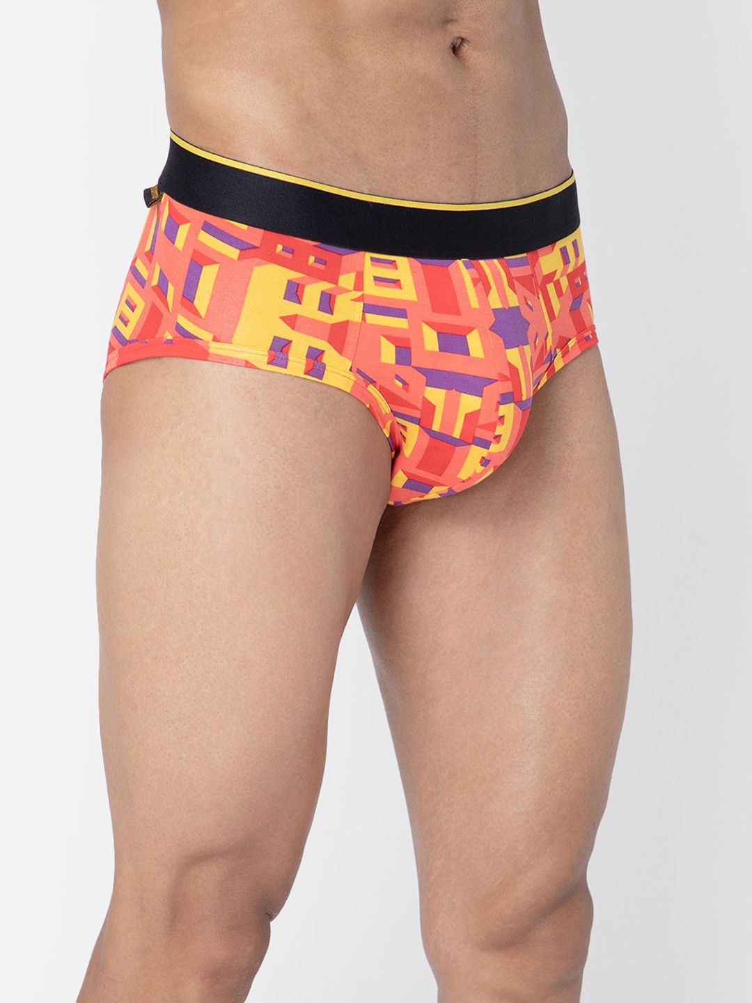 VAN Number: BRBRCH02SPack of 2 Briefs for MenPink, black and yellow geometric printed mid-rise ribbed basic briefs, has an outer elasticated waistband and a double layered contoured pouchPink, black and yellow abstract printed mid-rise ribbed basic briefs, has an outer elasticated waistband and a double layered contoured pouch