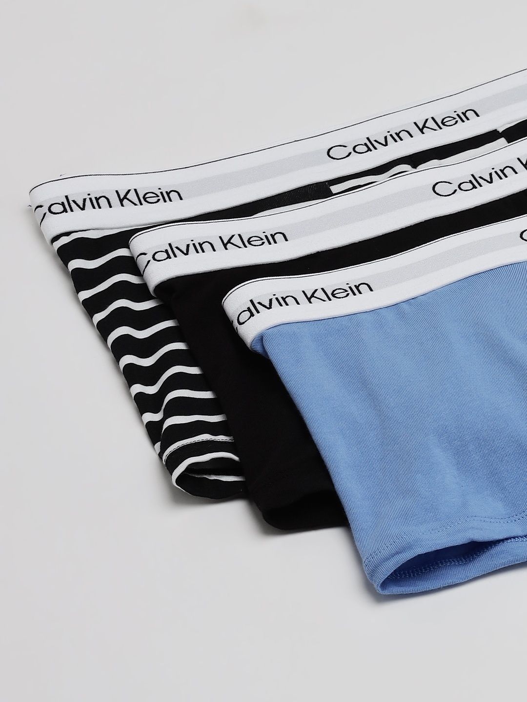 VAN: NB4389431Pack of 3 trunksBlue solid trunks, has an outer elasticated waistband and a double layered contoured pouchBlack solid trunks, has an outer elasticated waistband and a double layered contoured pouchBlack striped trunks, has an outer elasticated waistband and a double layered contoured pouch