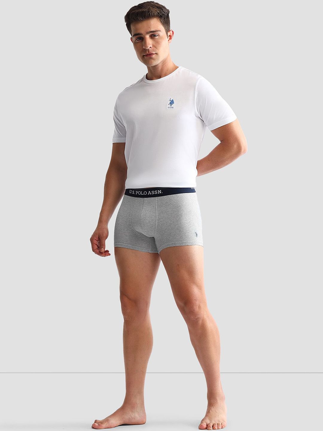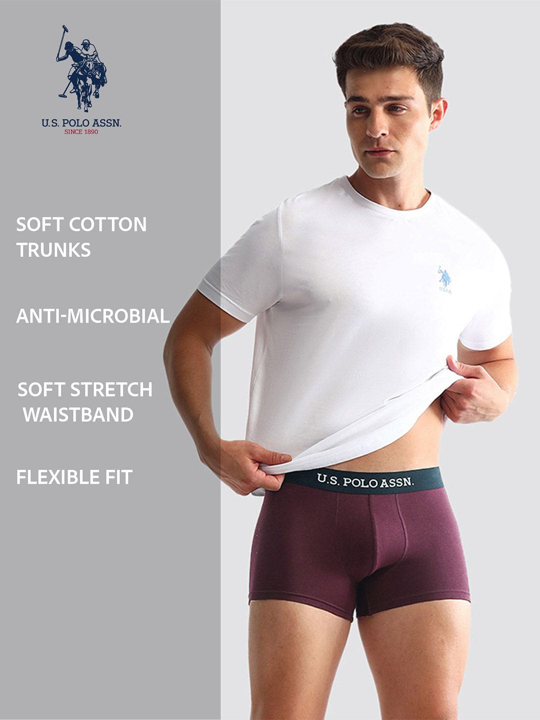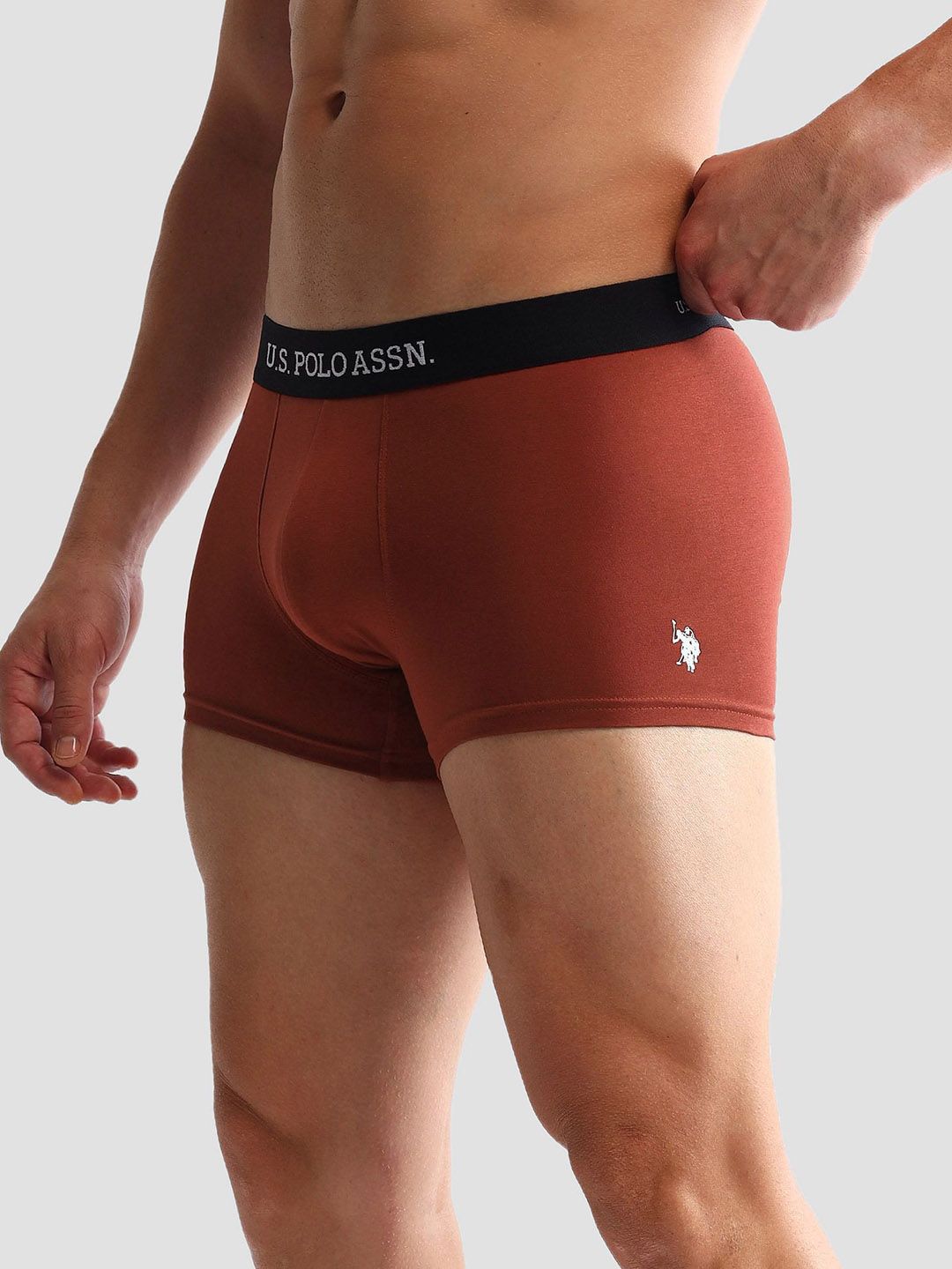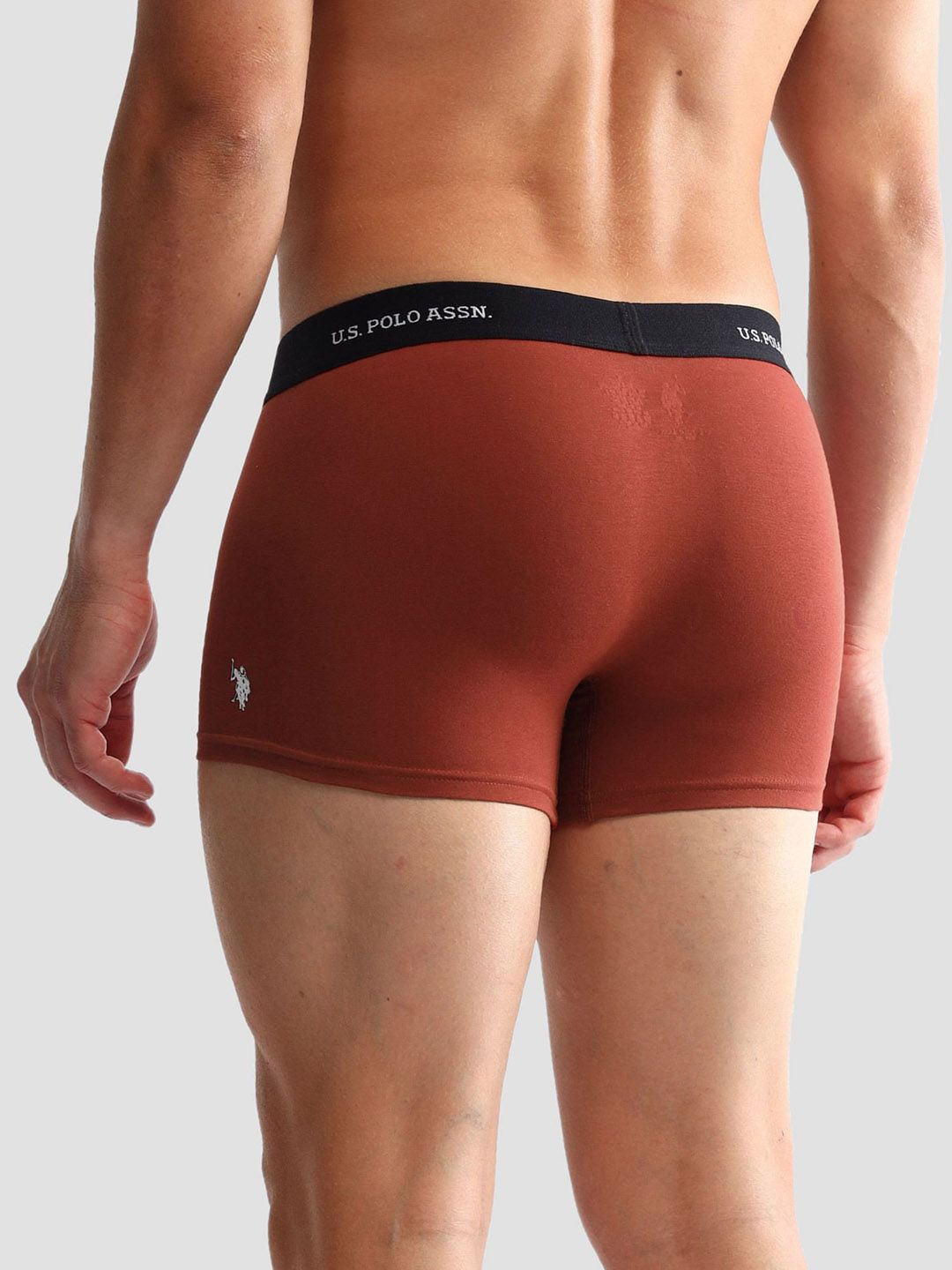 VANumber: OET13-GRM-P3Pack of 3 solid trunksBurgundy solid trunks, has an outer elasticated waistband, and a double-layered contoured front pouchGrey melange solid trunks, has an outer elasticated waistband, and a double-layered contoured front pouchRust orange-colored solid trunks, has an outer elasticated waistband, and a double-layered contoured front pouch