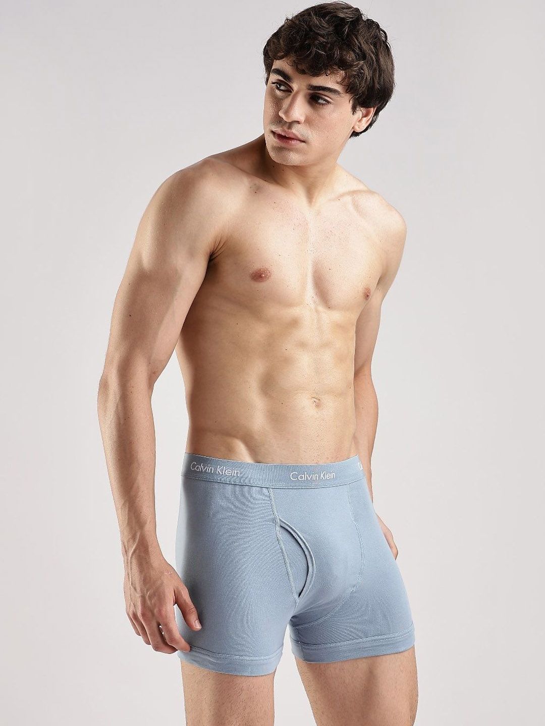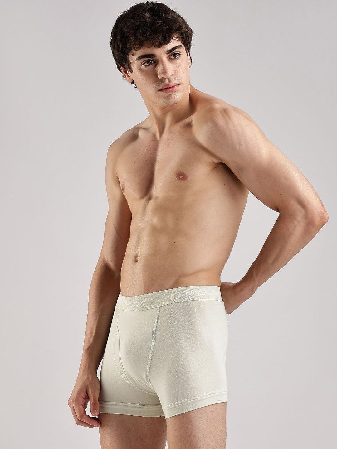 VAN: NB2615959Pack of 3 trunksSea green solid trunk, has an outer elasticated waistband and a double layered contoured pouchBlue solid trunks, has an outer elasticated waistband and a double layered contoured pouchBeige solid trunks, has an outer elasticated waistband and a double layered contoured pouch