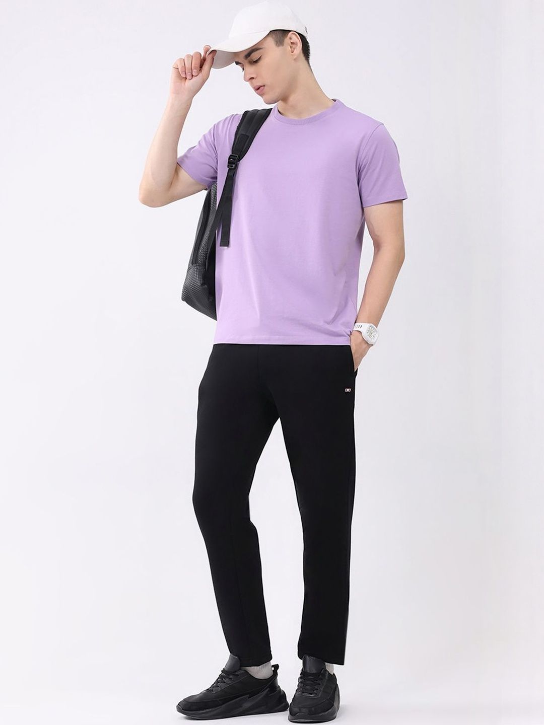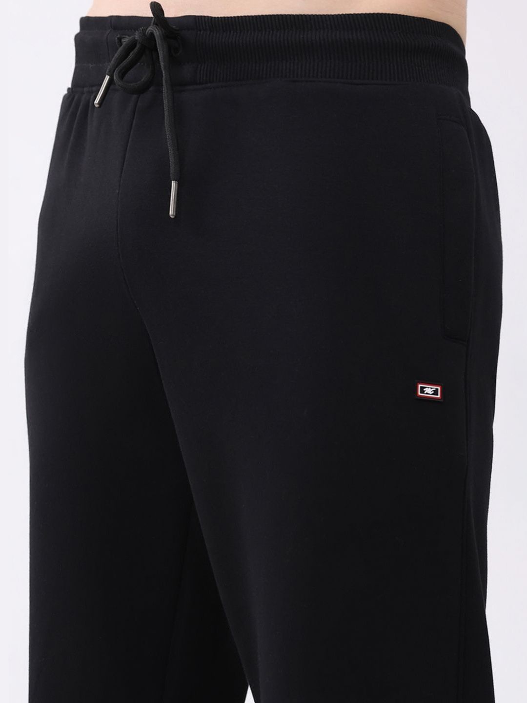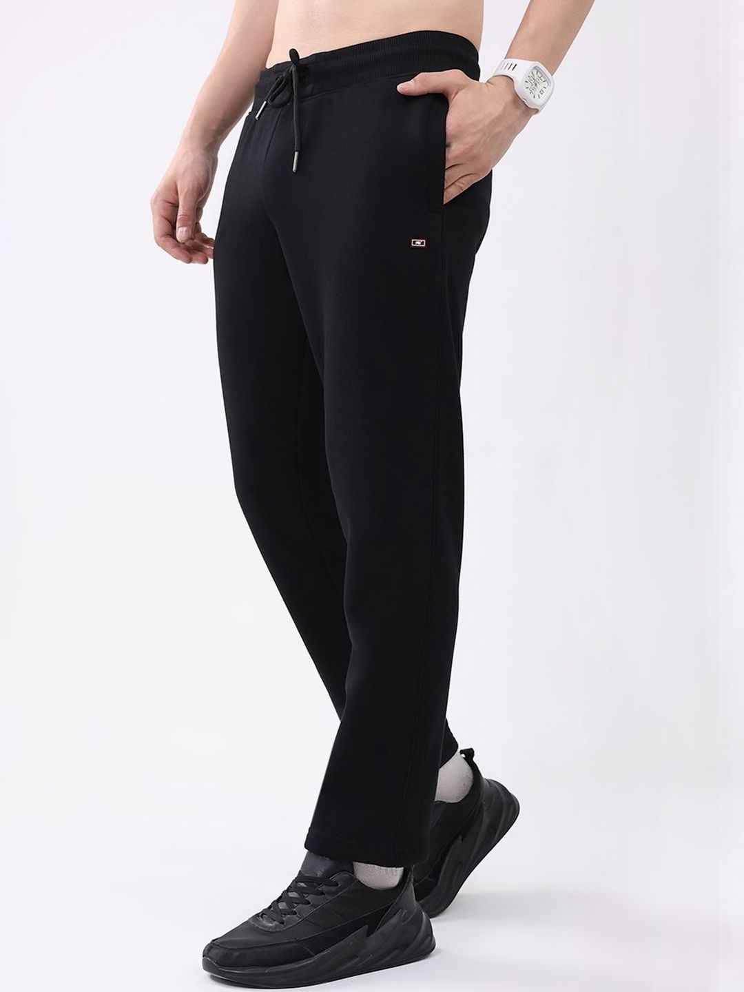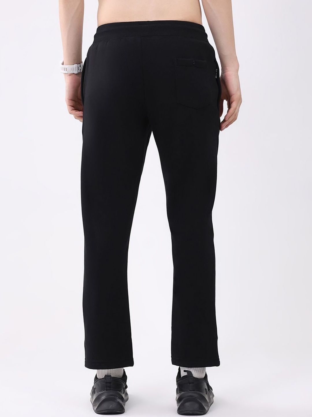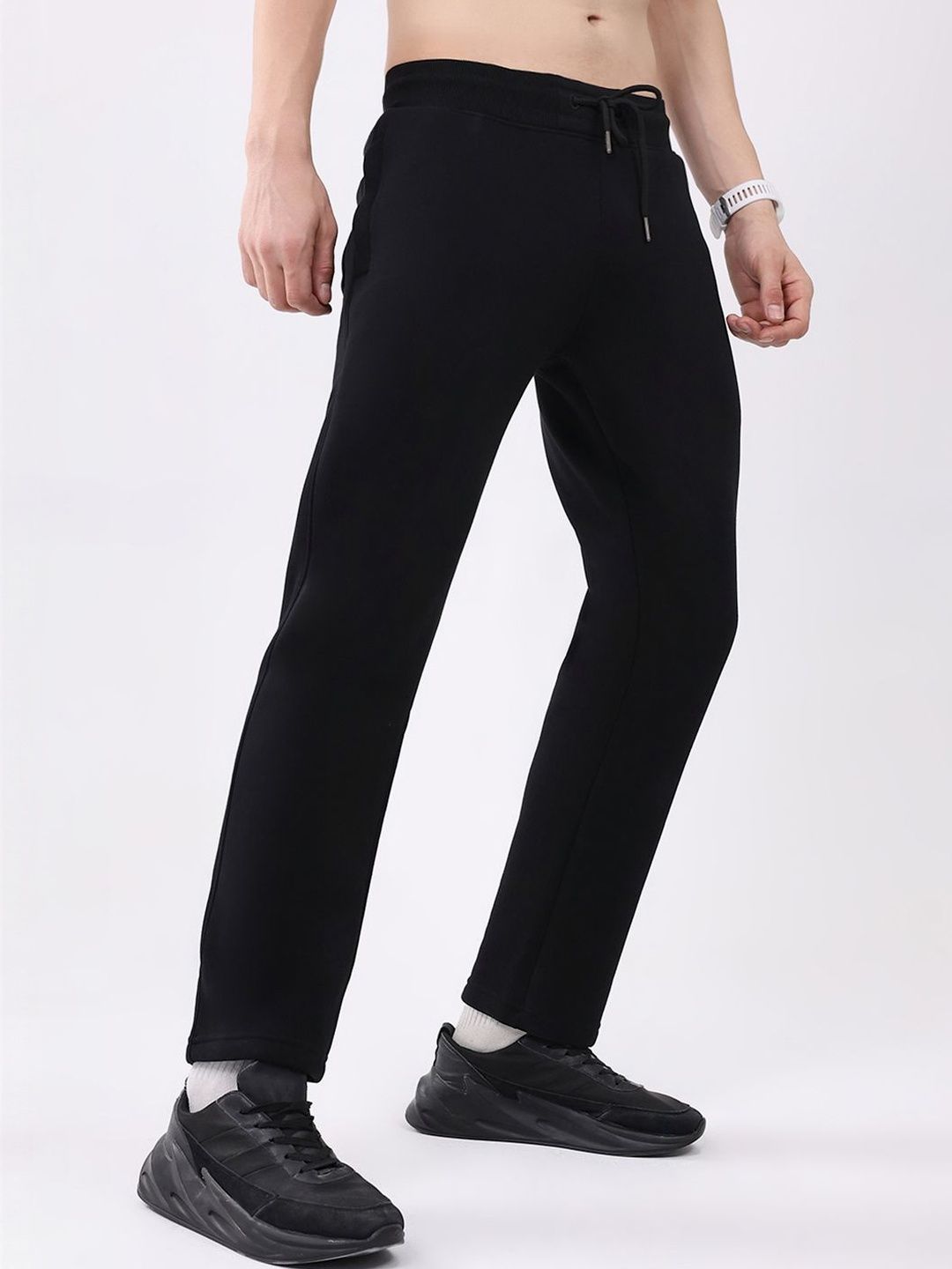 Black solid regular-fit mid-rise track pants, has an elasticated waistband with drawstring closure and 3 pockets