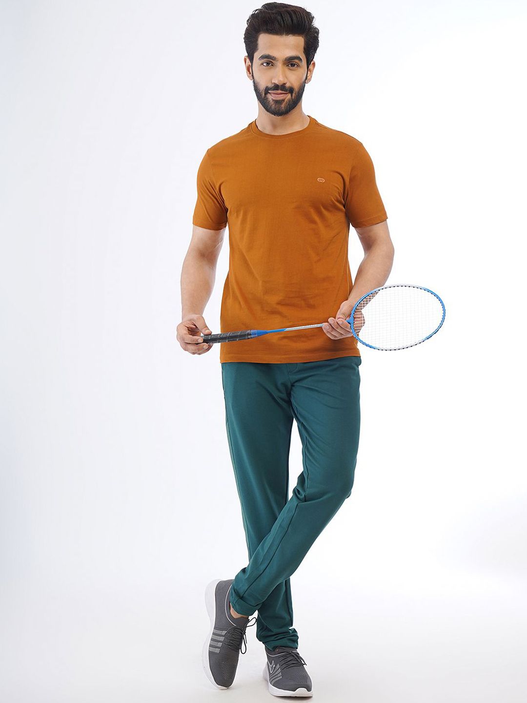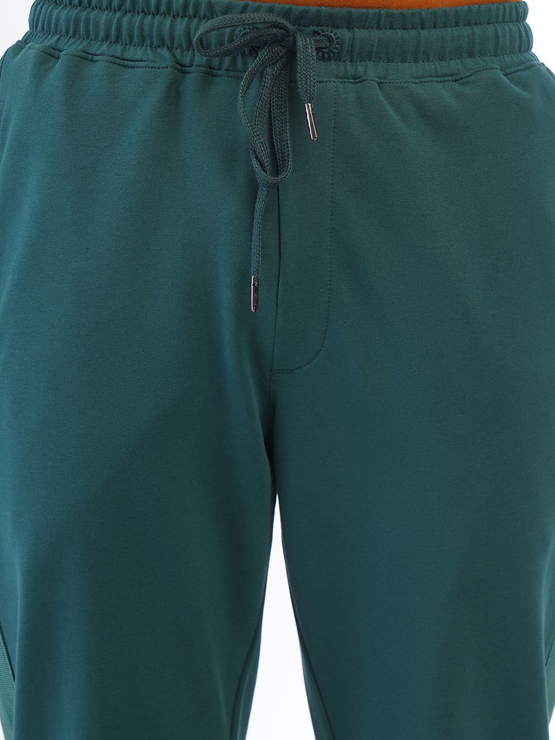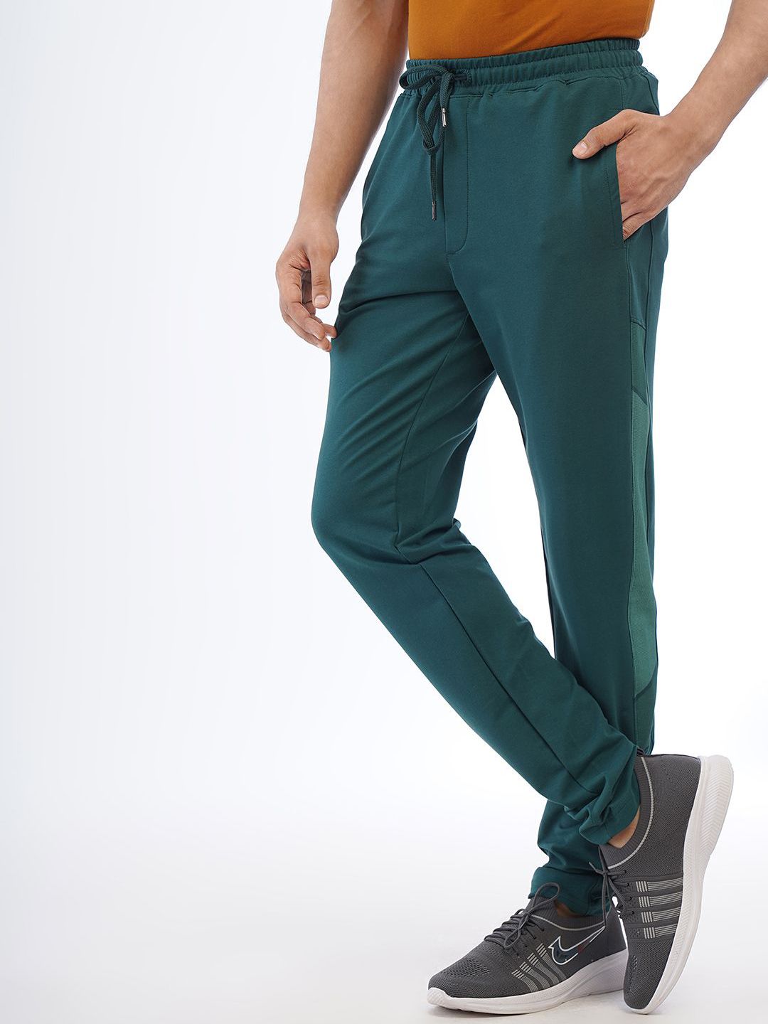 Green solid slim-fit mid-rise joggers, has an elasticated waistband with drawstring closure and three pockets
