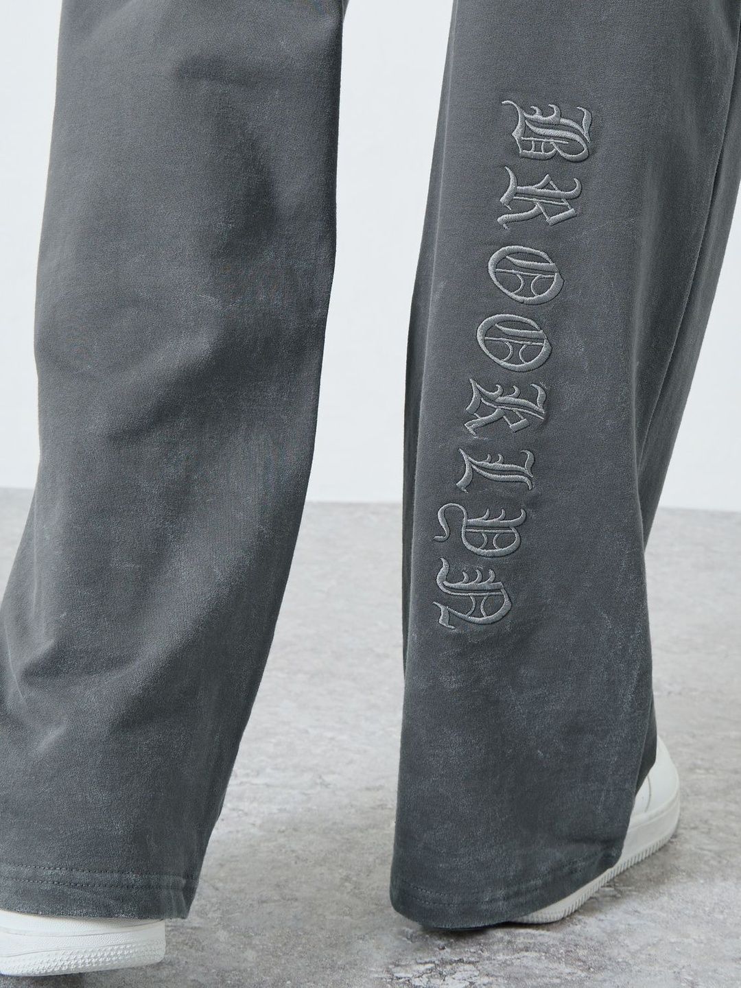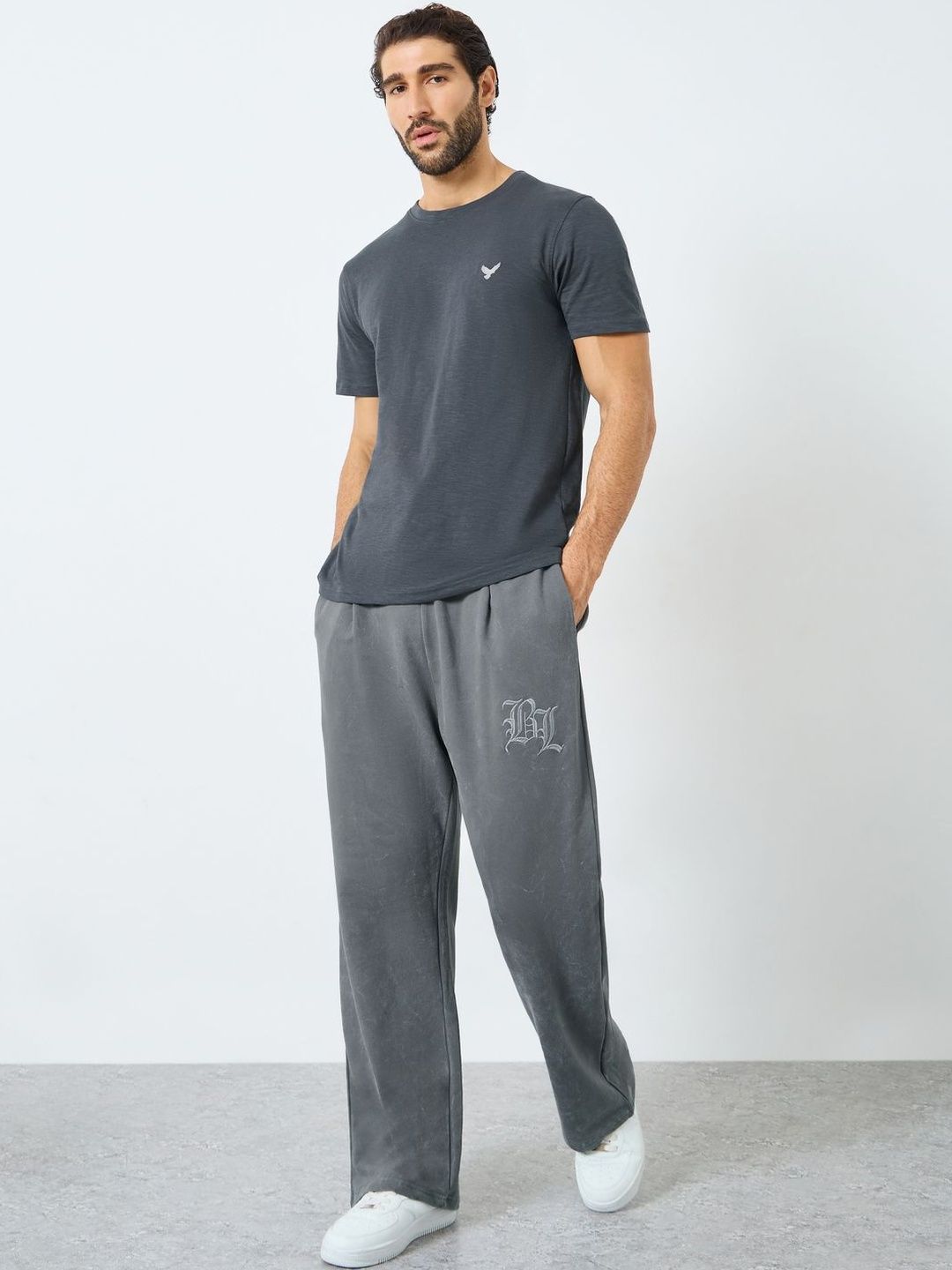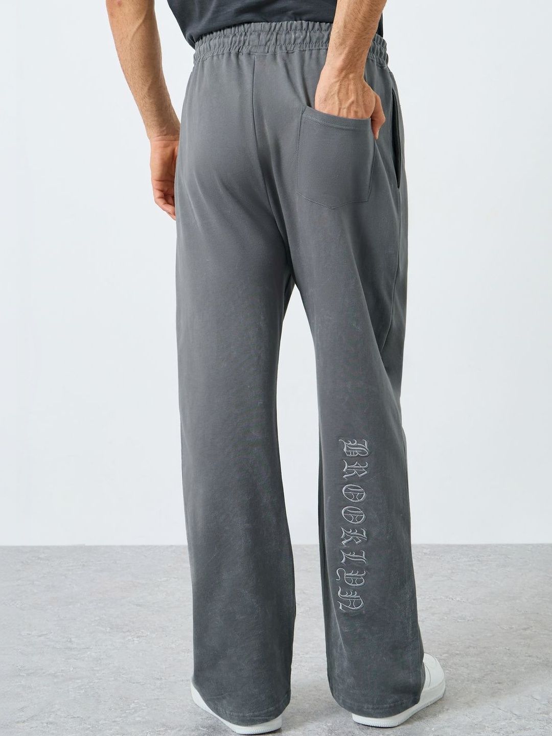 Grey solid relaxed-fit mid-rise track pants with print detail, has an elasticated waistband with drawstring closure and two pockets