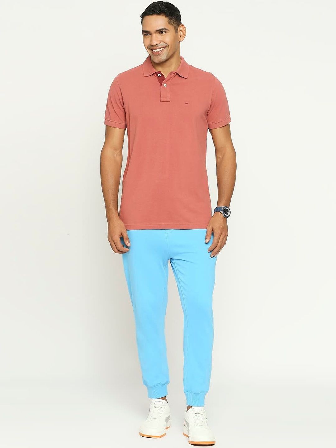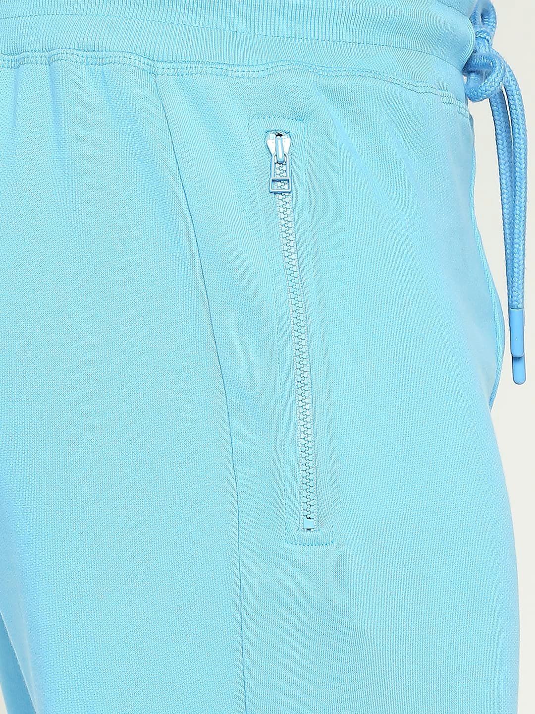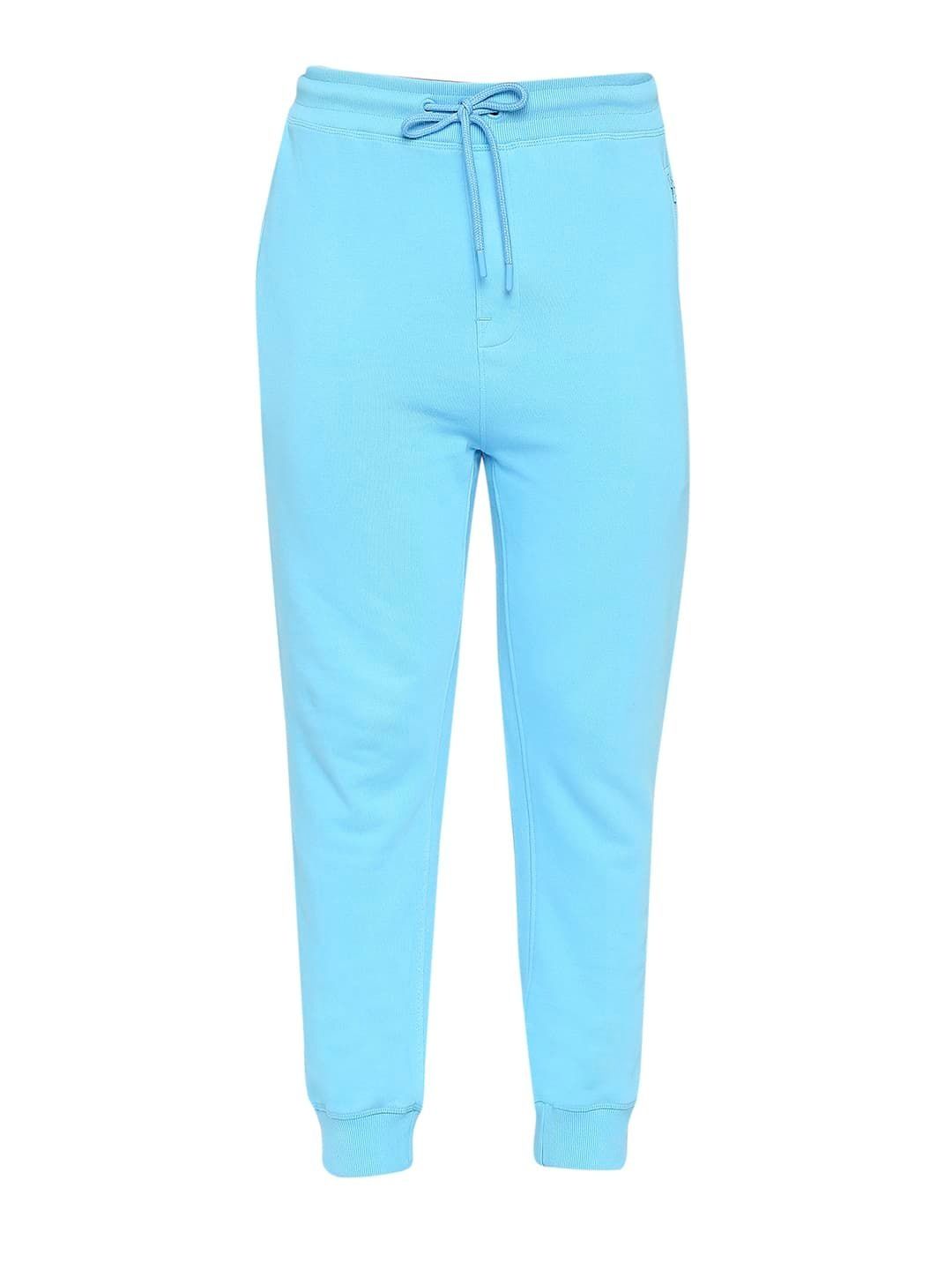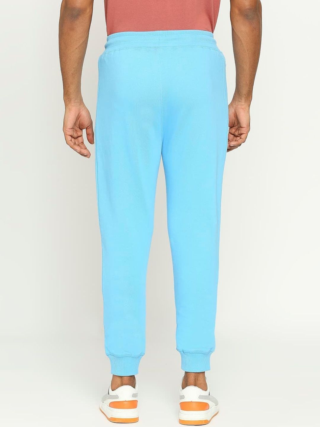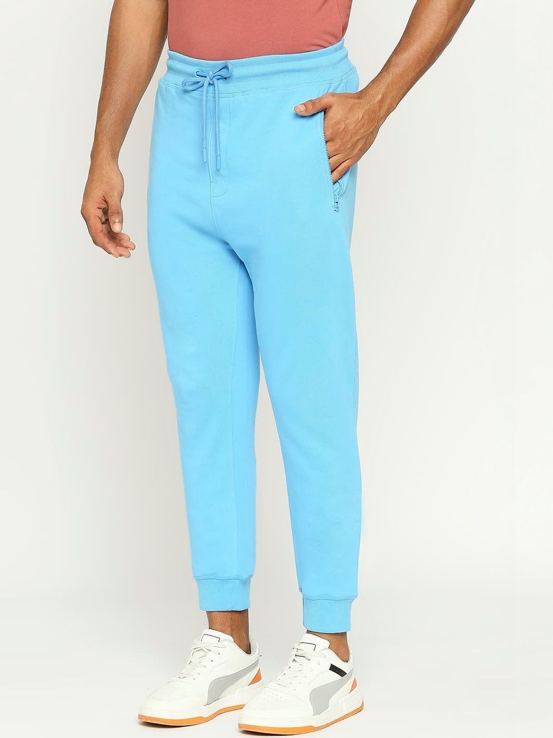 Blue solid regular-fit mid-rise joggers, has an elasticated waistband with drawstring closure and two pockets