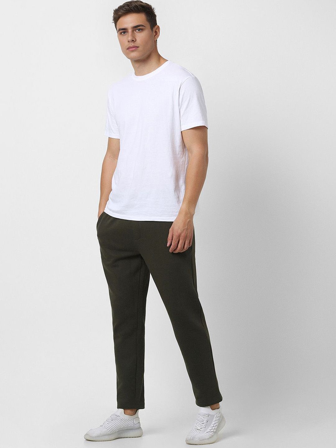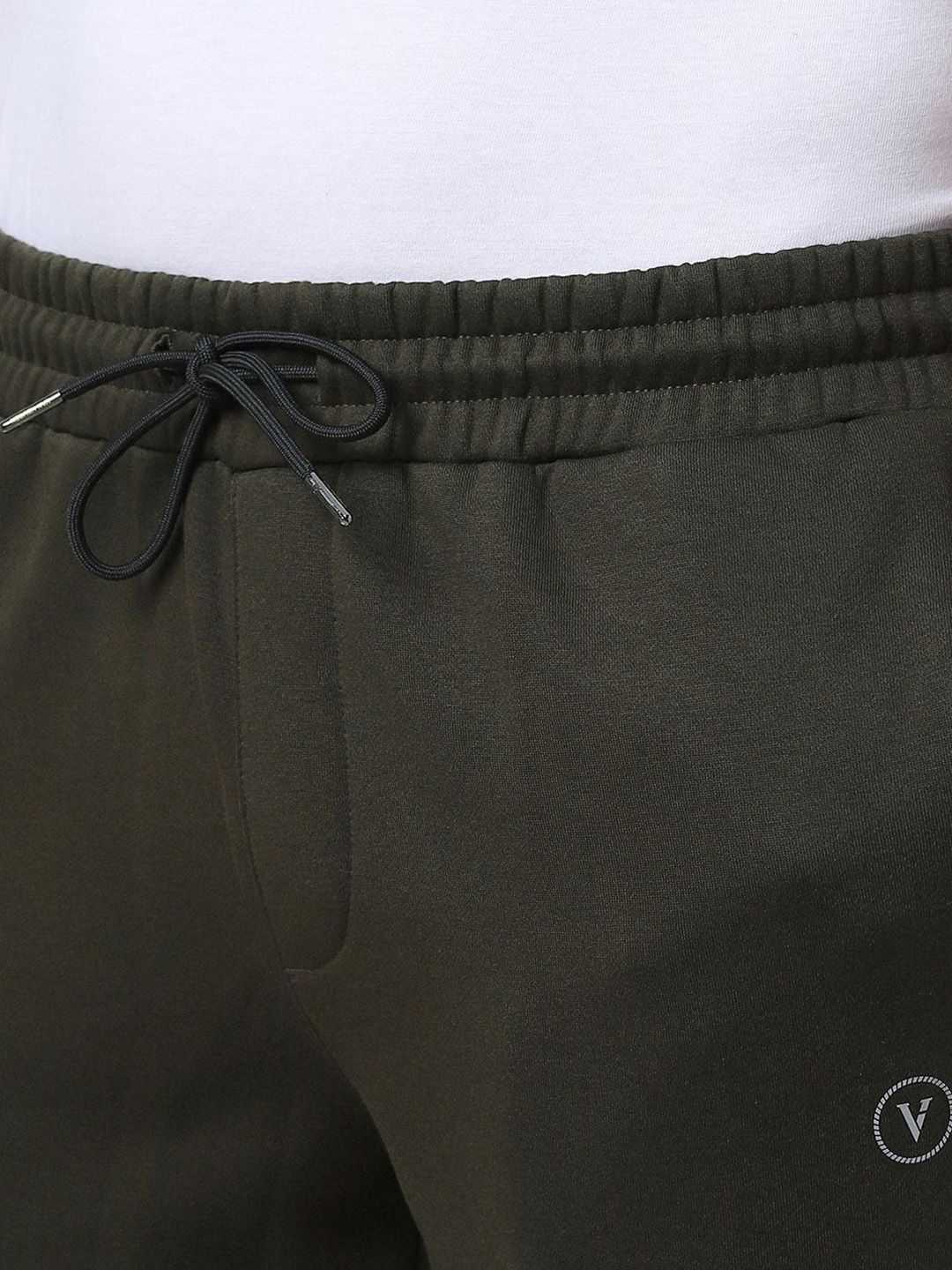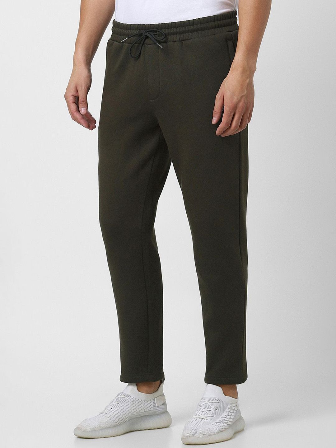Olive green solid mid-rise relaxed-fit track pants, has an elasticated waistband with drawstring closure and two side pockets