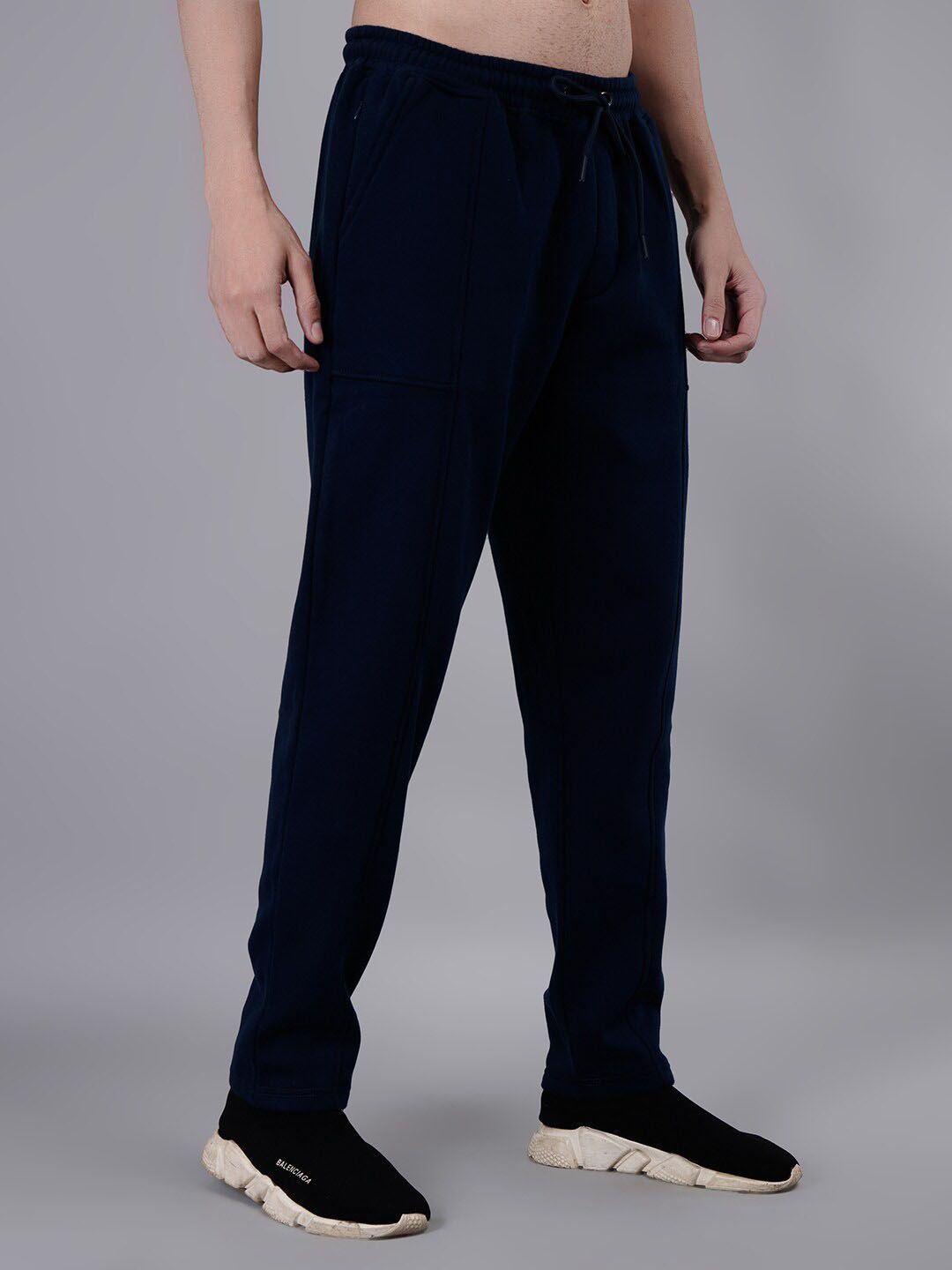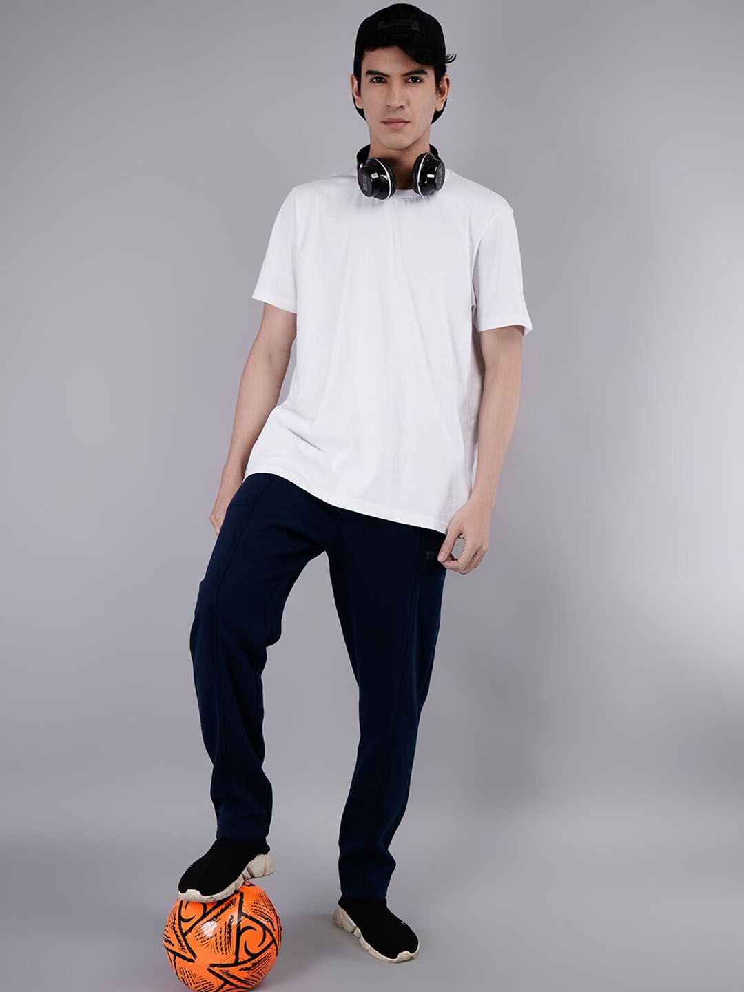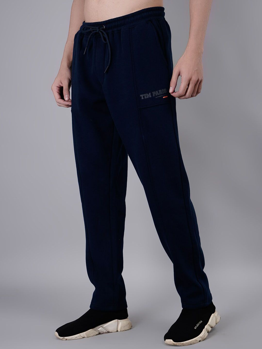 Blue solid regular-fit mid-rise track pants, has an elasticated waistband with drawstring closure and two pockets