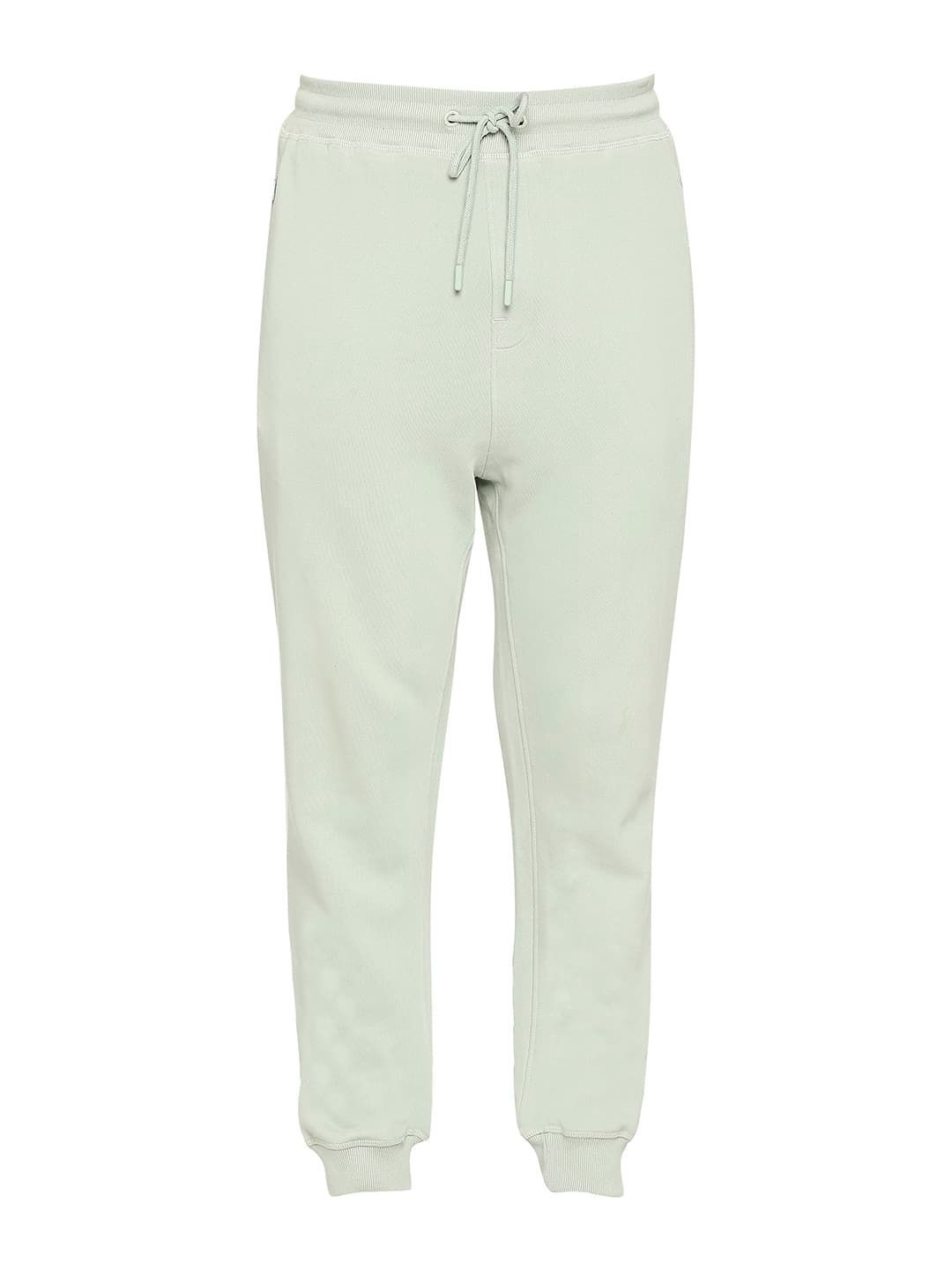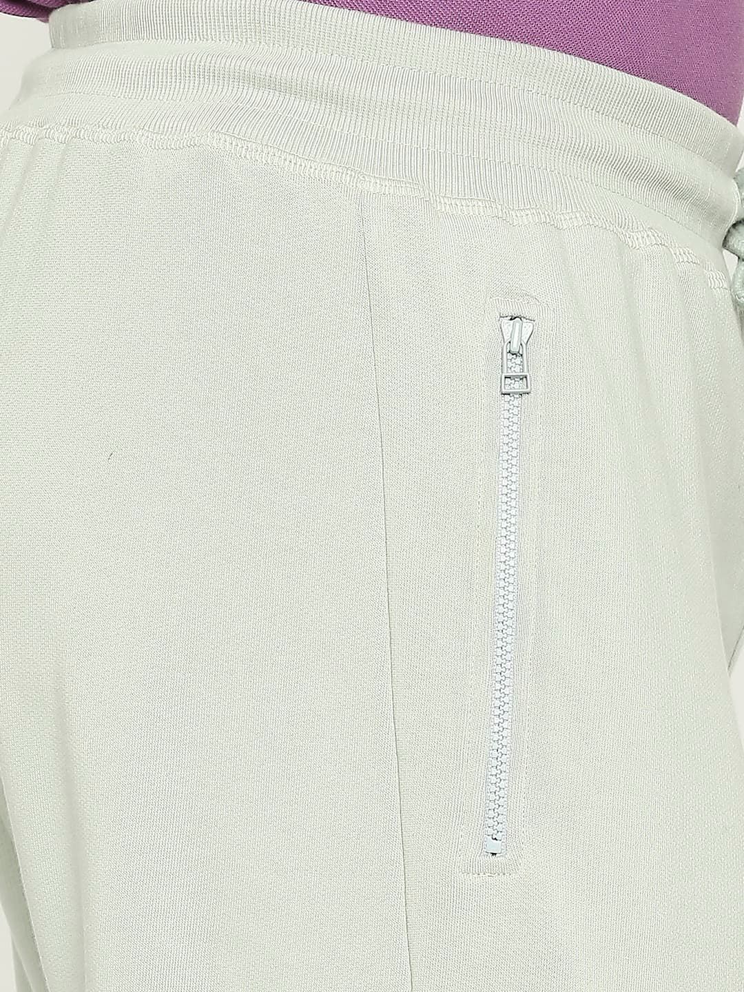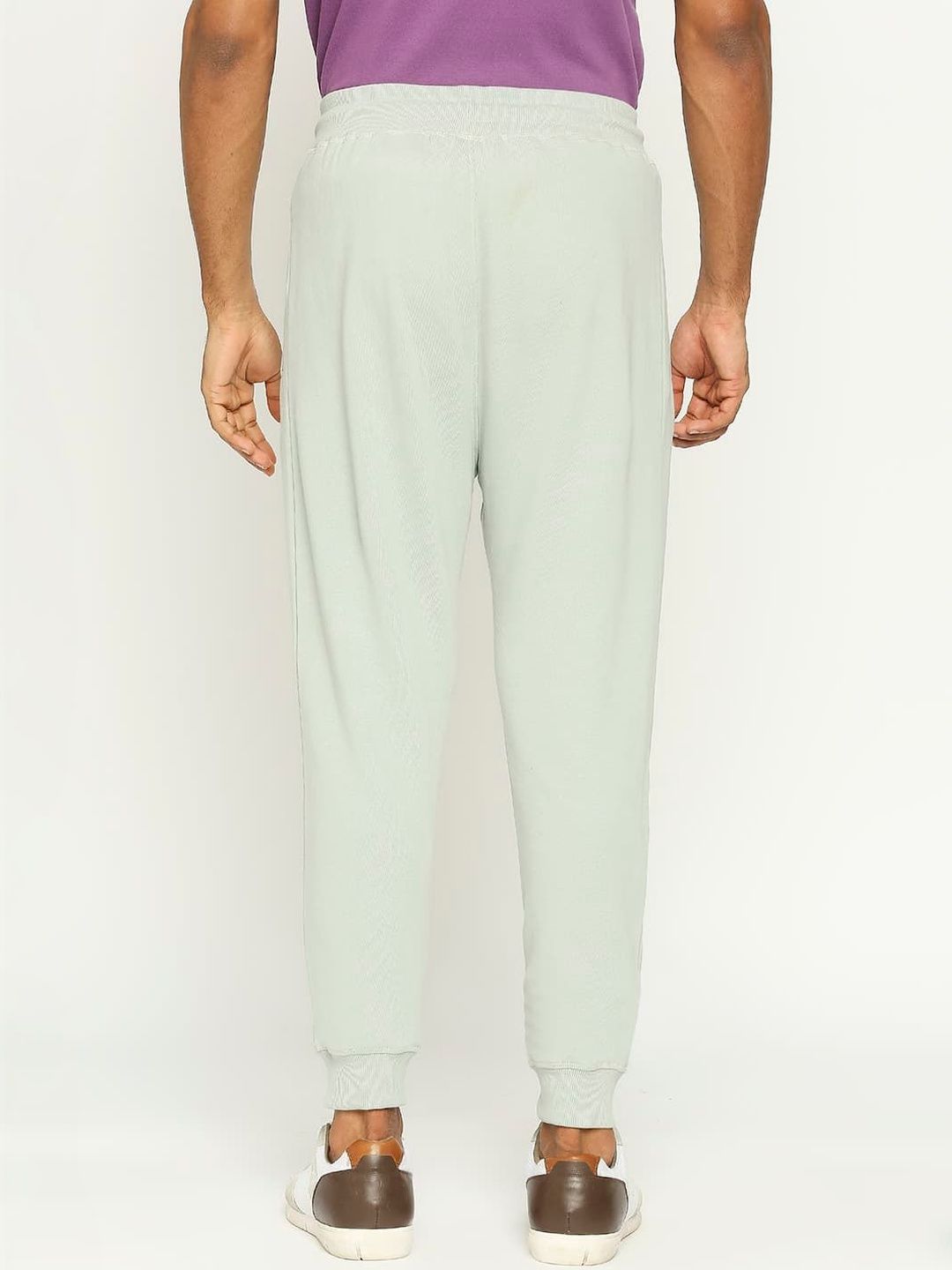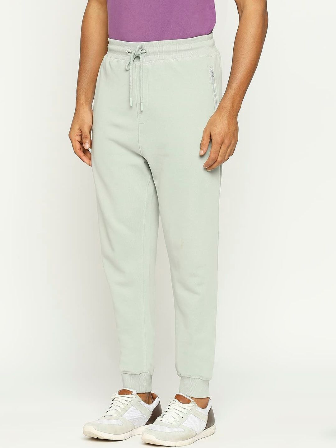 Grey regular-fit mid-rise joggers has an elasticated waistband with drawstring closure