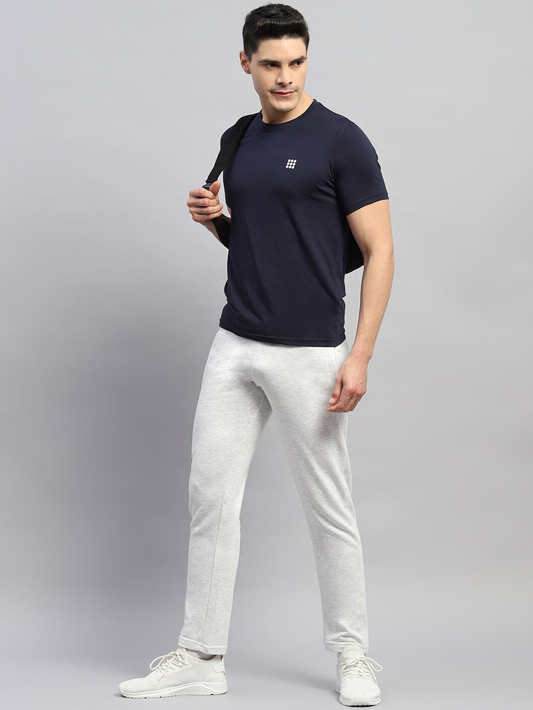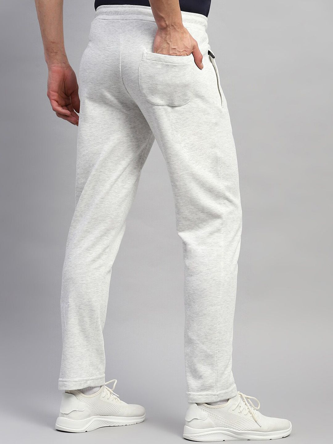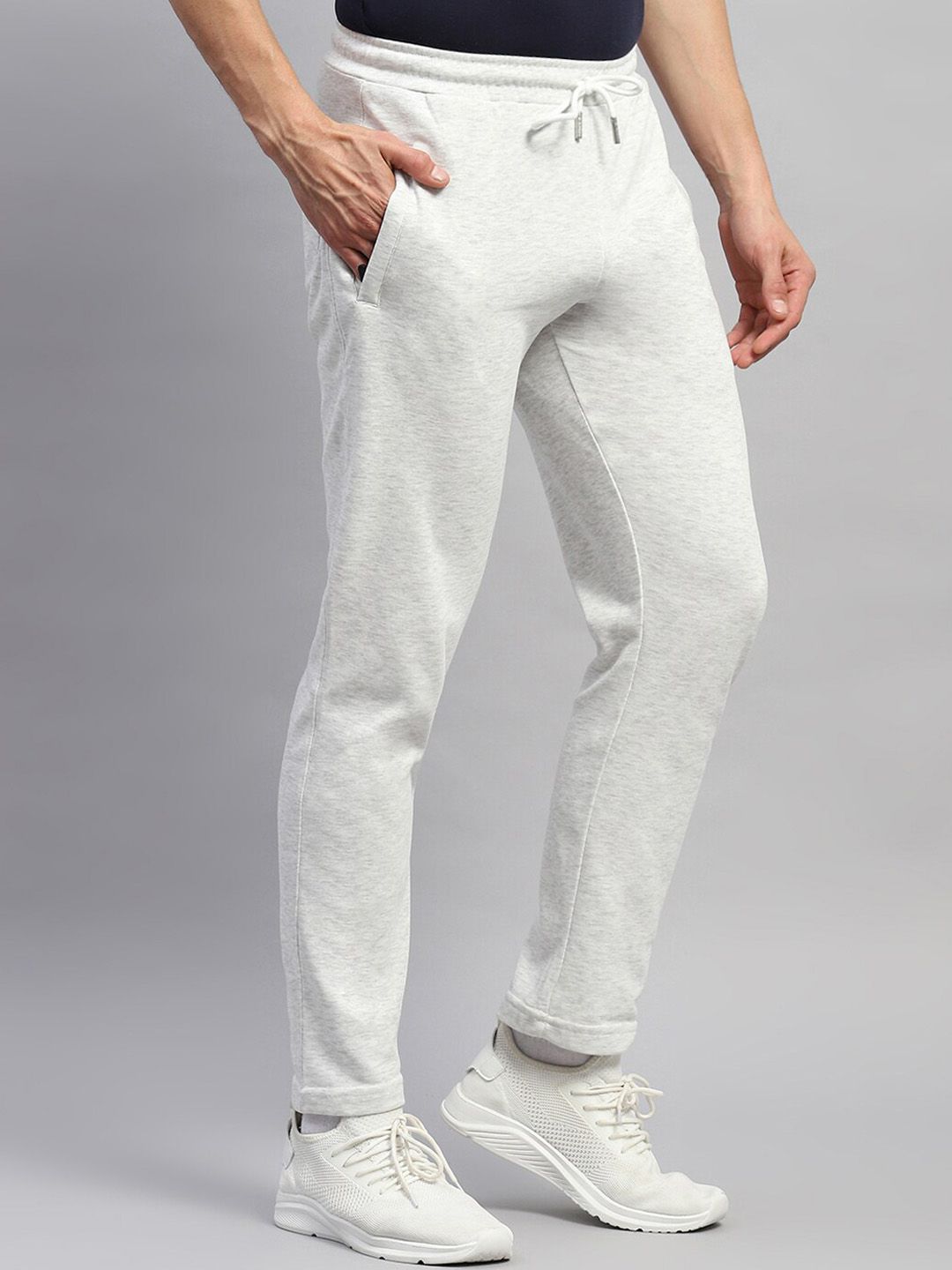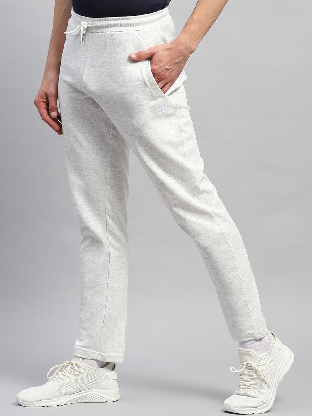 Grey solid regular-fit mid-rise track pants, has an elasticated waistband with drawstring closure and side pocket