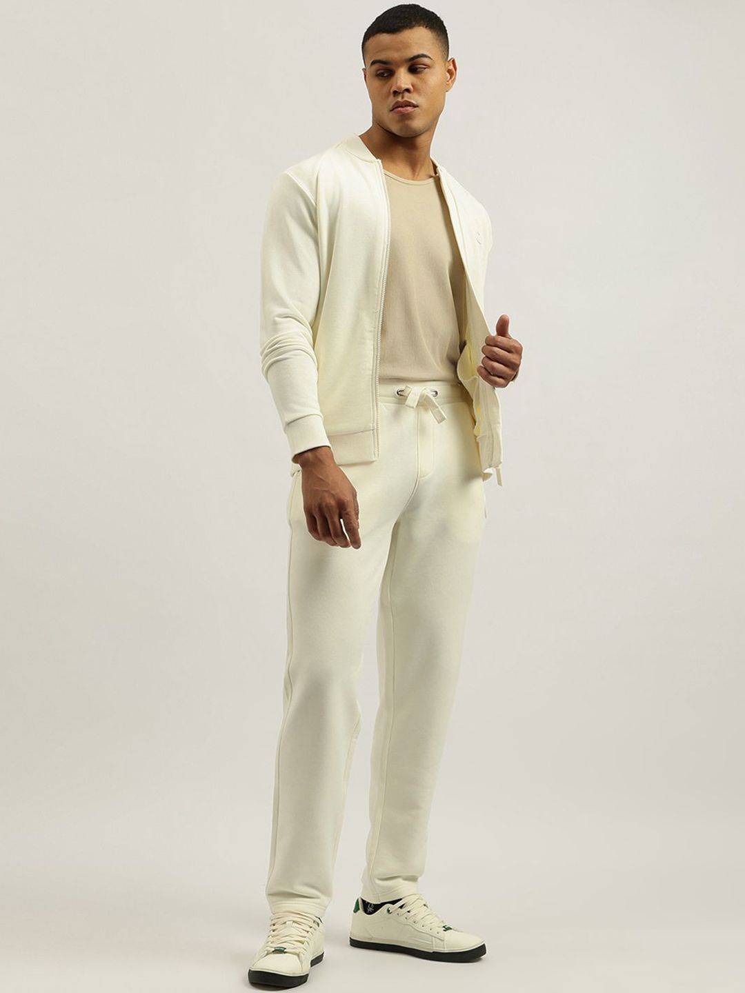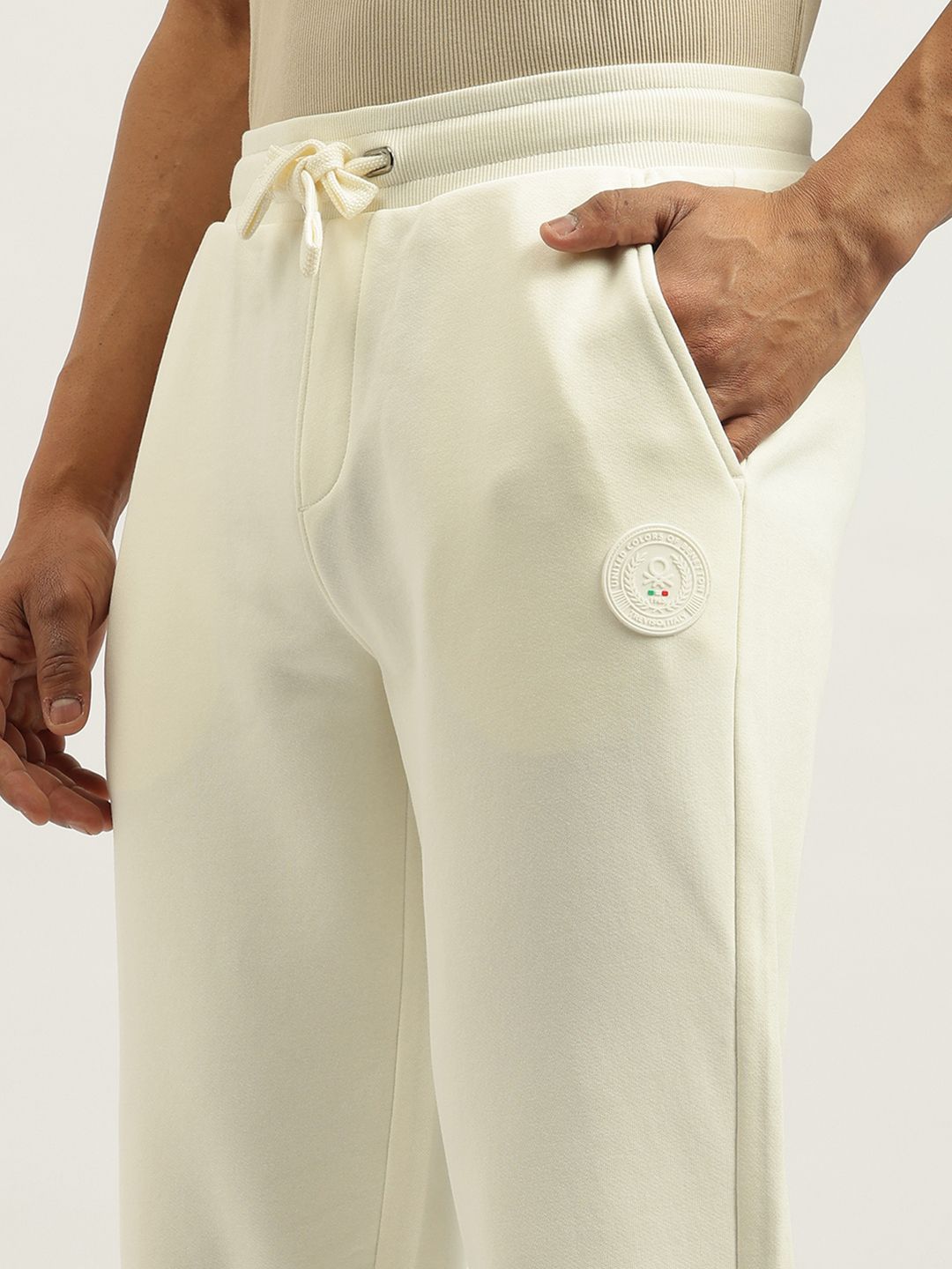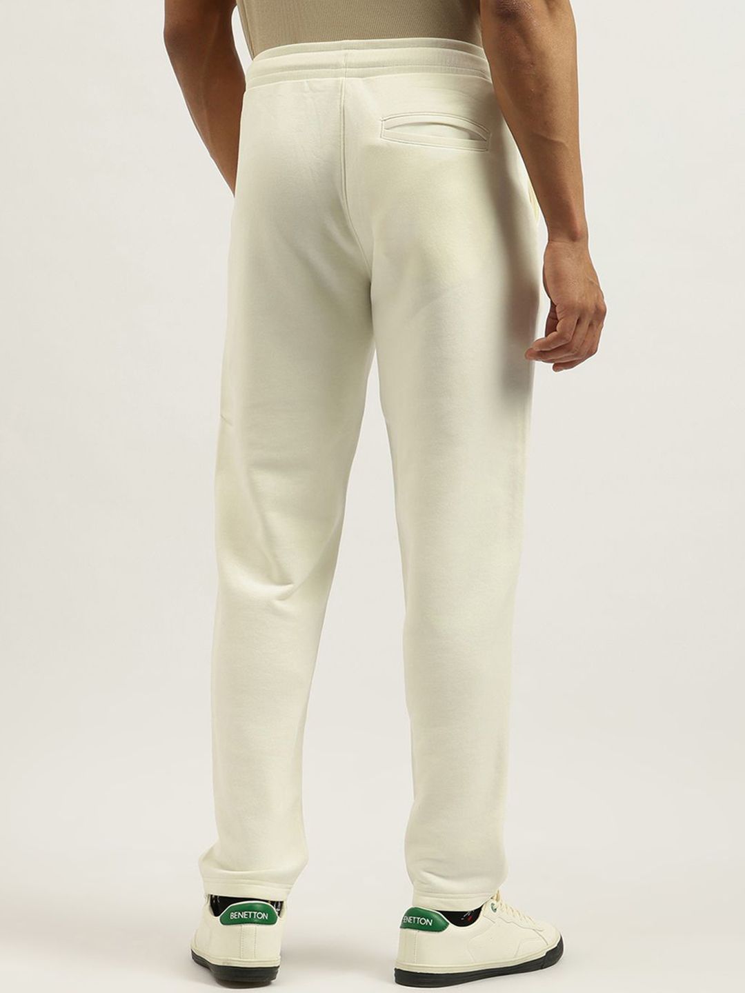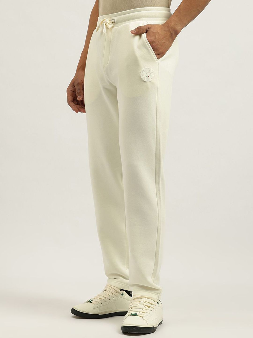 Off-white solid regular-fit mid-rise track pants, has an elasticated waistband with drawstring closure and three pockets
