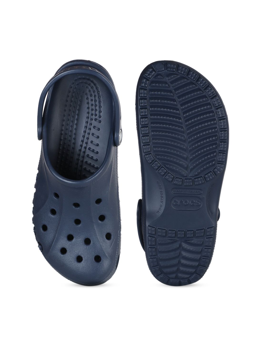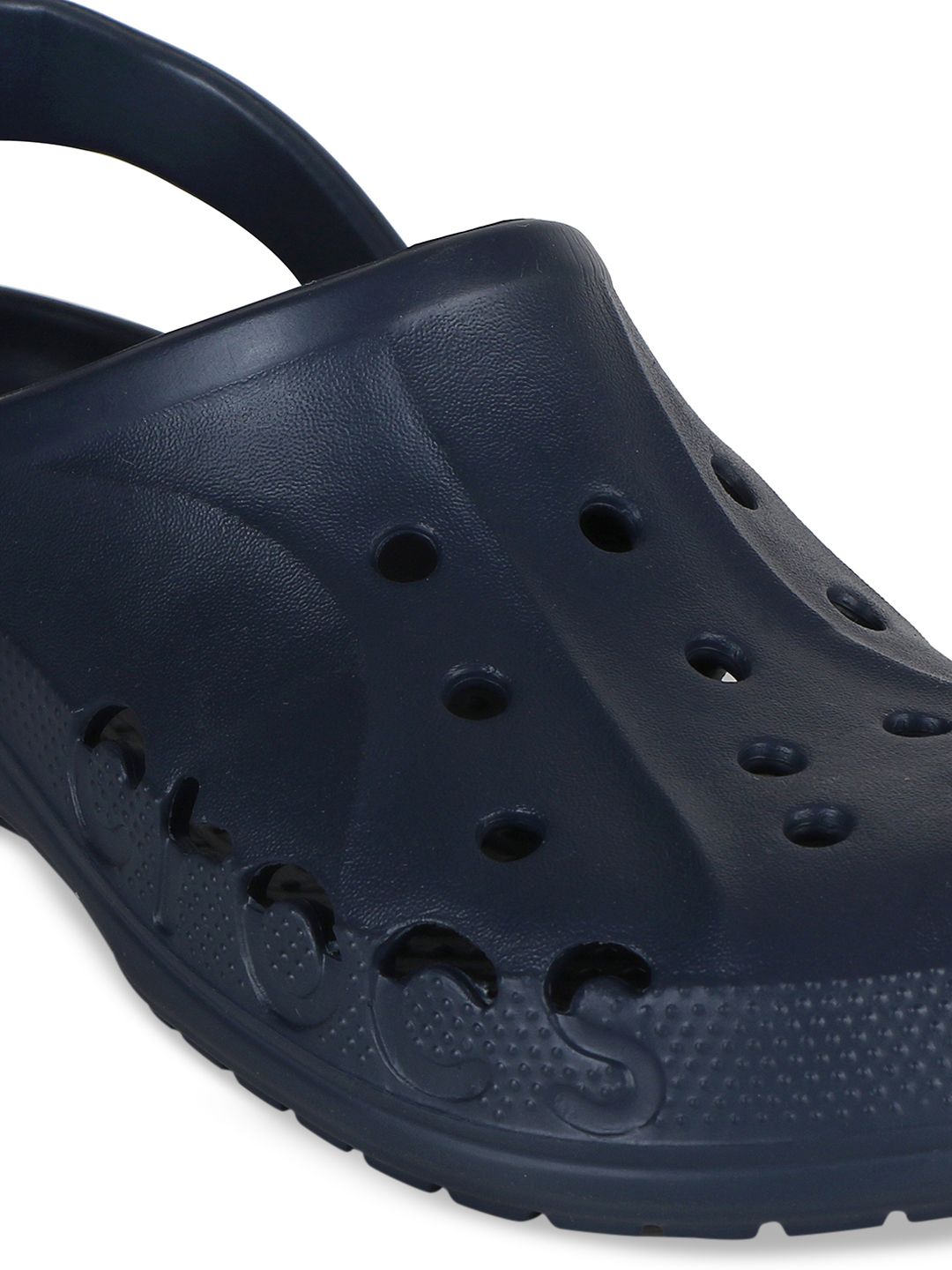 A pair of navy blue clogsTextured 100% Thermoplastic (EVA) upper with cut-out detailTextured and cushioned footbedTextured and patterned EVA outsole