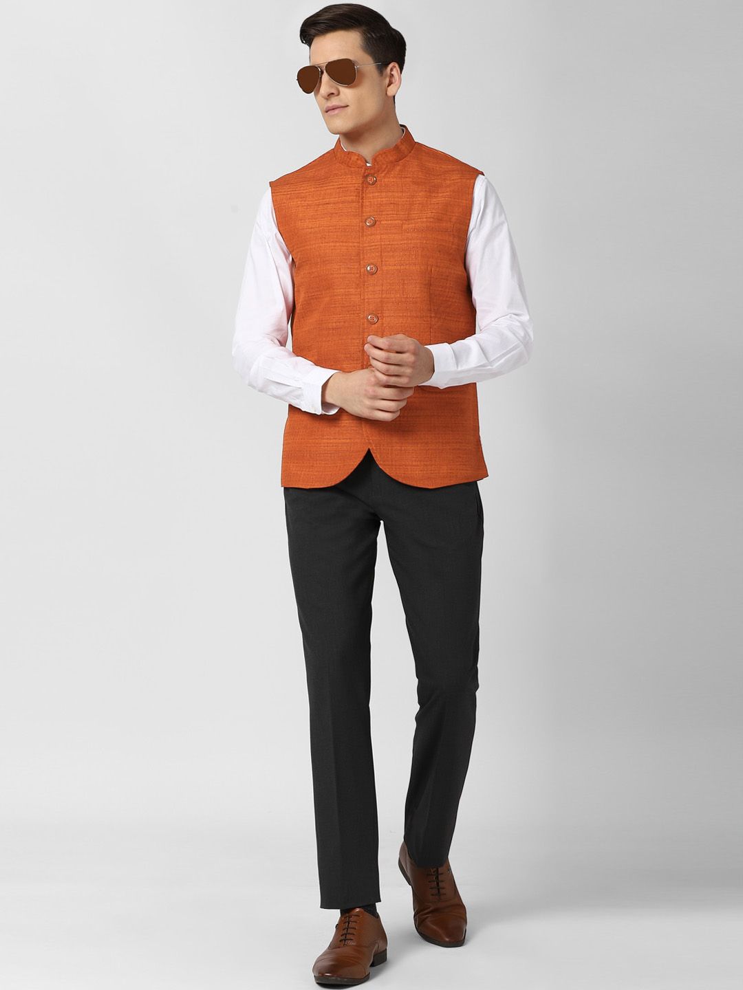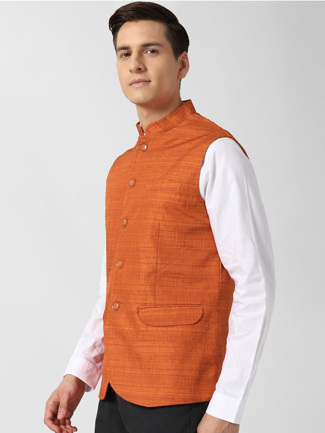 Take your dressing style to a new level with this versatile nehru jacket from Peter England Elite. Simply team it with a shirt, a pair of jeans and a pair of loafers and set your own trends.