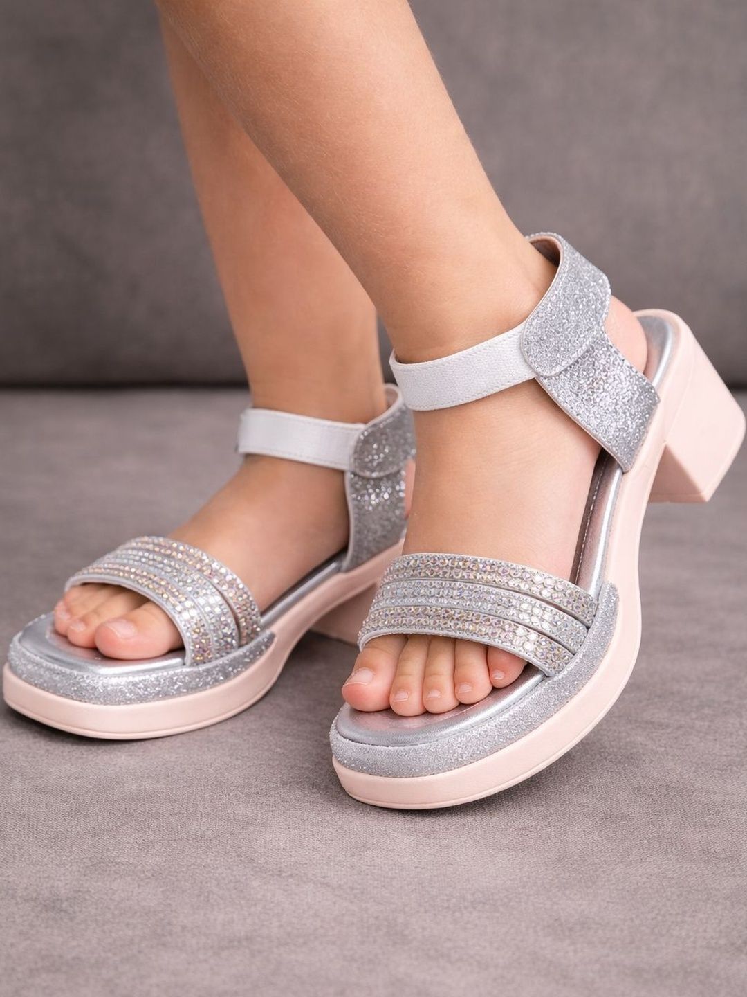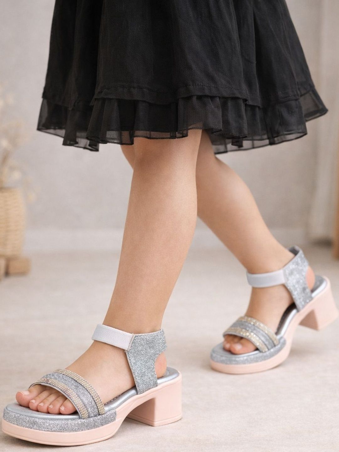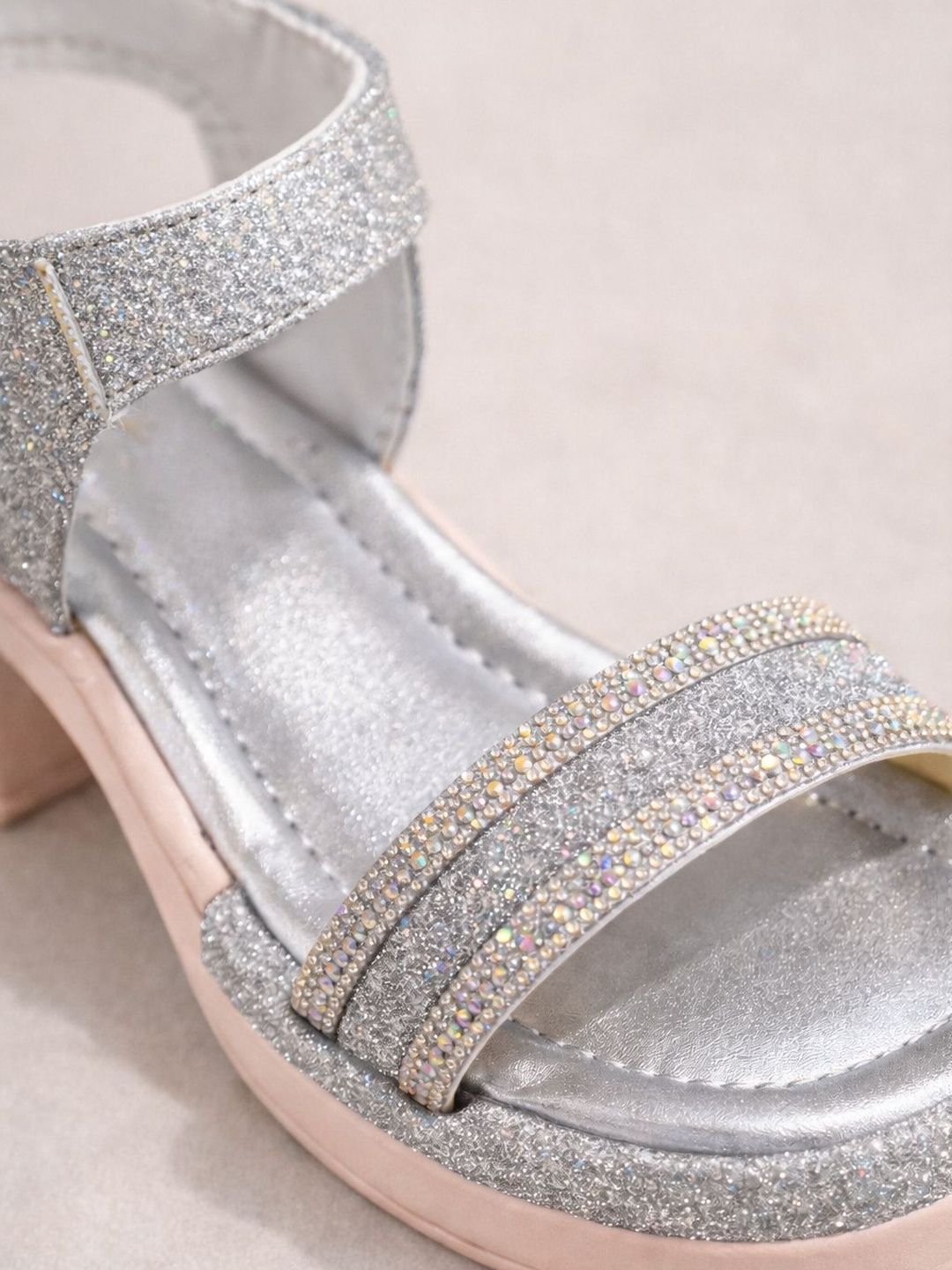 Add a festive sparkle to her look with these glittery block heel sandalsperfect for parties and special occasions.