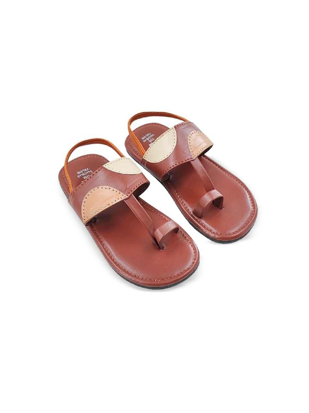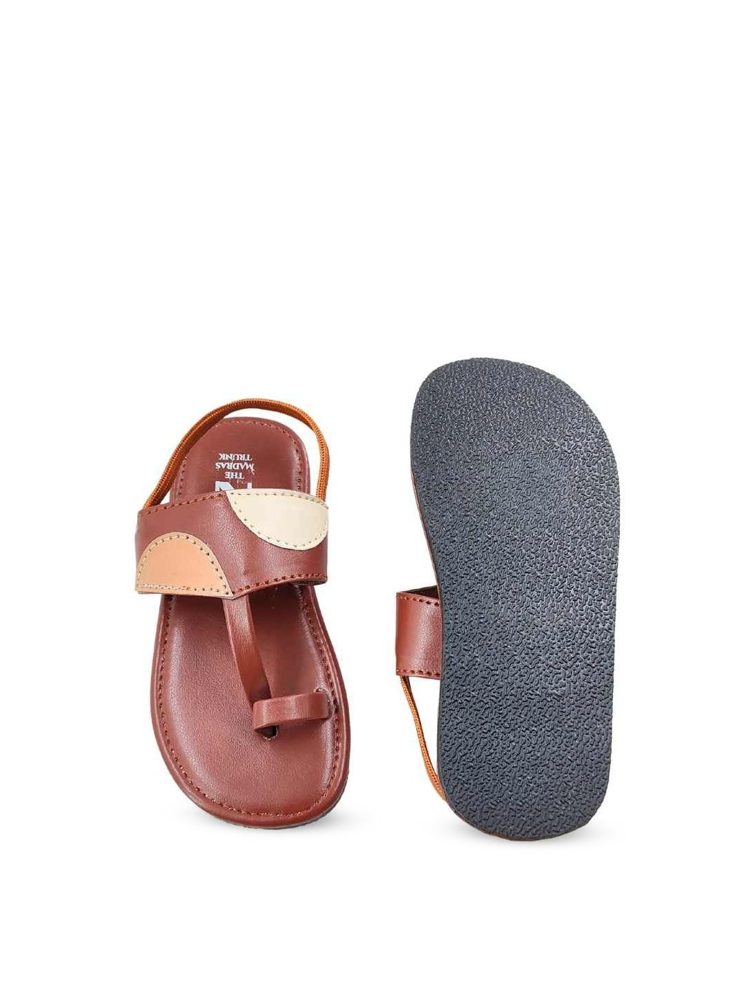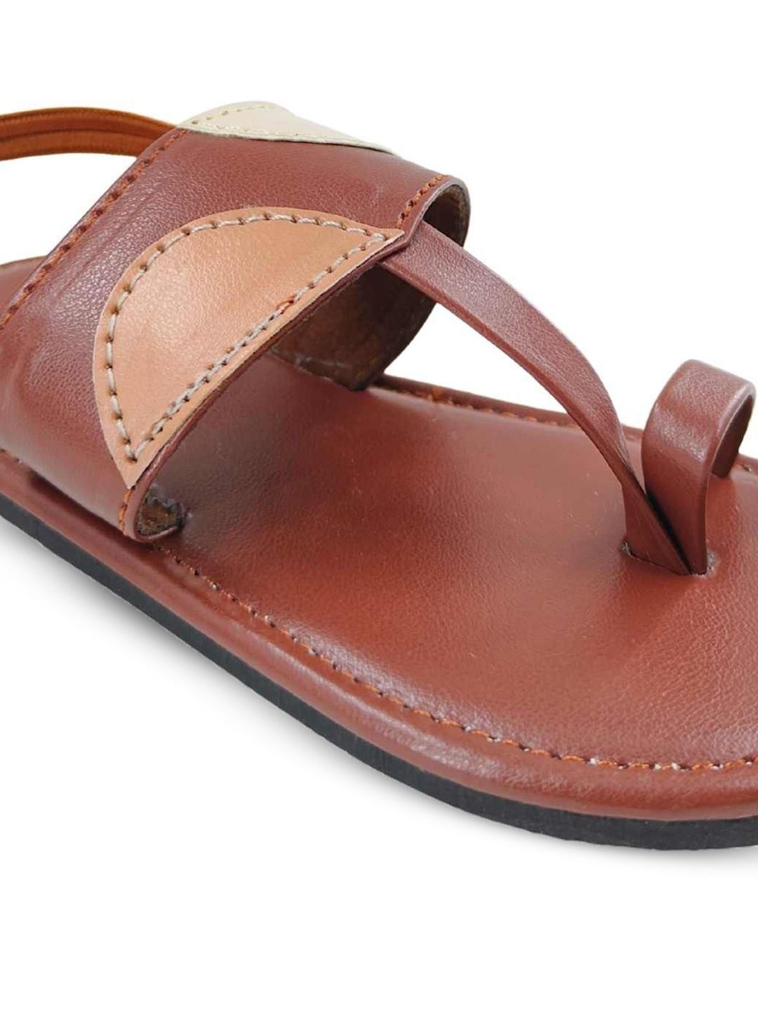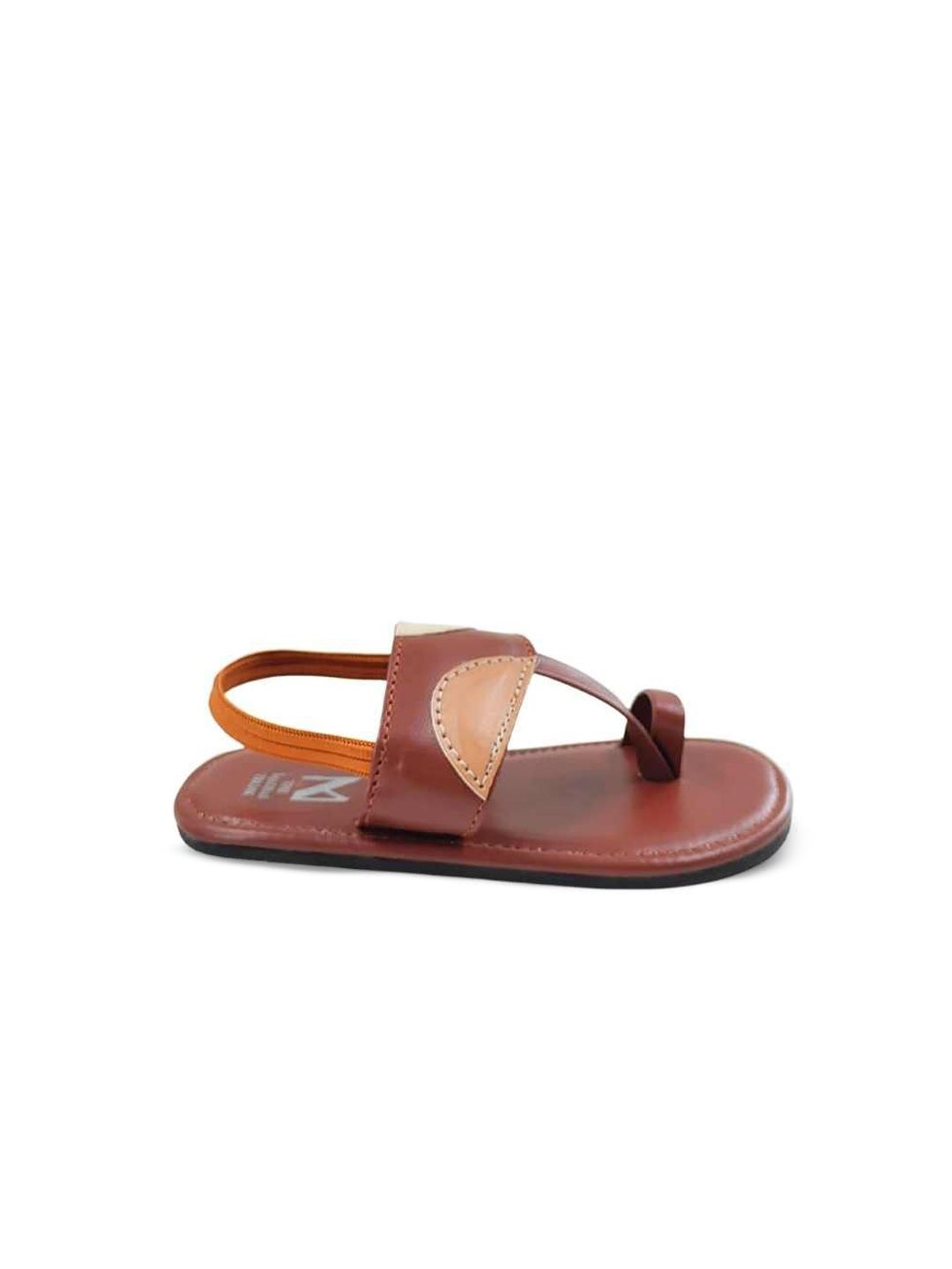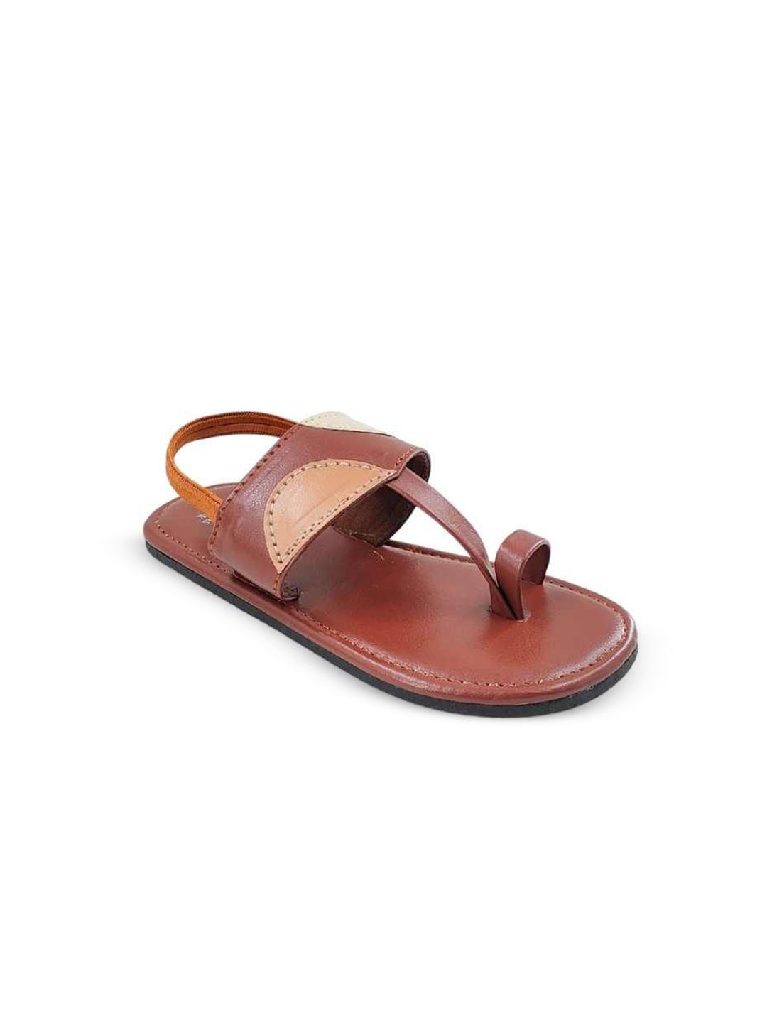 Brown solid sandals, secured with a slip on closureSynthetic upperCushioned footbedTextured and patterned Rubber outsole