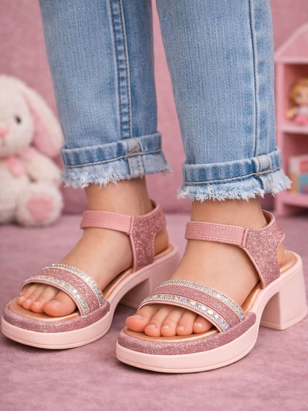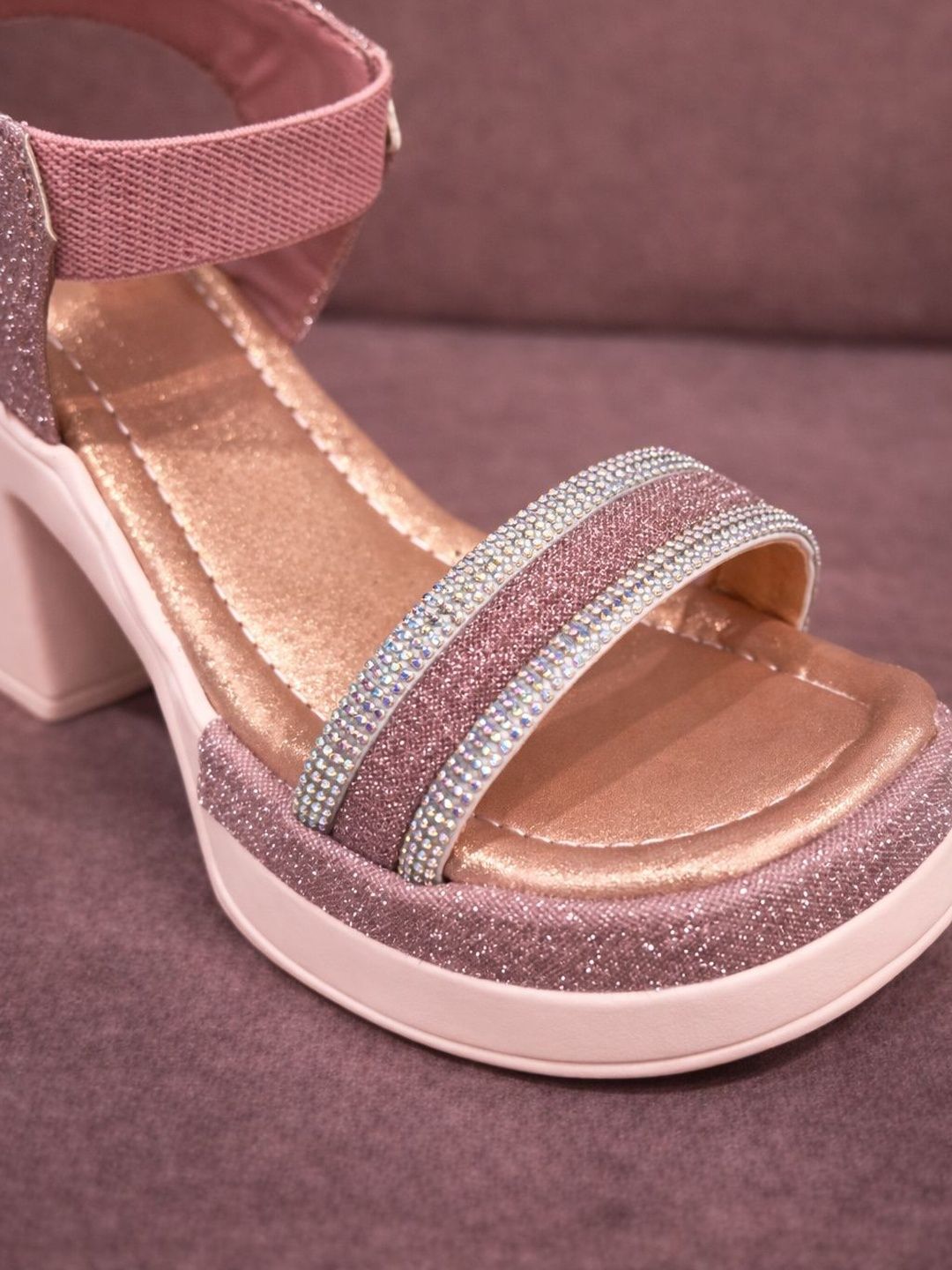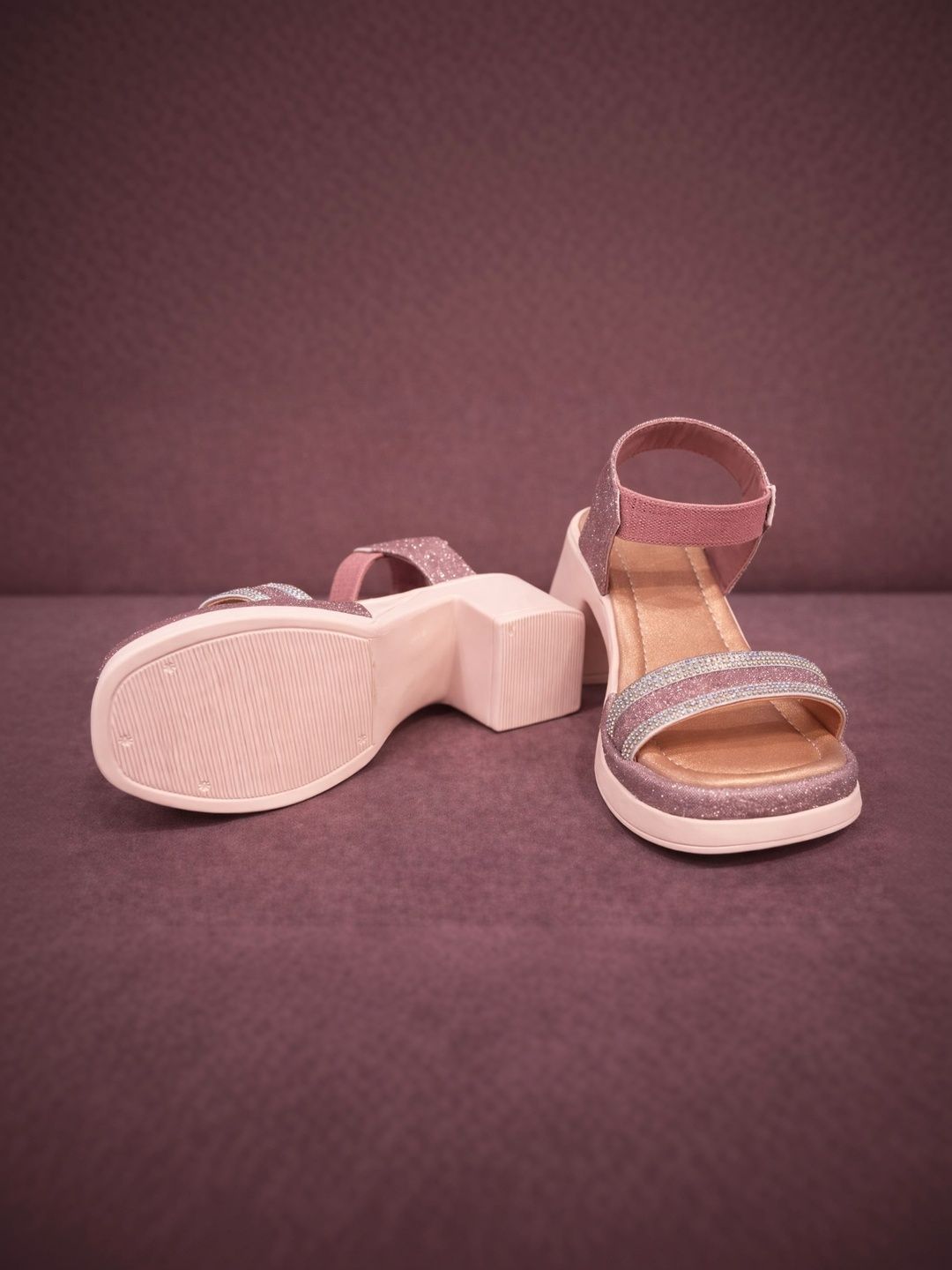Add a festive sparkle to her look with these glittery block heel sandalsperfect for parties and special occasions.