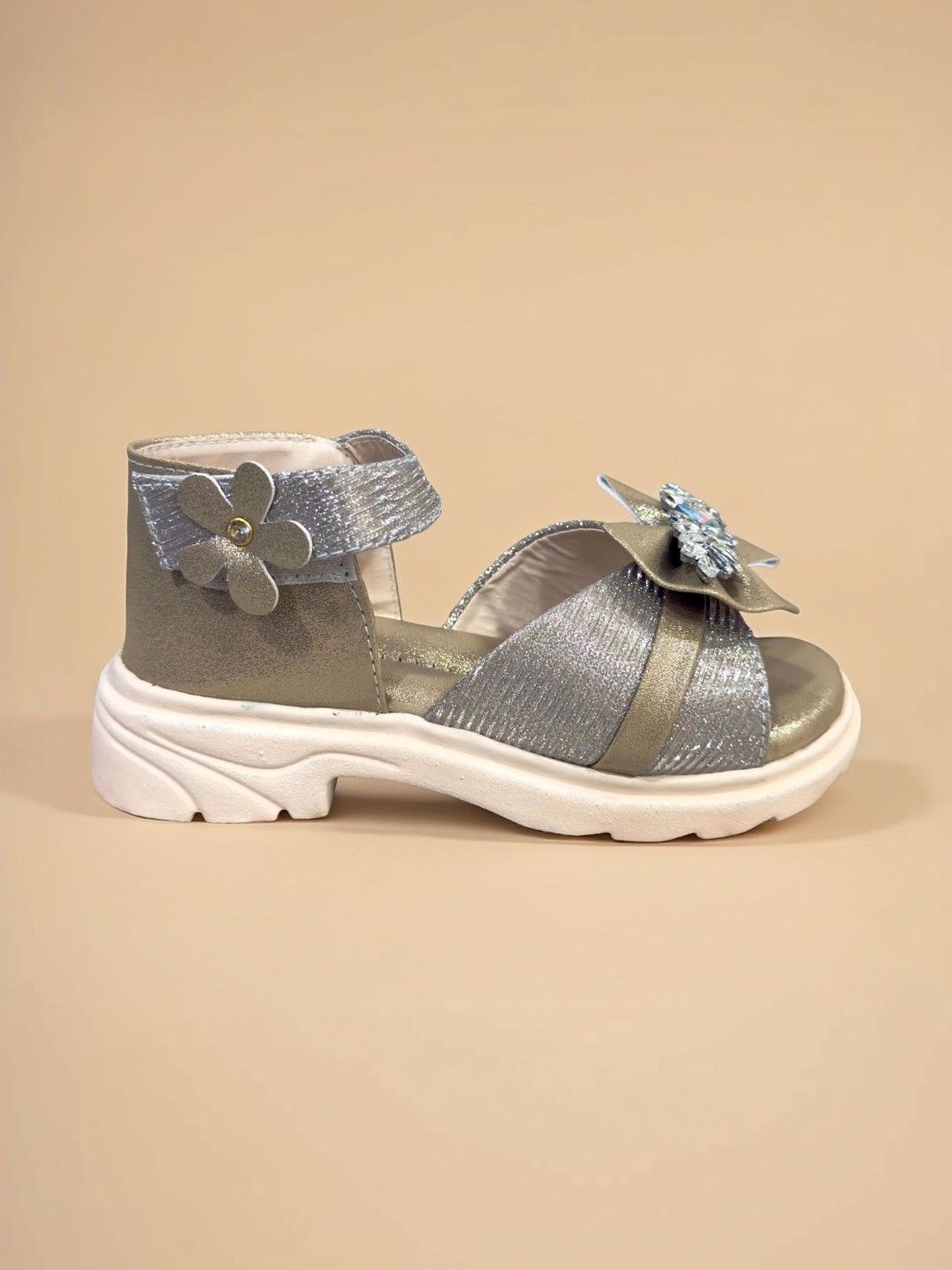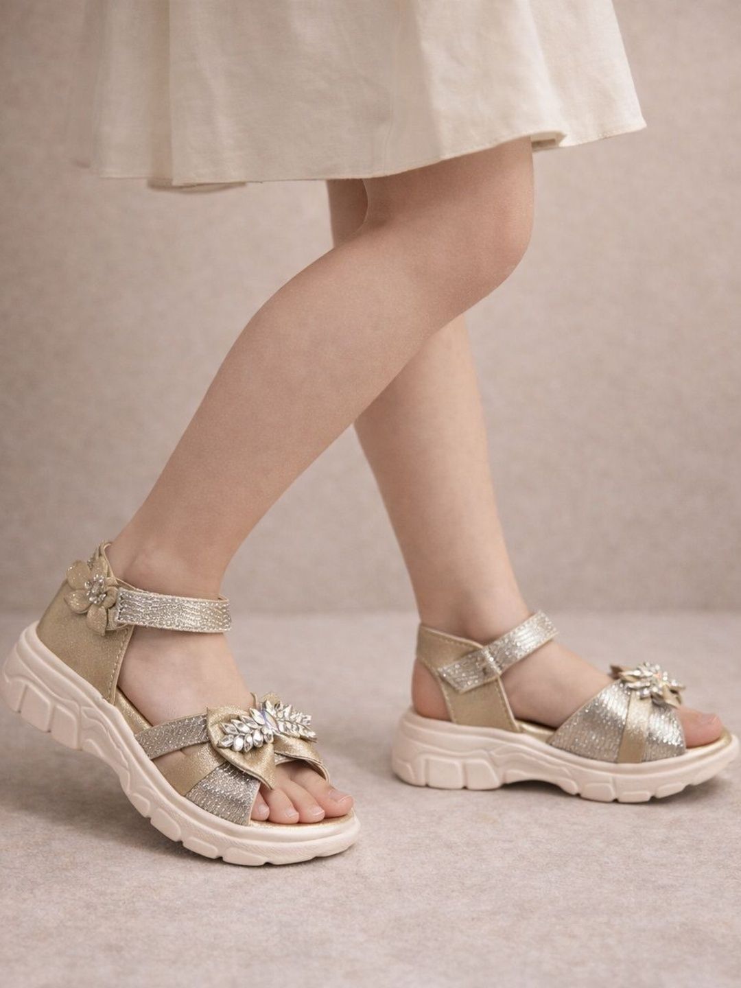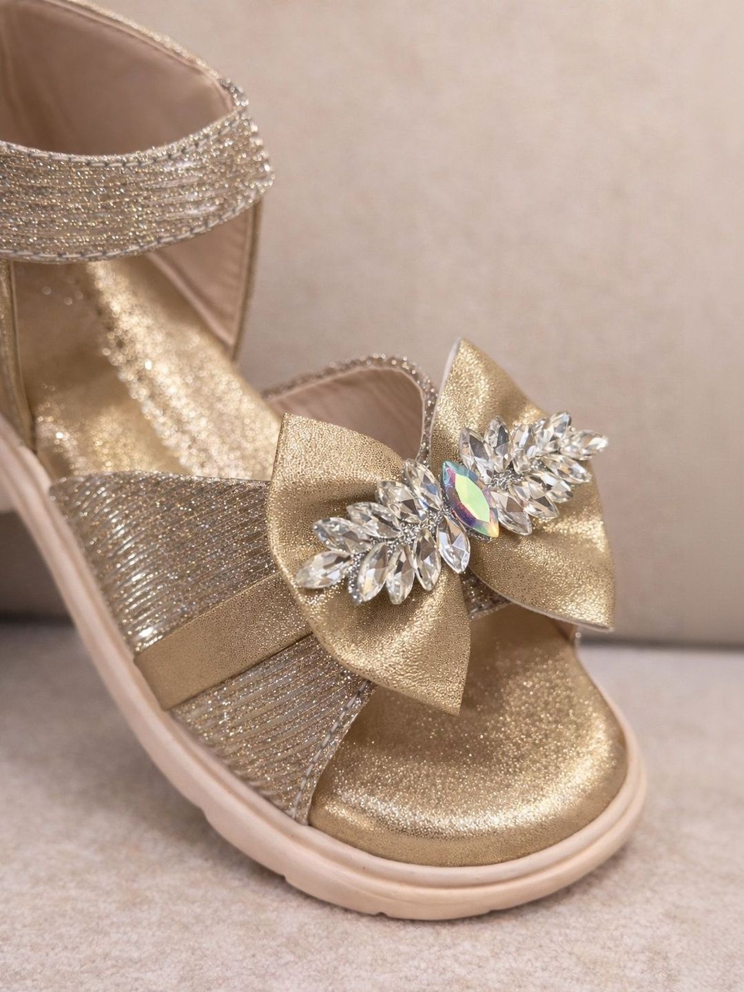 Make your little one shine with these embellished bow sandals featuring crystal detailing and a comfy Velcro strap.
