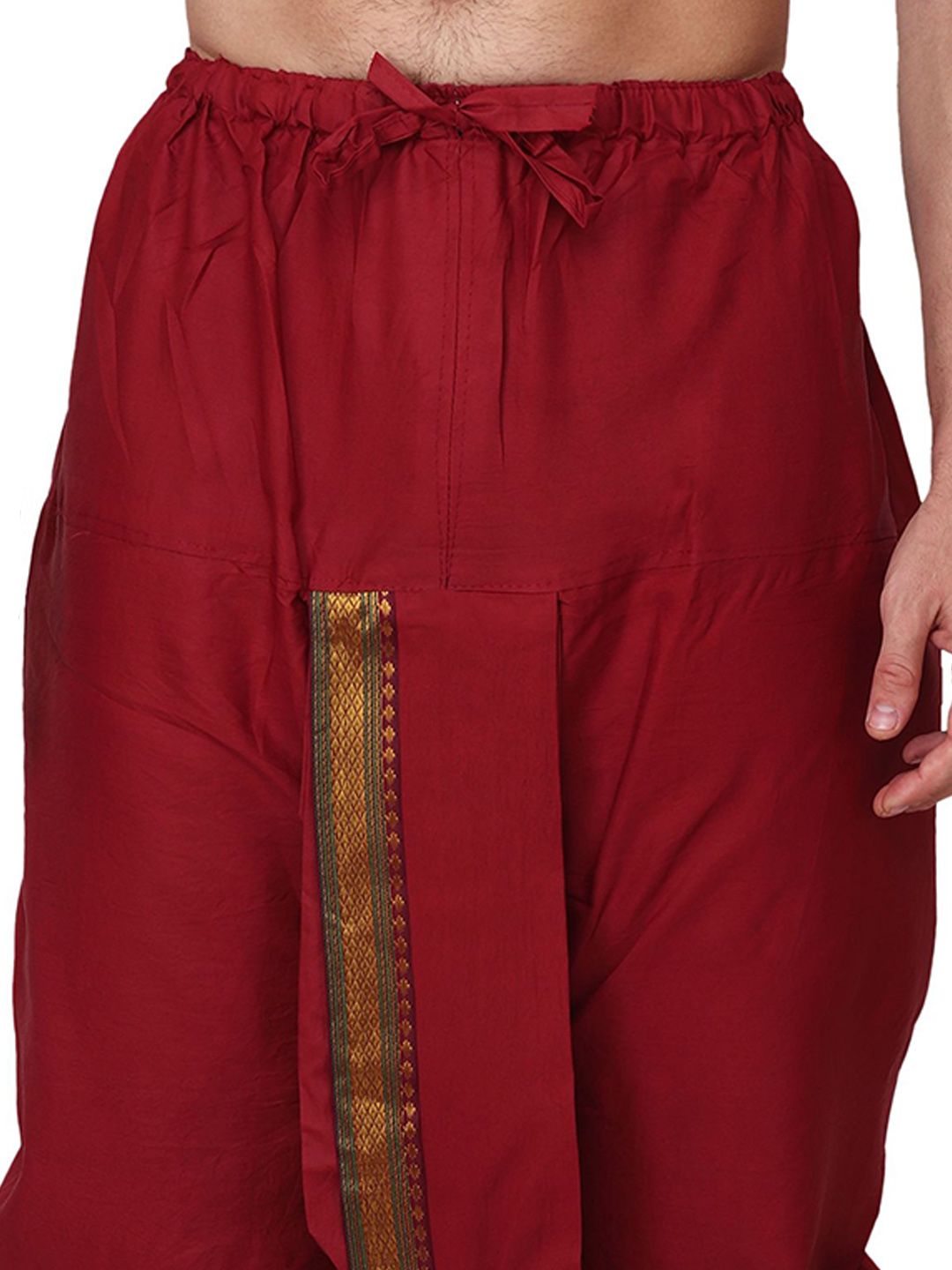 The model (height 5.7) is wearing a size FREE SIZE DHOTI