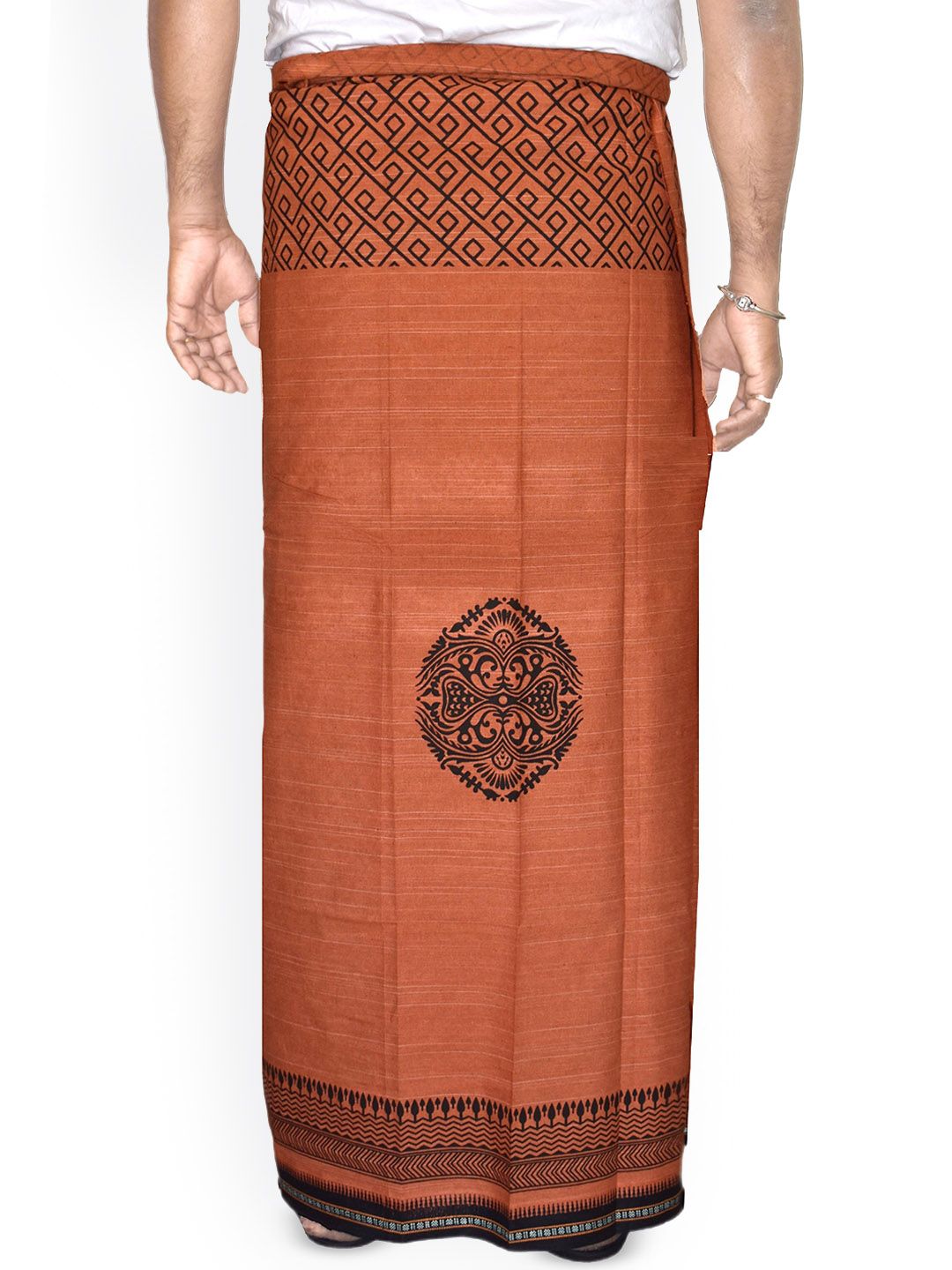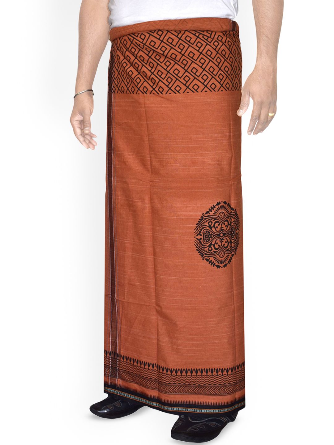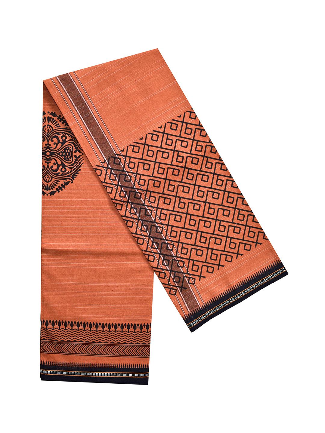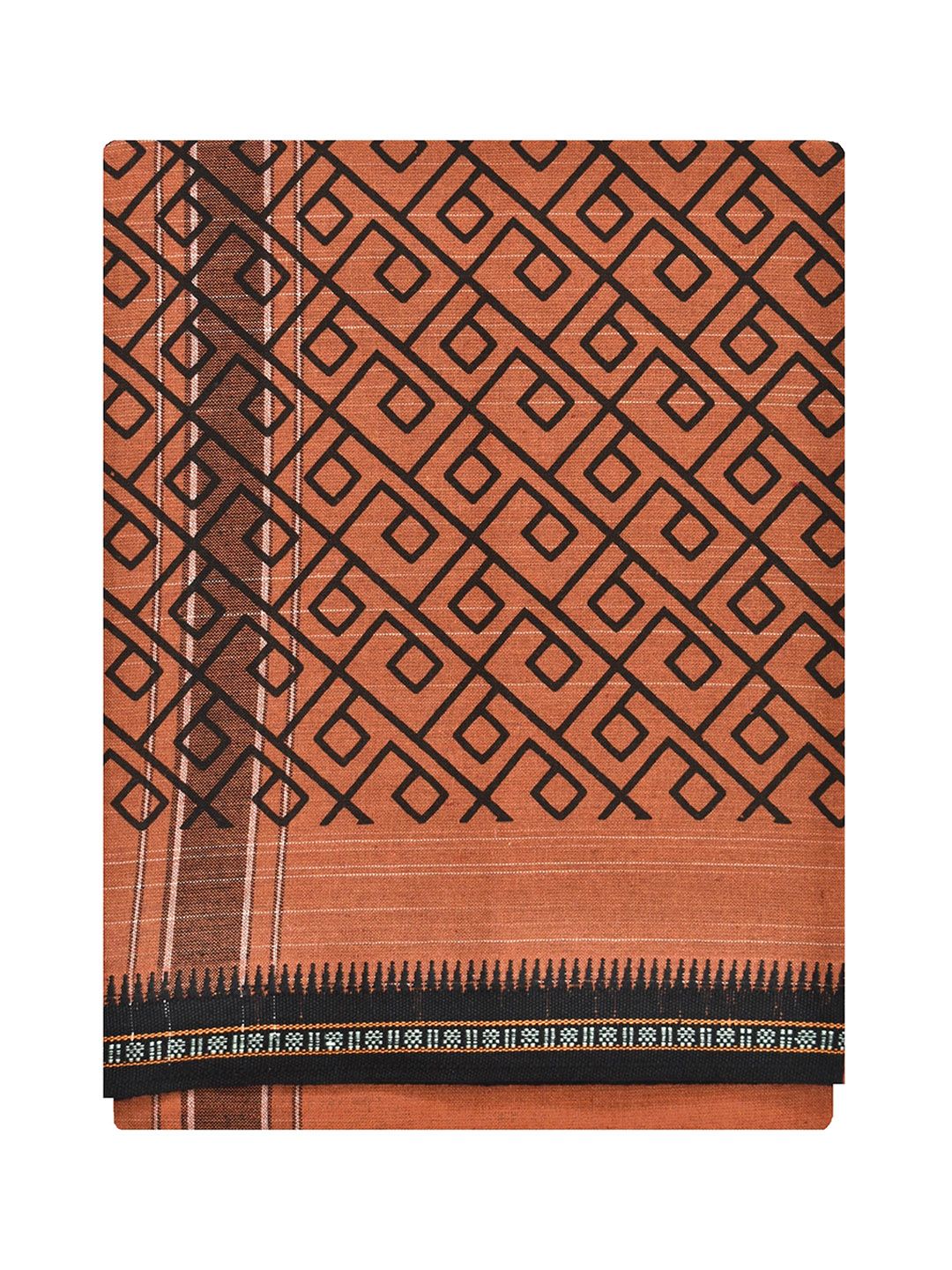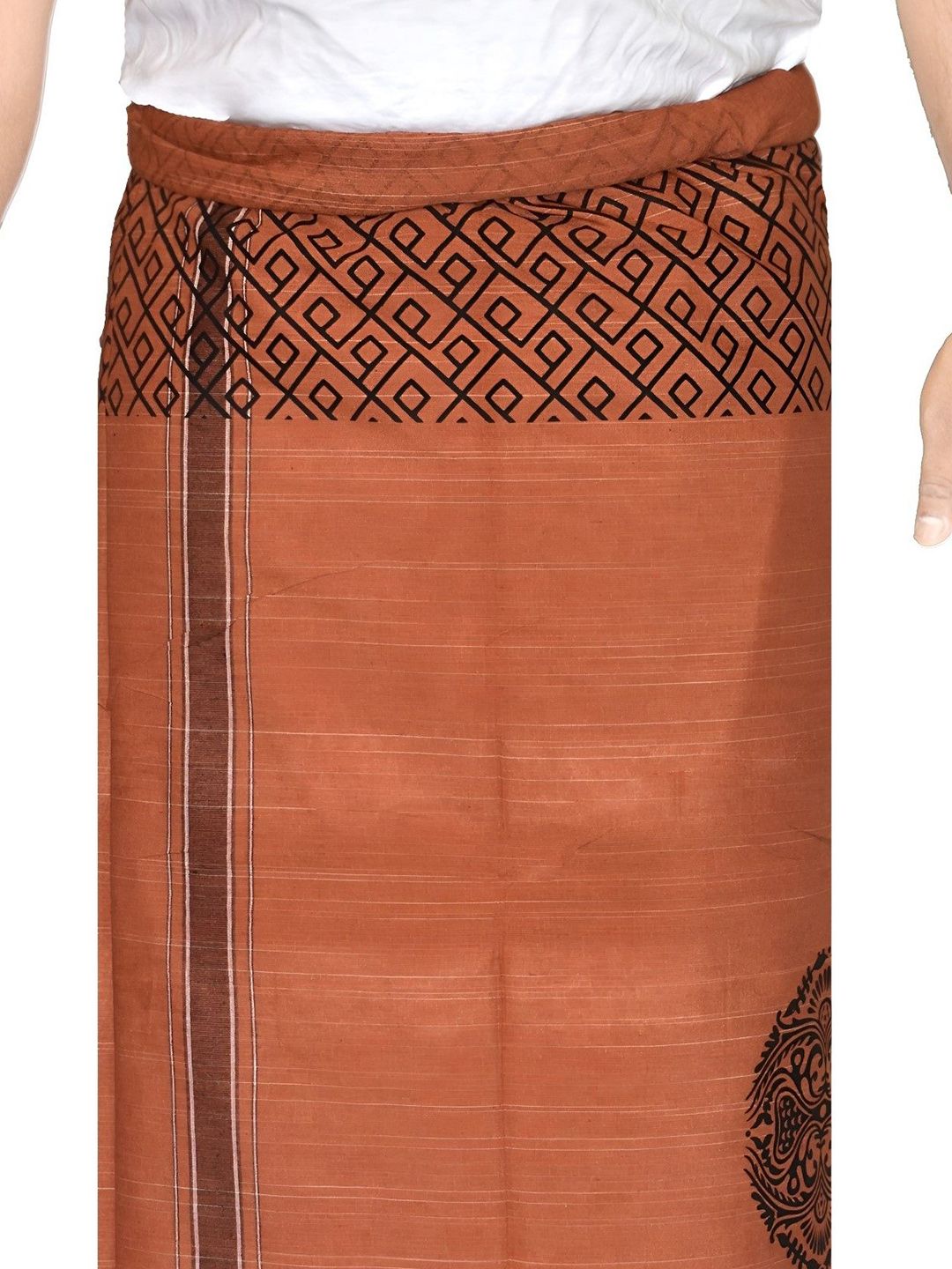 Embrace the timeless elegance of South Indian tradition with this pure cotton dhoti, also known as vesti or mundu. This single-layer dhoti, measuring 2.0 metres in length, Crafted from premium cotton fabric, this traditional men's garment features an exquisite decorative border and eye-catching printed design that adds a touch of sophistication. The lightweight and breathable cotton ensures maximum comfort throughout the day, making it perfect for festivals, ceremonies, or daily wear. This dhoti drapes beautifully and allows freedom of movement, embodying the grace of traditional South Indian attire.
