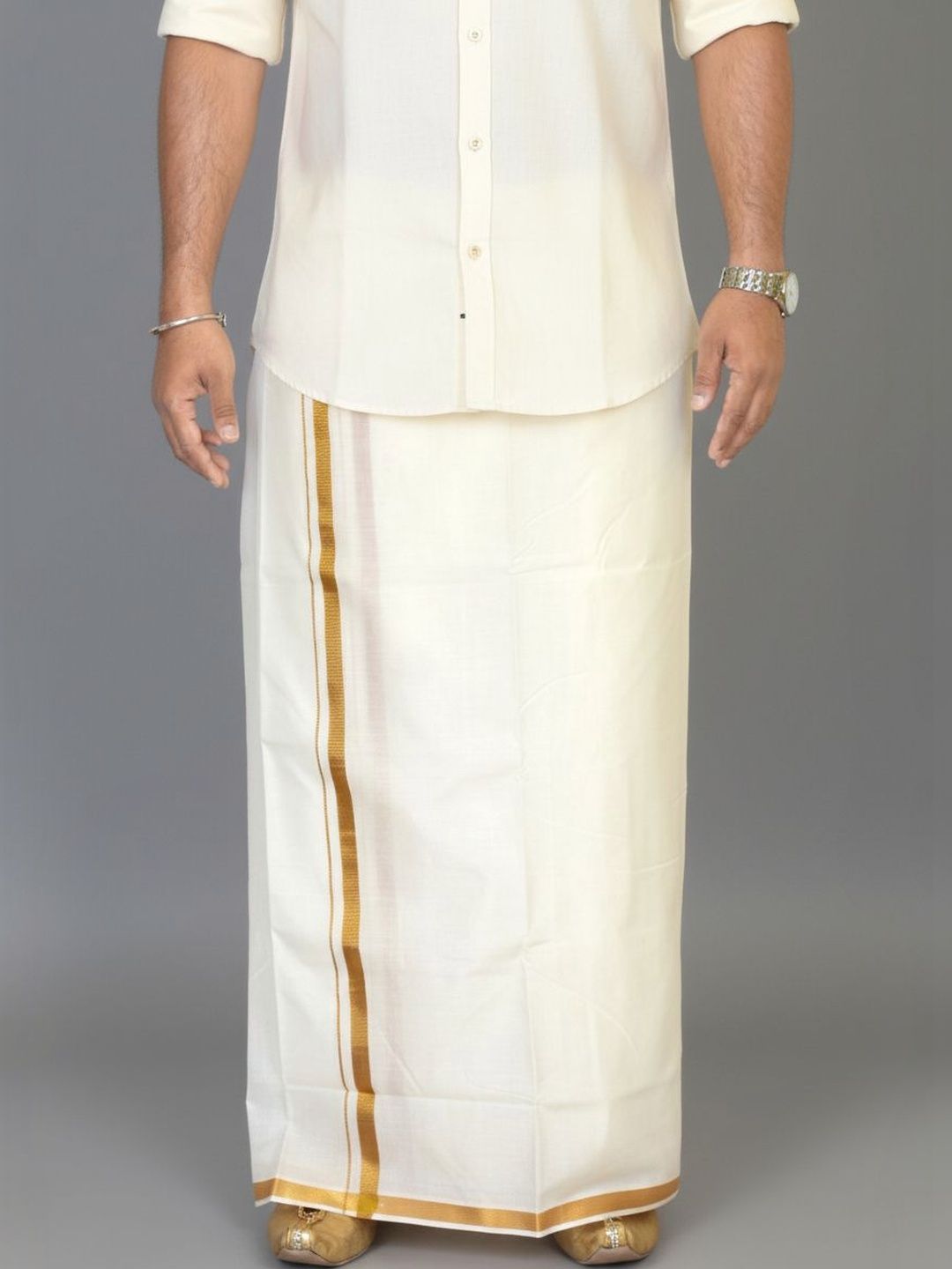 Authentic cotton dhoti with elegant zari border, perfect for traditional and festive occasions and Double dhoti measuring 3.8 metres (8 mulam) provides ample fabric for proper draping