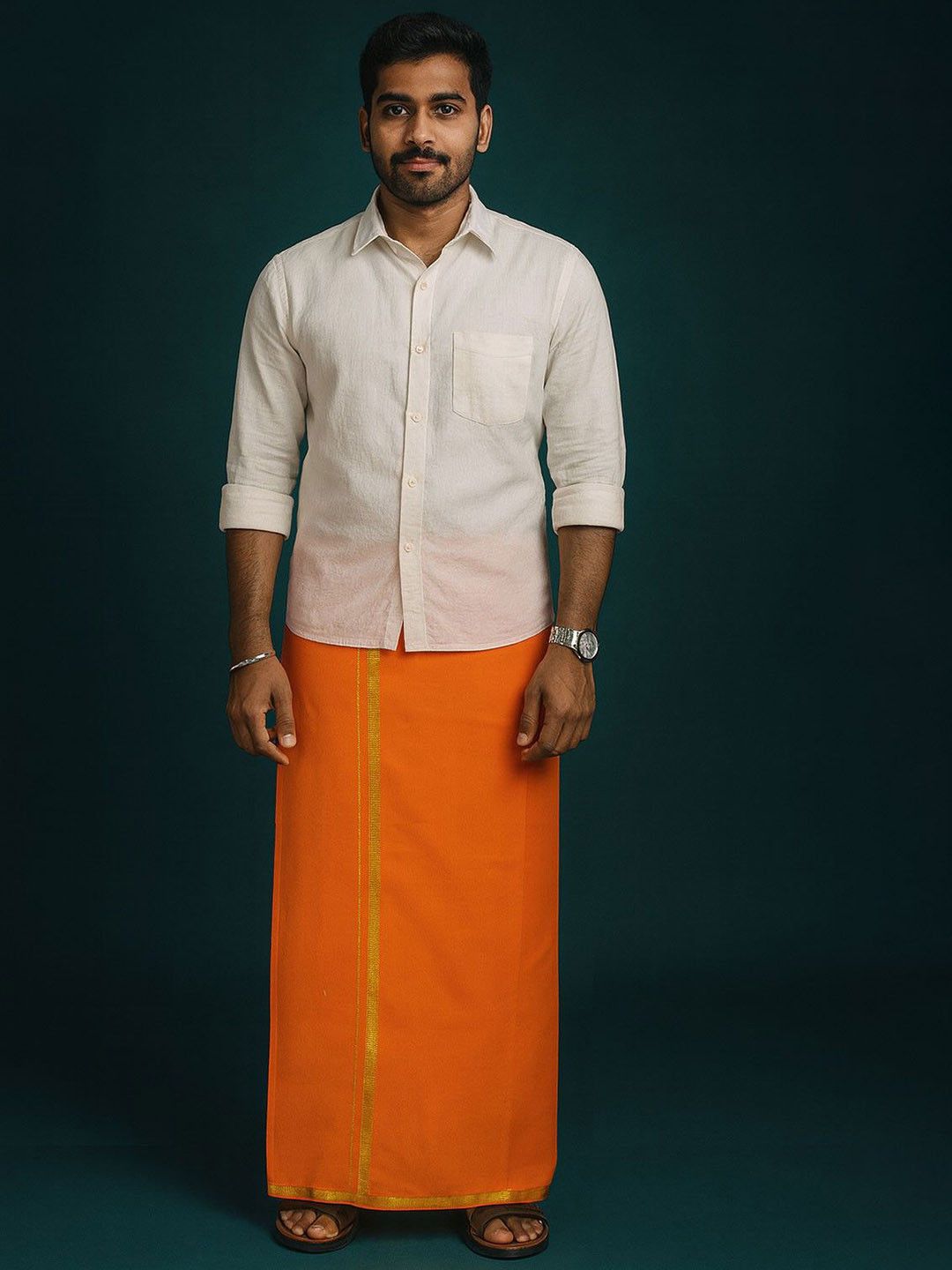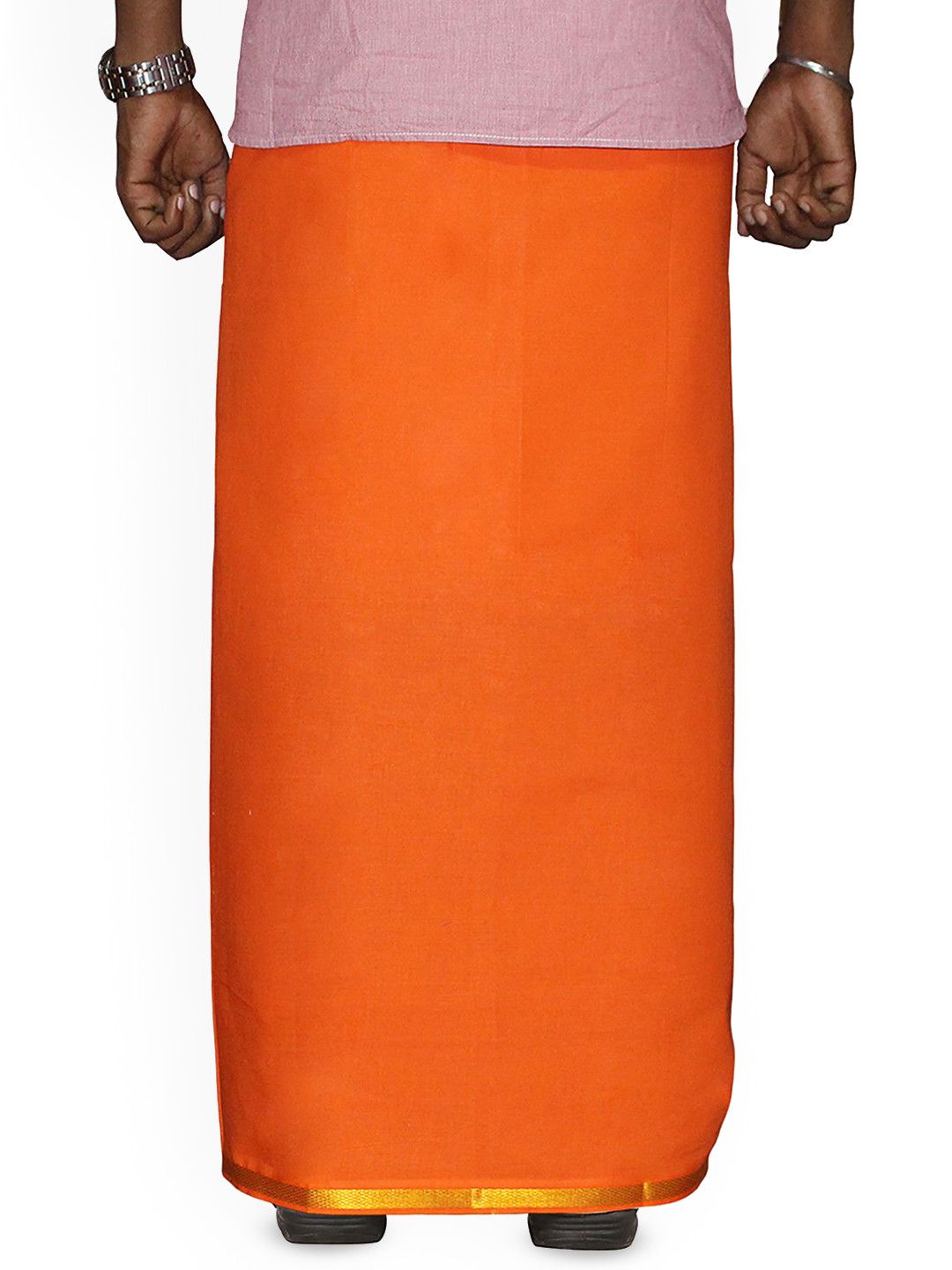 Prakasam Cotton is the indias leadng dhoties sales brand in indian online market.This dhoti is crafted with the finest quality cotton, ensuring comfort and durability for everyday wear or special occasions. The rich red color combined with the gold border adds a touch of elegance, making it a perfect choice for festive events or traditional ceremonies. The inclusion of a convenient welcro, and a Single pocket on the right side is a thoughtful feature, allowing you to carry essentials like your cellphone or wallet with ease.It's the perfect attire for the temple and all special occasions.When selecting your hip size, ensure you measure accurately from the bottom to the top, following the 40-inch guideline for the perfect fit. The dhoti also includes 4-6 loops to accommodate a belt, providing additional security and style versatility.Please note that mild color bleeding is unavoidable, so it is recommended to wash dark colors separately. Whether you choose to hand wash or use a machine, always wash with similar colors to maintain the vibrancy of the fabric. This dhoti is more than just a piece of clothing; it is a blend of tradition and modern convenience, designed to meet the needs of today's discerning customer.