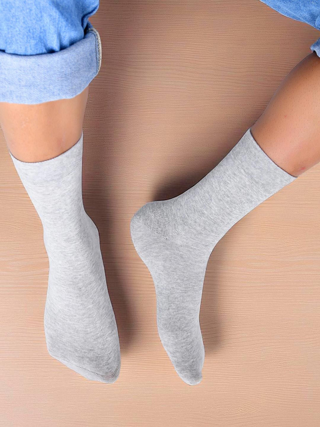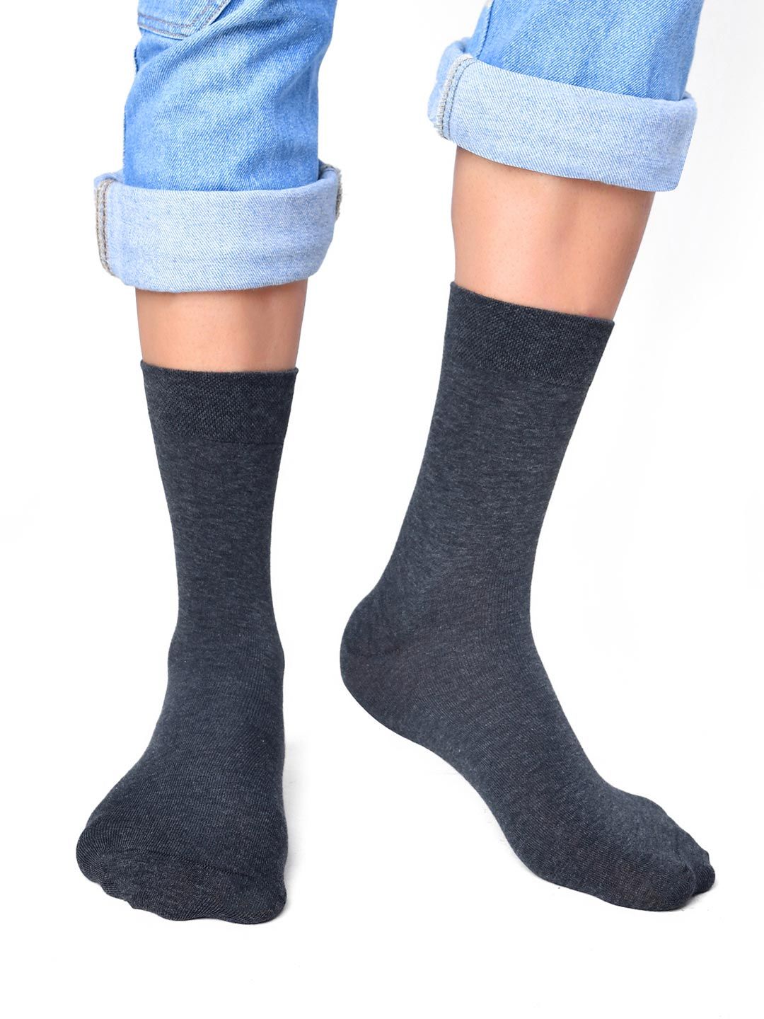 Pack of 3 solid above ankle-length socksGrey solid above ankle-length socks, has a ribbed mouth and a flat toe seamDark Grey solid above ankle-length socks, has a ribbed mouth and a flat toe seamBlue solid above ankle-length socks, has a ribbed mouth and a flat toe seam