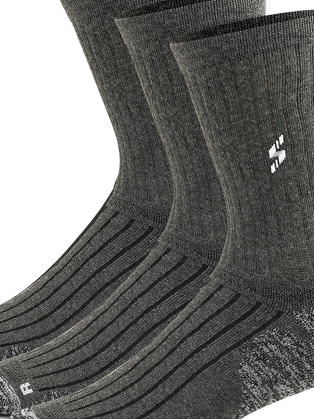 Pack of 3 pairs of grey colourblocked calf-length socks, each has a ribbed mouth and flat toe seam