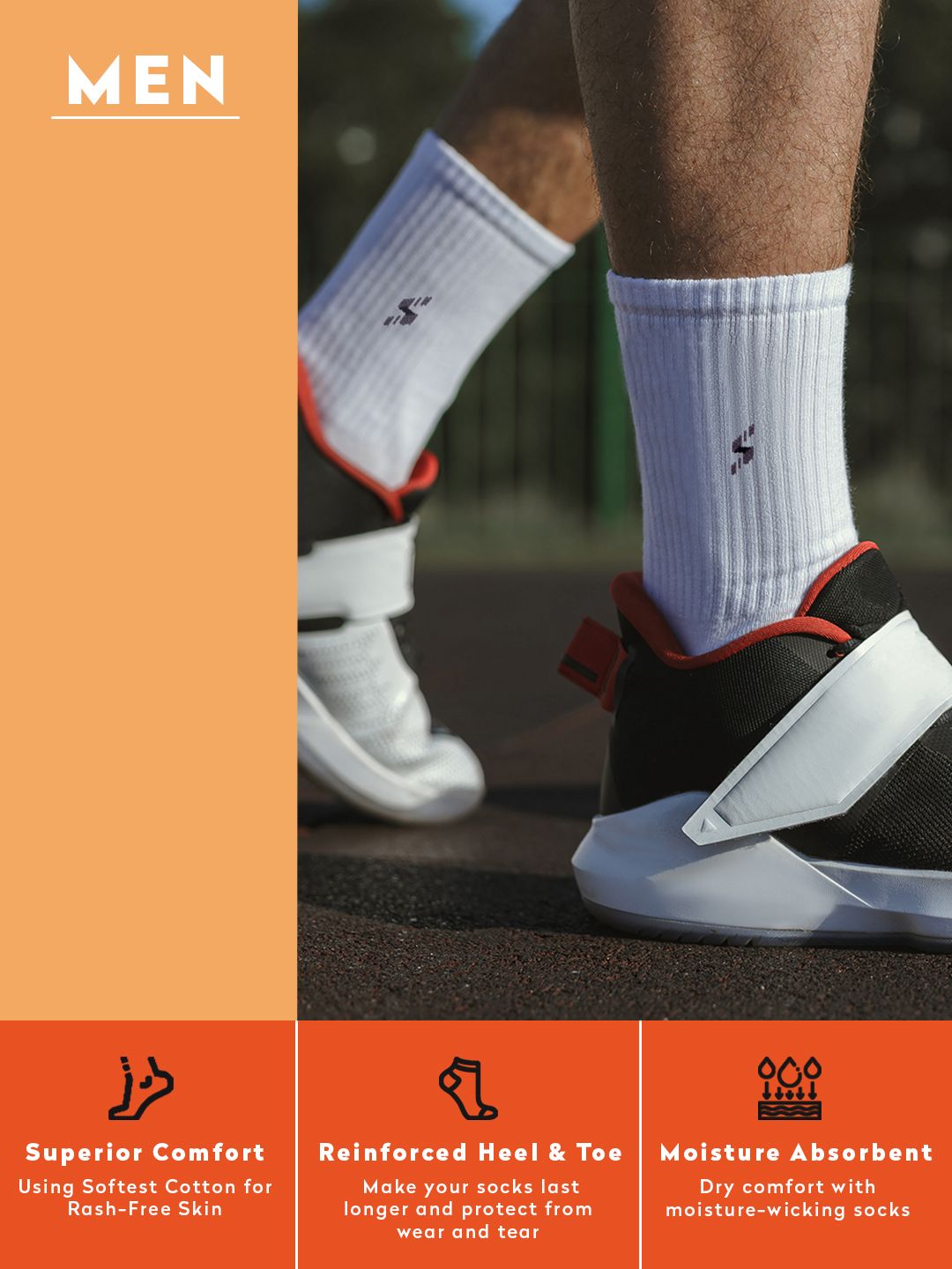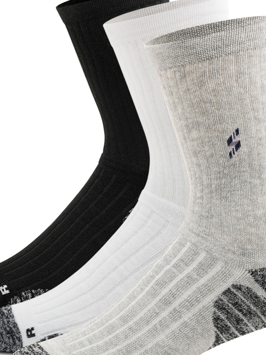 Pack of 3 pairs of calf-length socksA pair of black and grey colourblocked calf-length socks, each has a ribbed mouth and flat toe seamA pair of white and grey colourblocked calf-length socks, each has a ribbed mouth and flat toe seamA pair of grey colourblocked calf-length socks, each has a ribbed mouth and flat toe seam