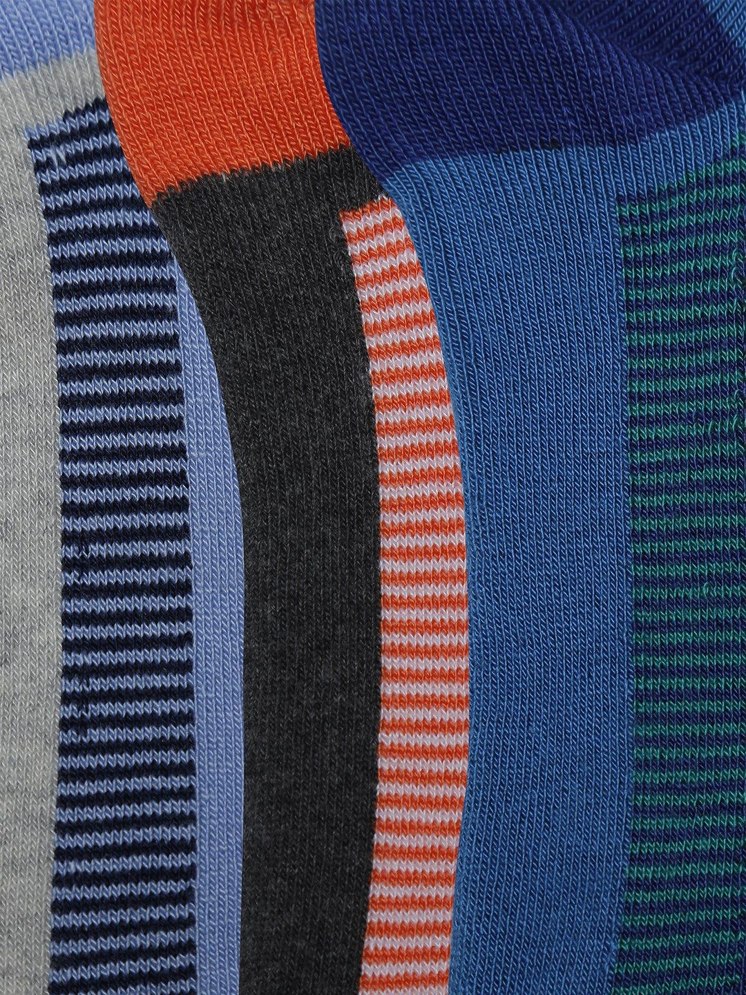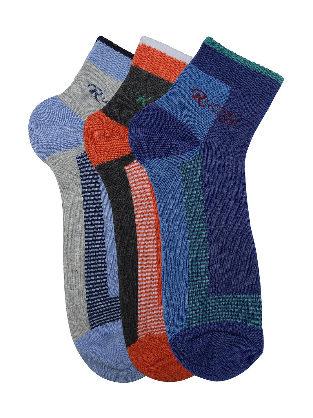 Pack of three assorted ankle-length patterned socks, each has a ribbed mouth and flat toe seam