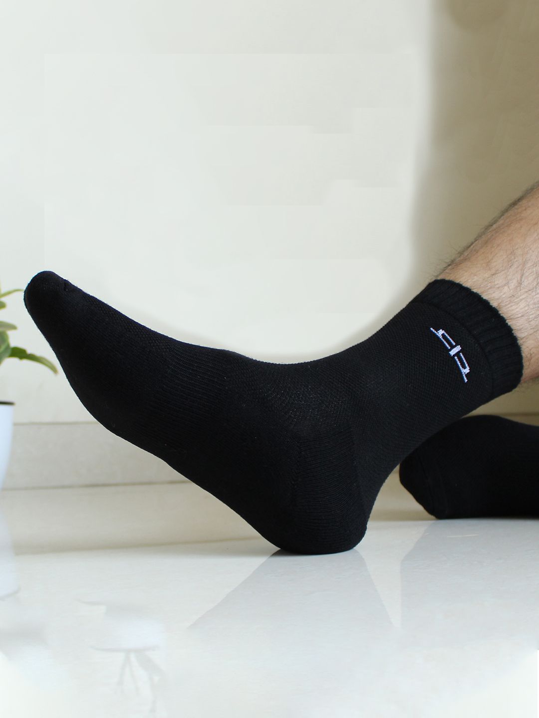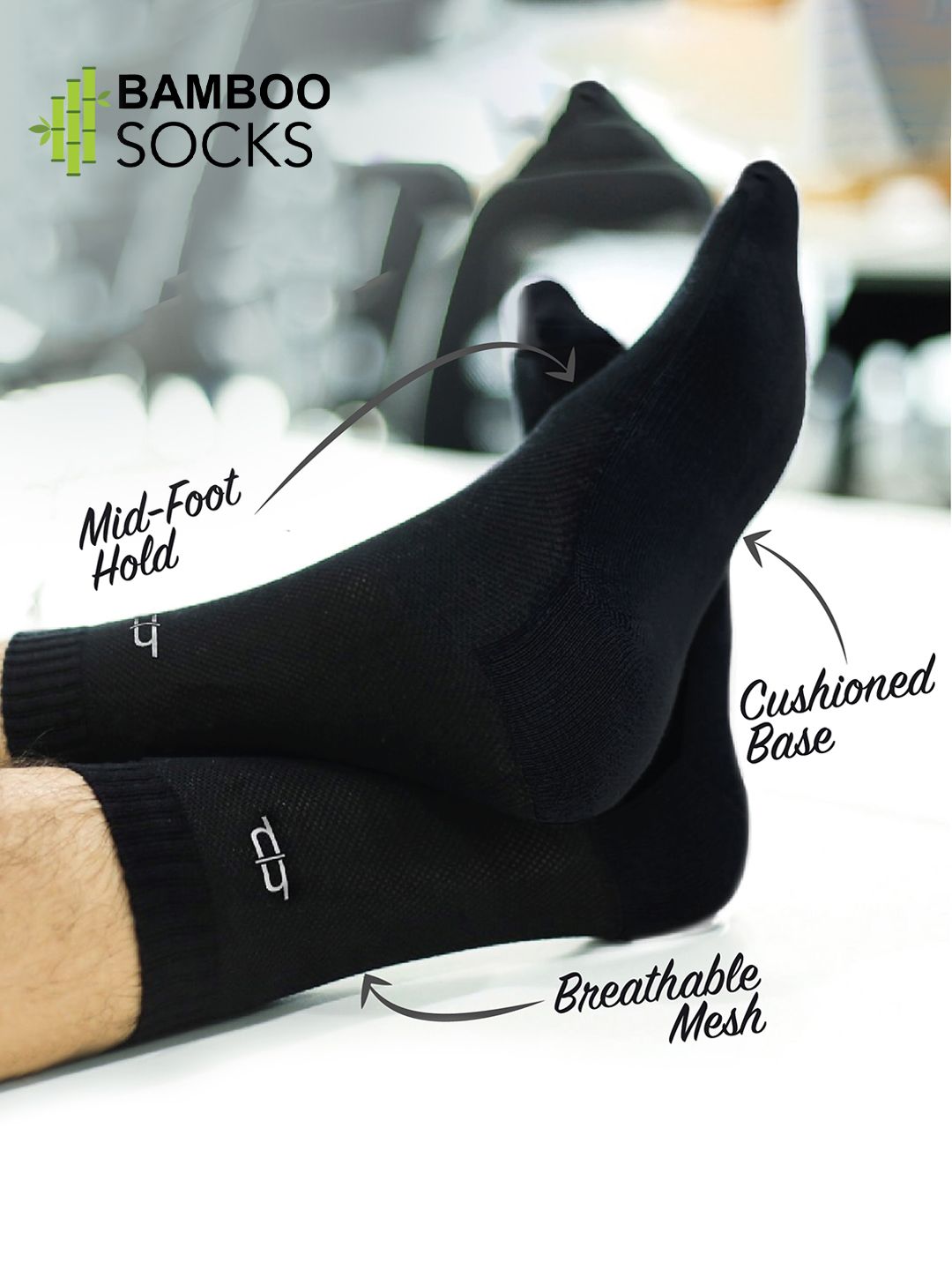 Pack of two pairs of solid calf-length socks in black, each has a ribbed mouth and a flat-toe seamFeature: Bamboo fiber is known for its softness. Spandex blended with Bamboo makes these socks the best in softness, cushioning and impact protection. Odour control through the natural anti-bacterial property of bamboo material. Heelium formal socks are 2-3 times stronger and more durable than cotton, nylon or polyester socks.