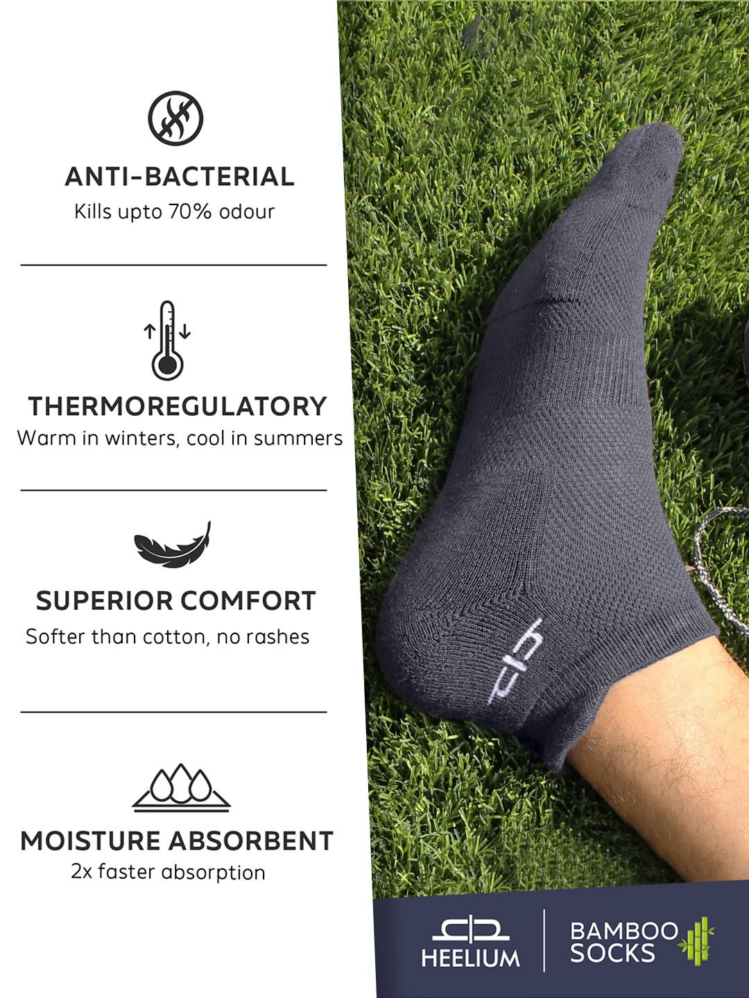 Heelium brings one of the superior quality socks for daily wear, made from the finest quality bamboo. The soft and breathable fabric inside the socks will keep your feet dry and comfortable.