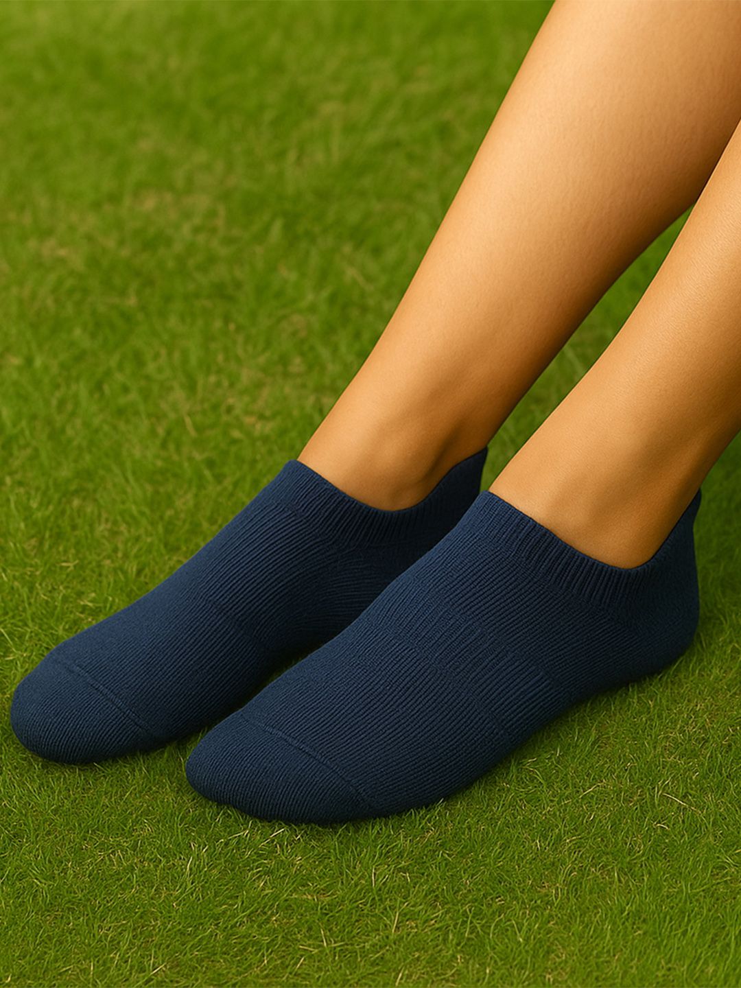 Pack of 3 navy blue solid ankle-length socks with print detail, has a ribbed mouth and a flat toe seamFeatures:Breathable meshCushioned footbed