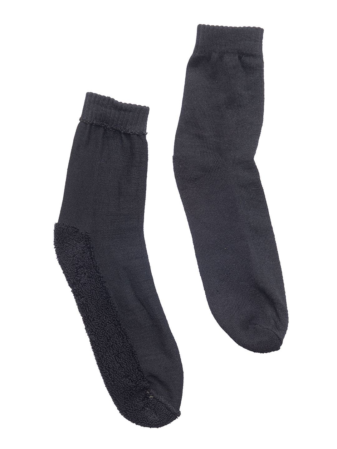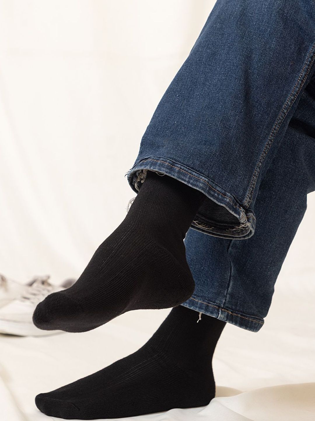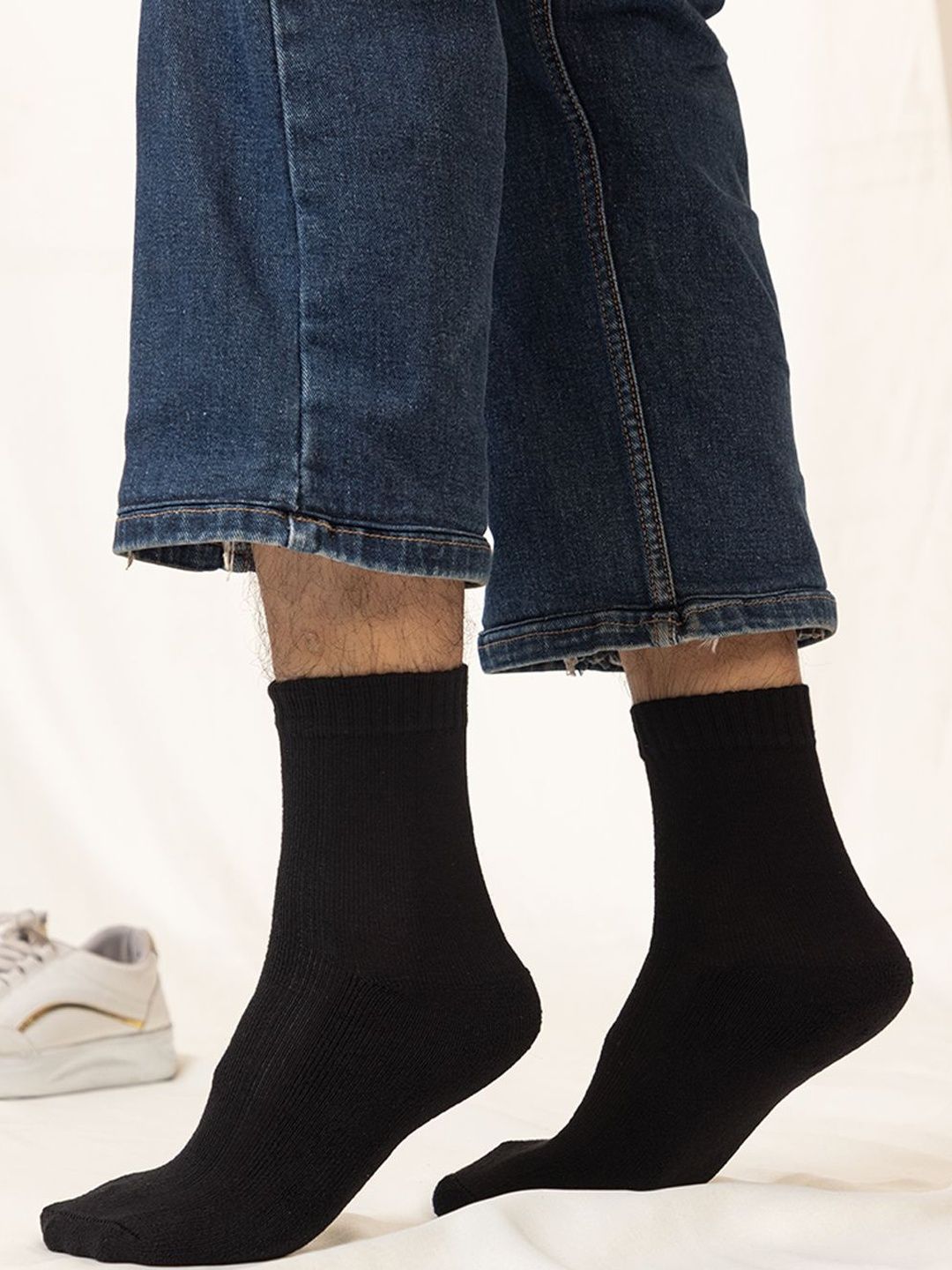 Pack of 4 black solid calf-length socks, each has a ribbed mouth and flat toe seam