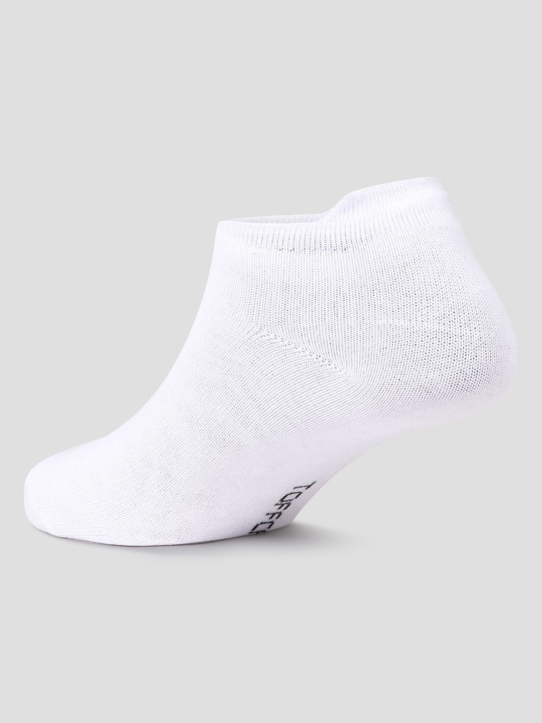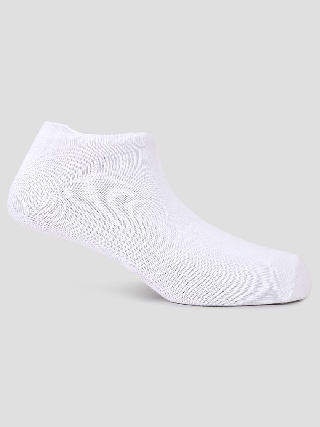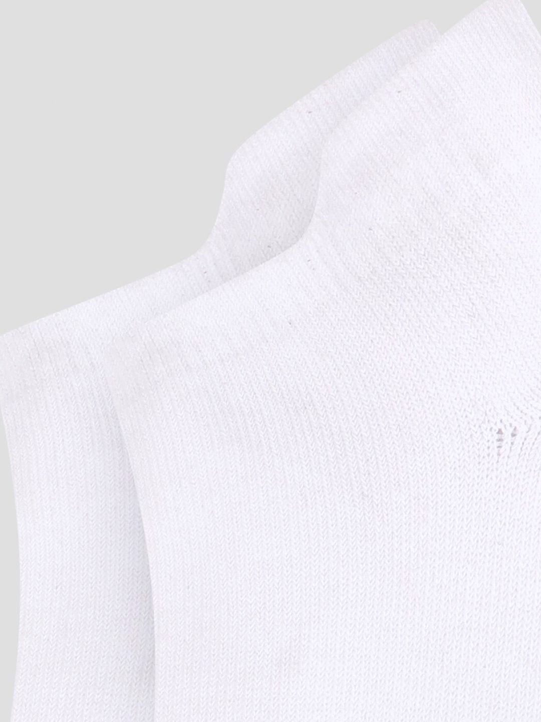 Pack of 3 solid ankle-length socks in white, each has a ribbed mouth and flat toe seamFeatures:Strengthened heel tabCushioned soleMesh ventilationReinforced heel and toeSeamless toeOdour-resistant and anti-microbialAnti-lint and anti-pillingMoisture-wicking and breathable