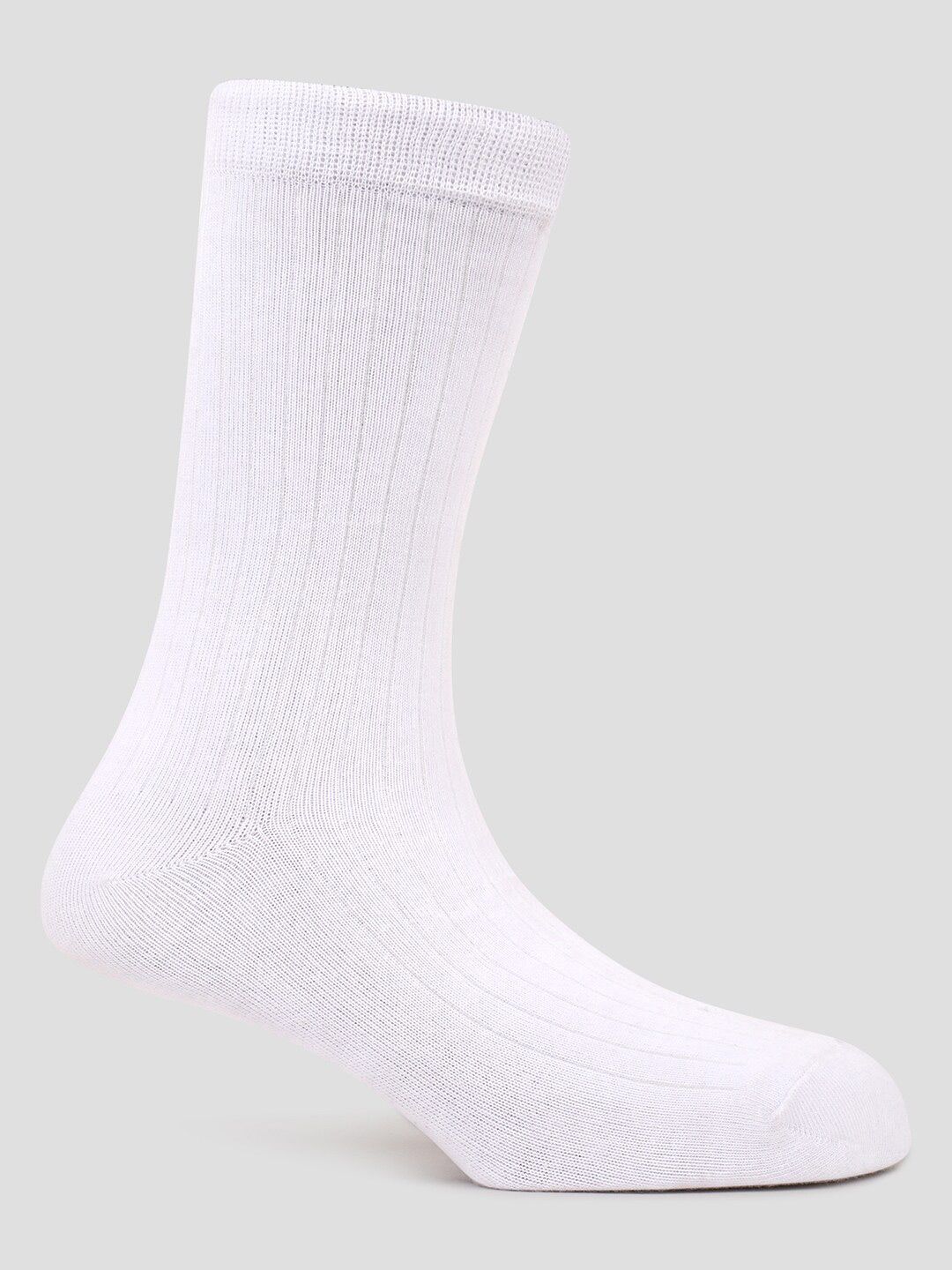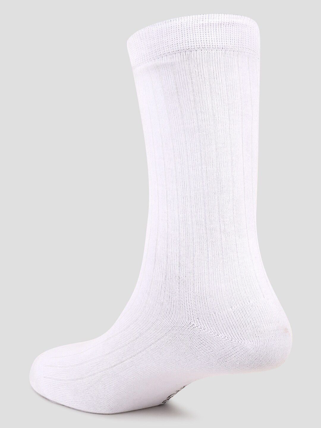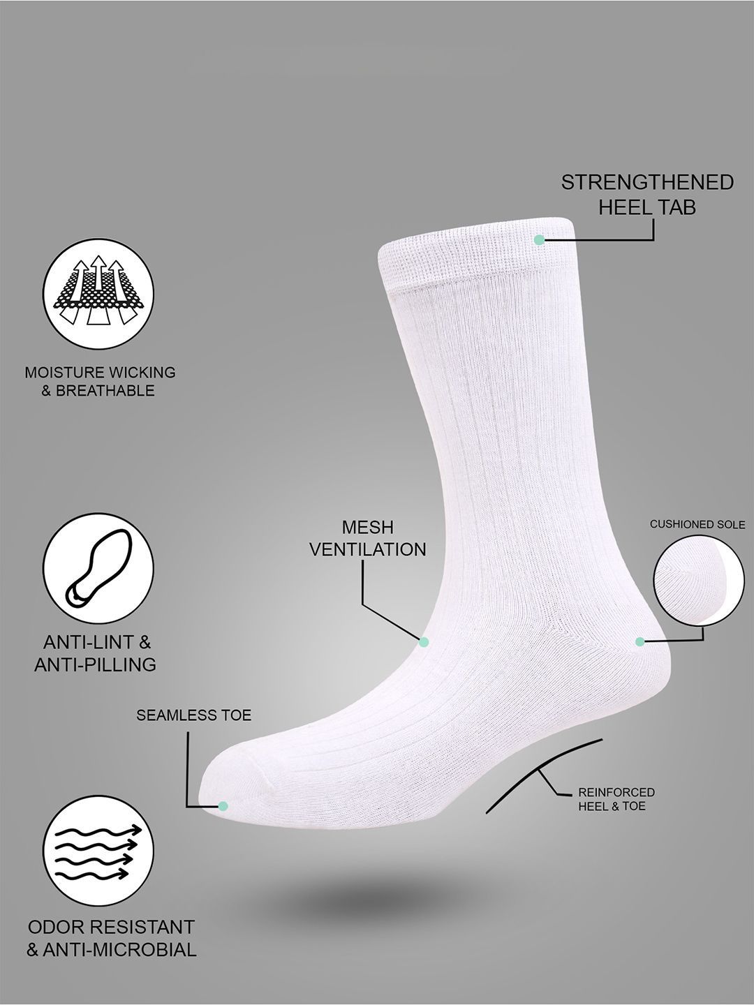 3 pair of white solid calf-length socks, each has a ribbed mouth and flat toe seamFeatures:Anti-Lint & Anti-PillingMoisture Wicking & BreathableOdor Resistant & Anti-MicrobialCushioned Sole
