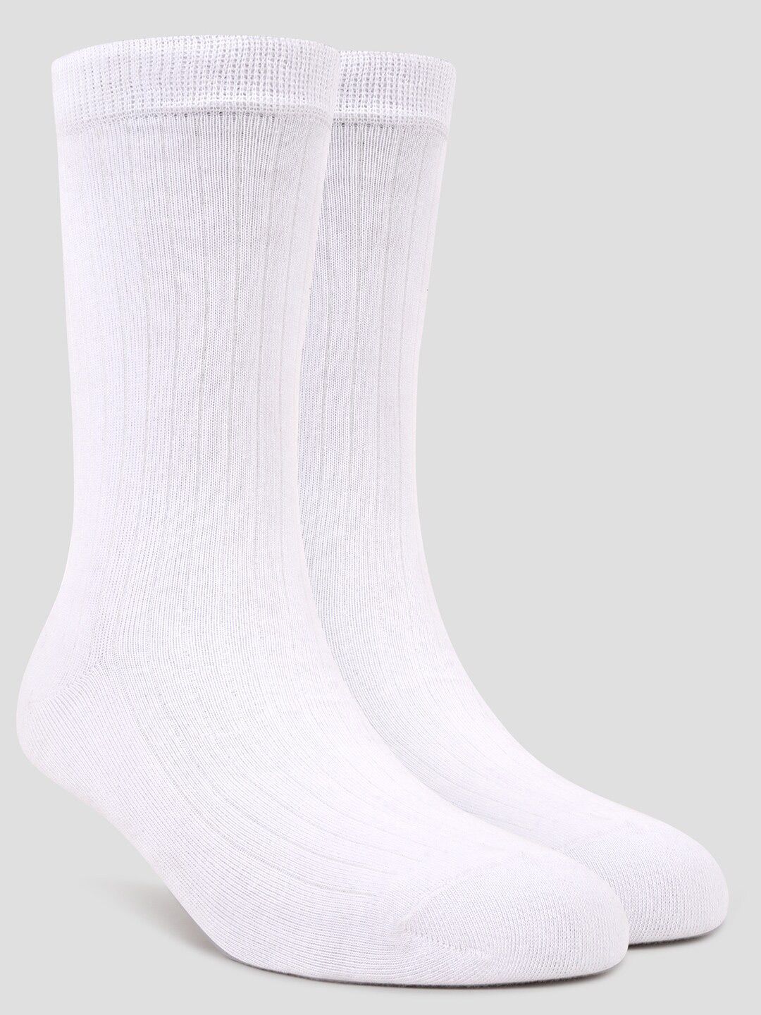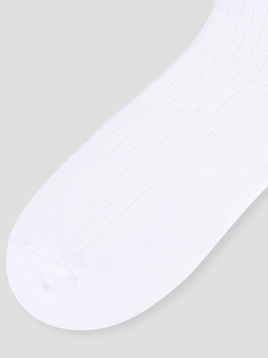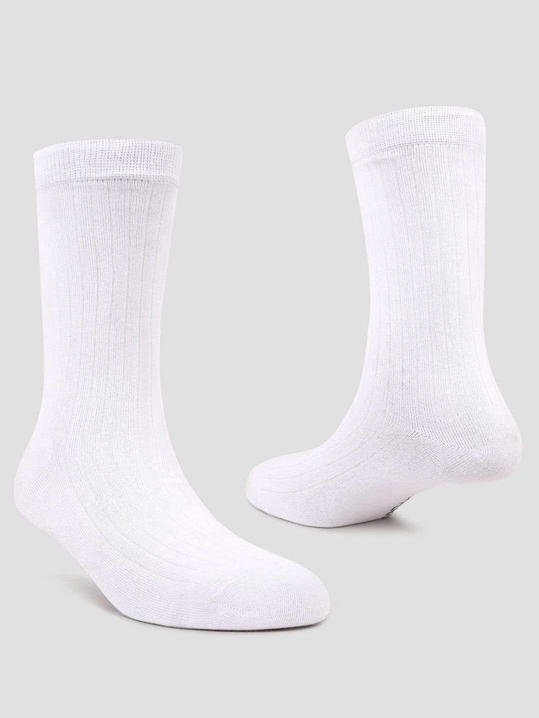 3 pair of white solid calf-length socks, each has a ribbed mouth and flat toe seamFeatures:Anti-Lint & Anti-PillingMoisture Wicking & BreathableOdor Resistant & Anti-MicrobialCushioned Sole
