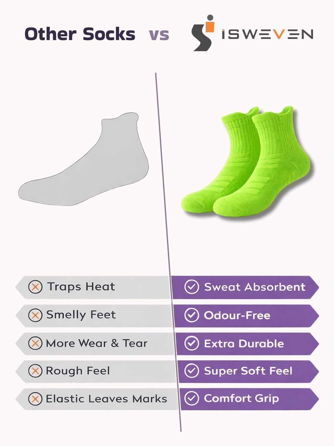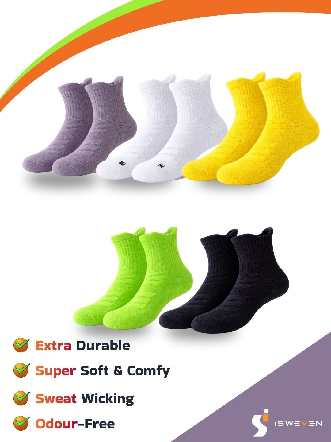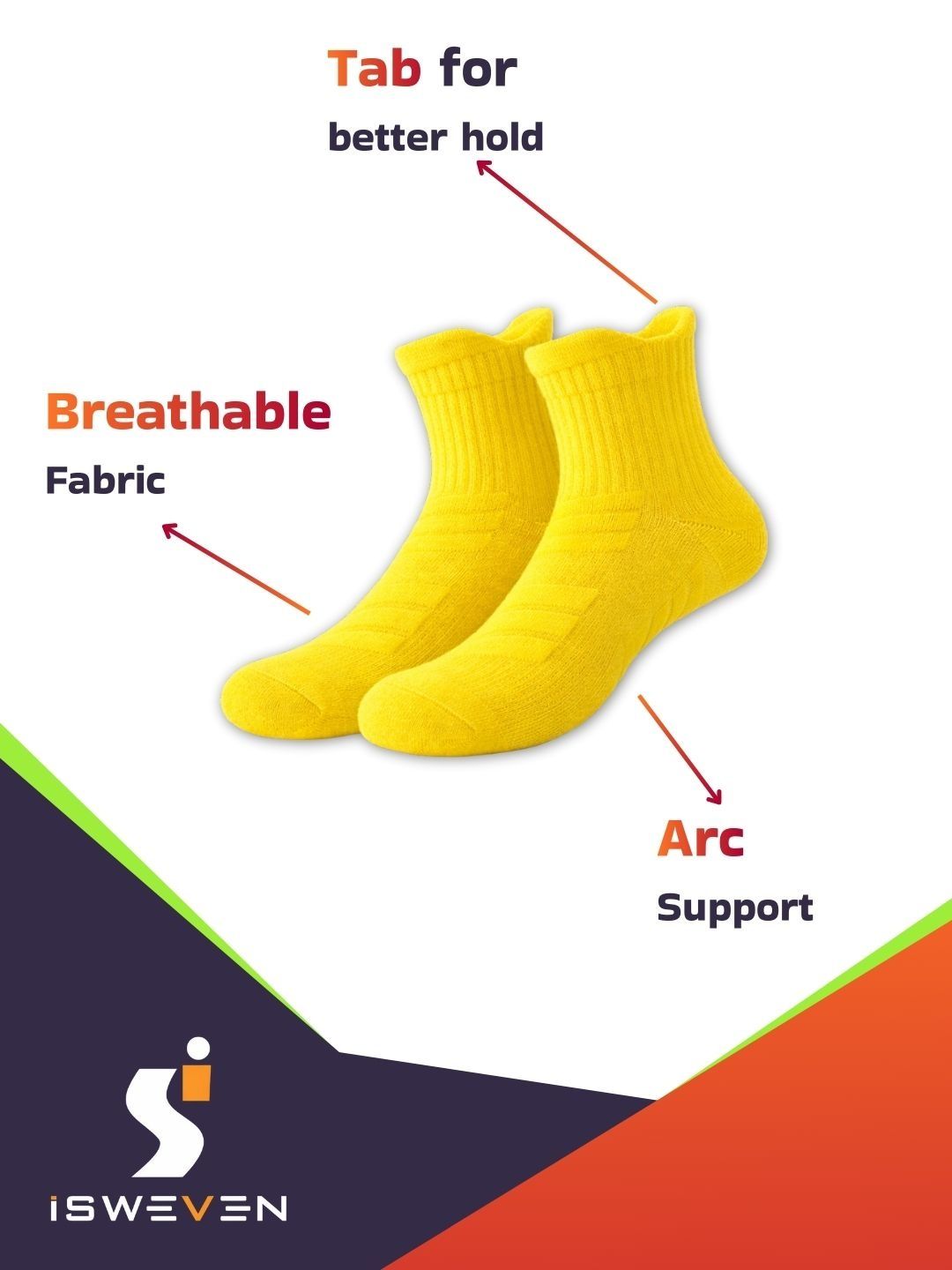 Breathable mesh for airflow. Arch support for reduced fatigue. Cushioned sole for impact absorption. Anti-slip grip for secure fit. Odour-free fabric. Durable & stretch-resistant. Unisex design