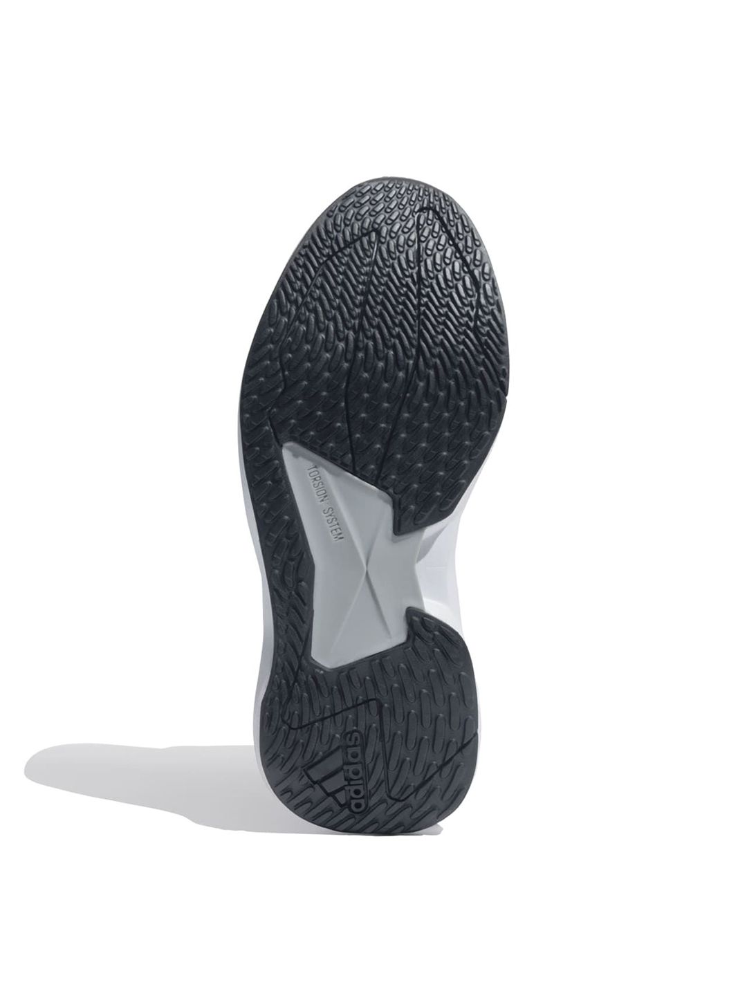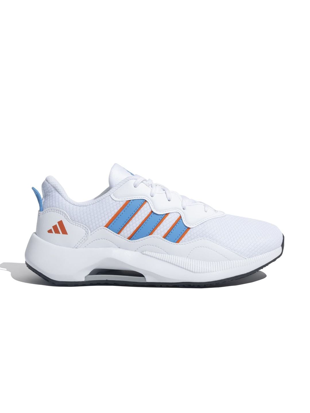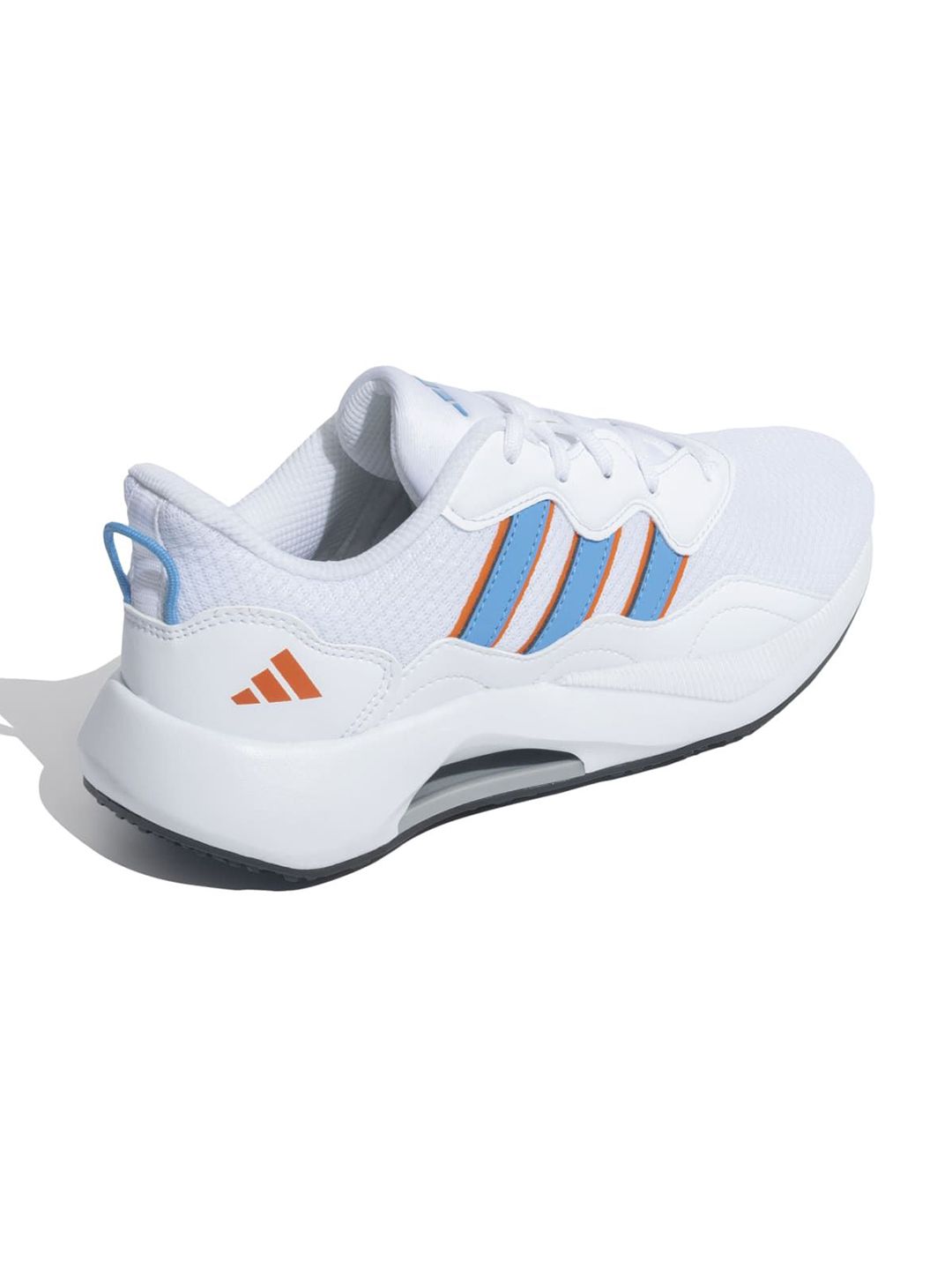 Product Design Details:A pair of white and blue round toe regular sports shoes with regular styling has a lace-up closure